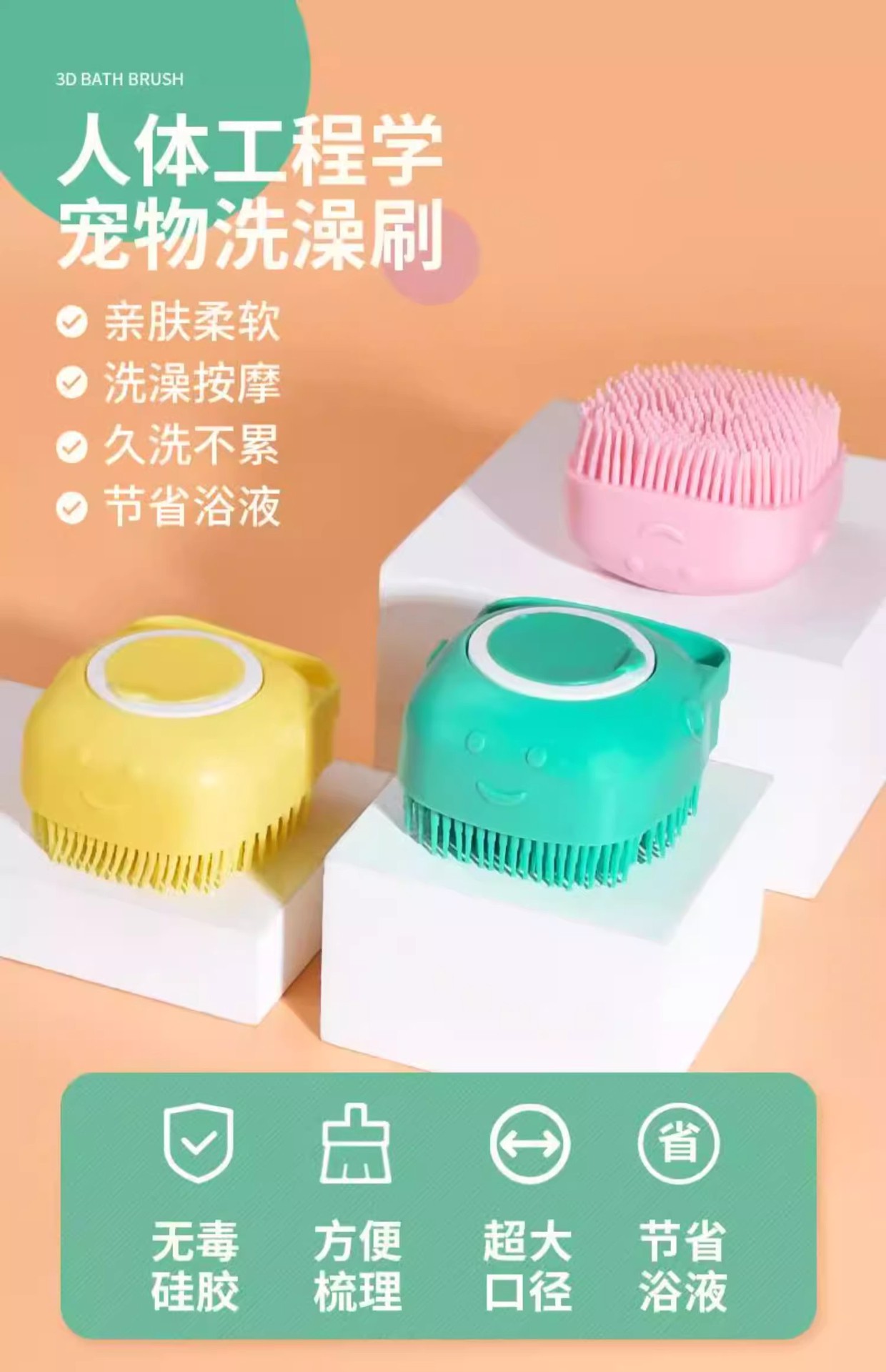 애완 동물 목욕 브러쉬 고양이 테디 큰 개 휴대용 부드러운 청소 실리콘 목욕 마사지 브러시 재고 도매
