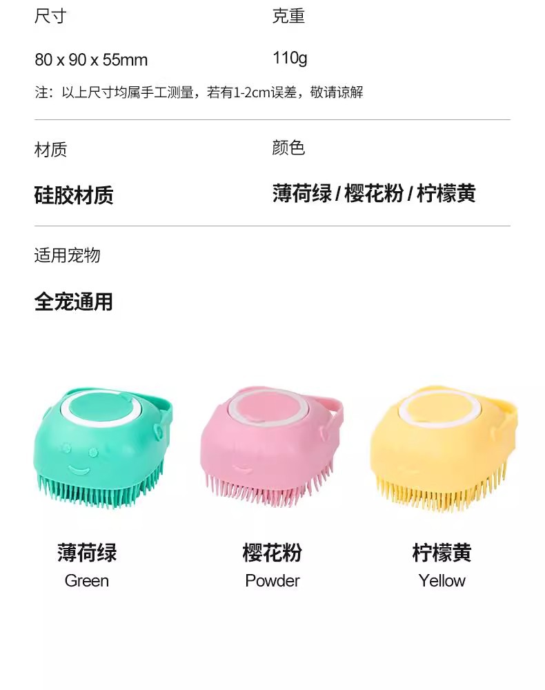 애완 동물 목욕 브러쉬 고양이 테디 큰 개 휴대용 부드러운 청소 실리콘 목욕 마사지 브러시 재고 도매스토어 가기