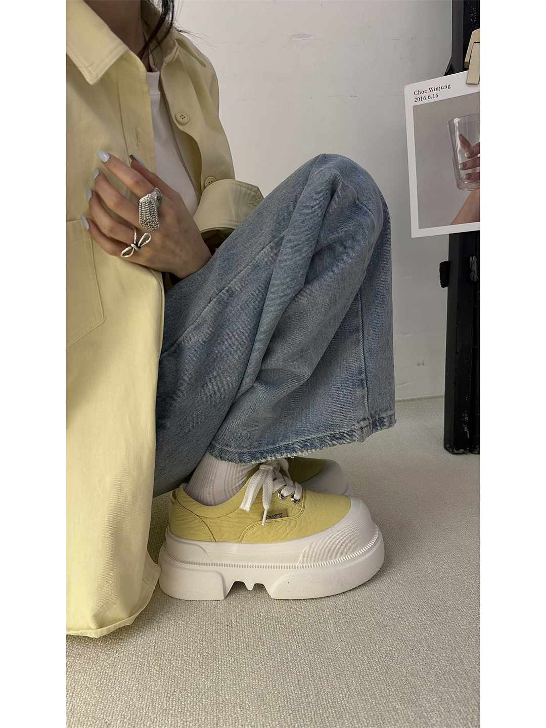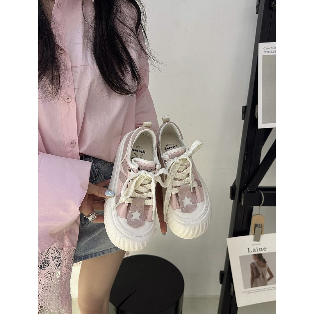 인터넷 연예인 인기 정품 가죽 두꺼운 밑창 비스킷 흰색 신발 여성 2025 봄 신작 캐주얼 다목적 스포츠 빵 신발스토어 가기
