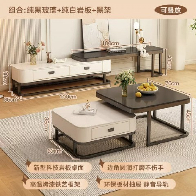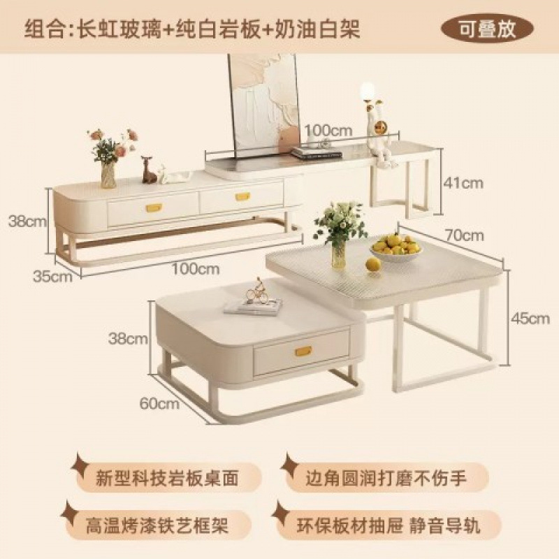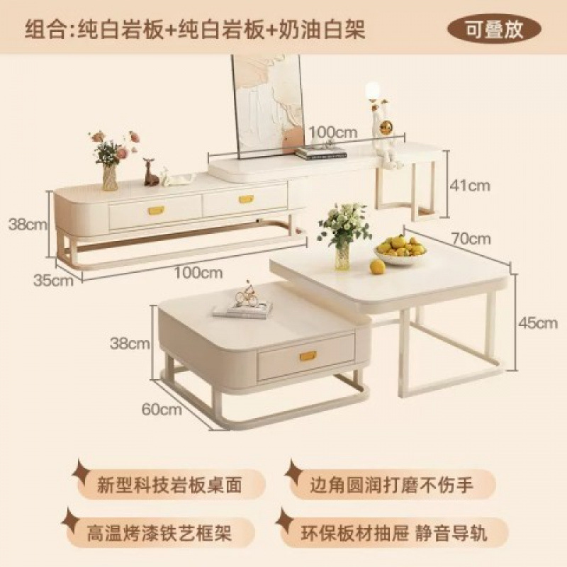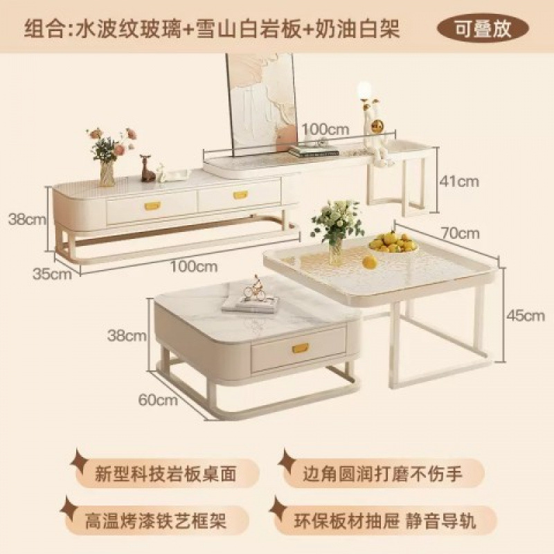 크림 스타일 커피 테이블 거실 홈 간단한 빛 럭셔리 현대 슬레이트 작은 아파트 개폐식 커피 테이블 인터넷 연예인 조합 도매