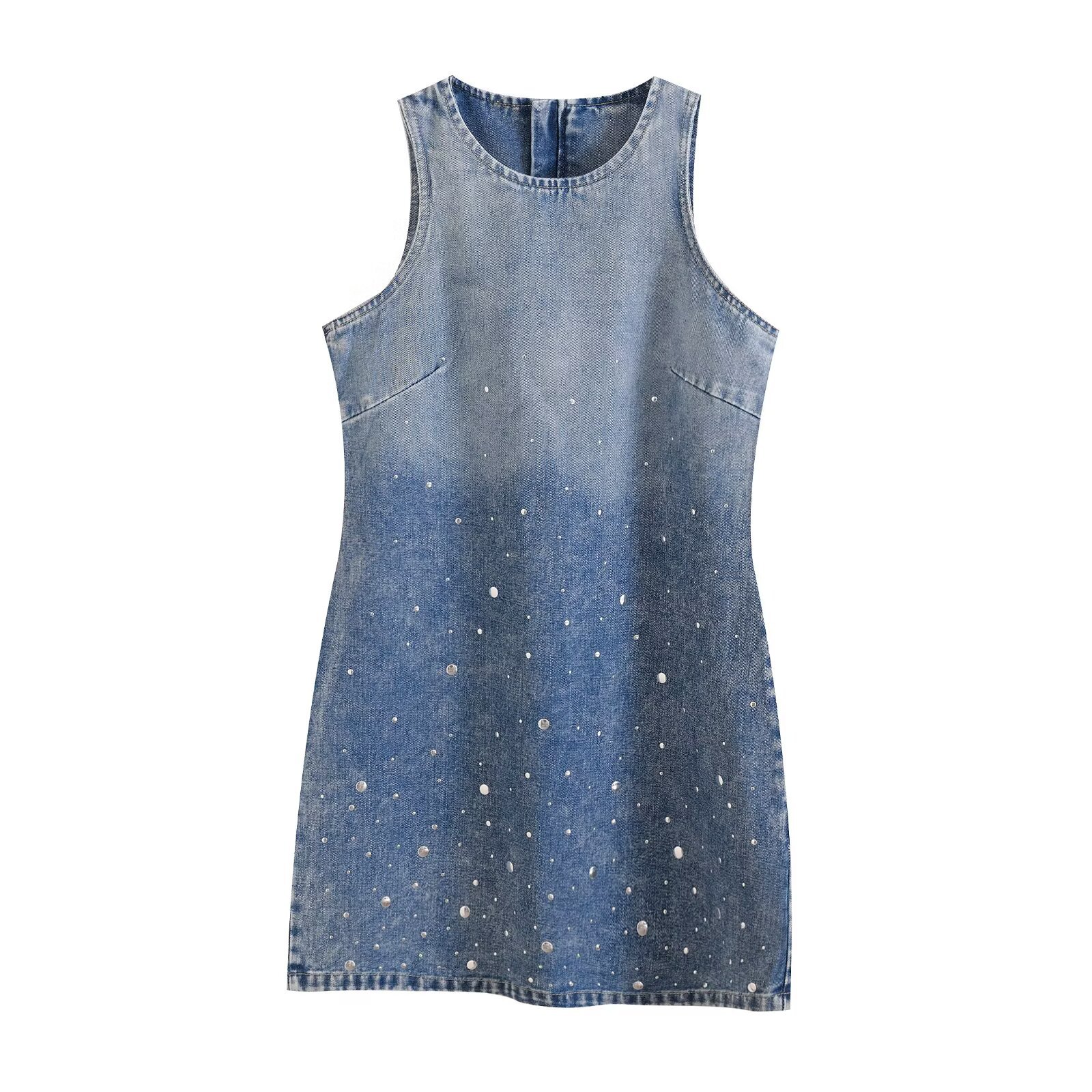 2025 봄 새로운 유럽과 미국의 국경 여성 거리 패션 리벳 장식 데님 원피스 w015 25298