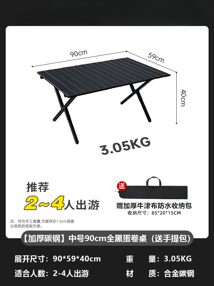 • [두꺼운 탄소강] 중형 90cm 올블랙 에그롤 테이블 (핸드백 포함)