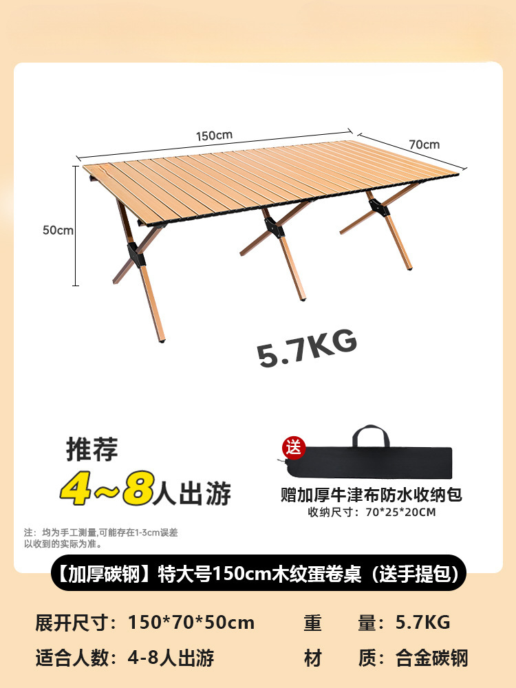 • [두꺼운 탄소강] 특대형 150cm 나뭇결 계란말이 테이블 (핸드백 포함)