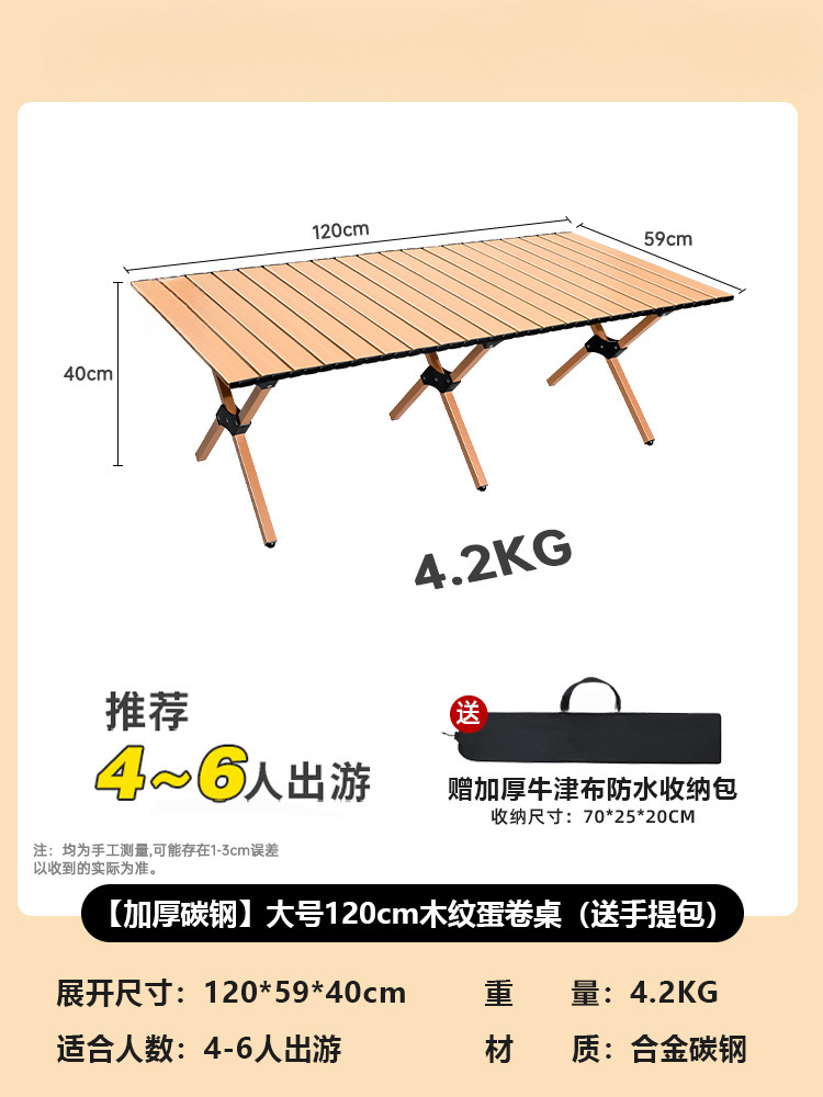 • [두꺼운 탄소강] 대형 120cm 나뭇결 계란말이 테이블 (핸드백 포함)