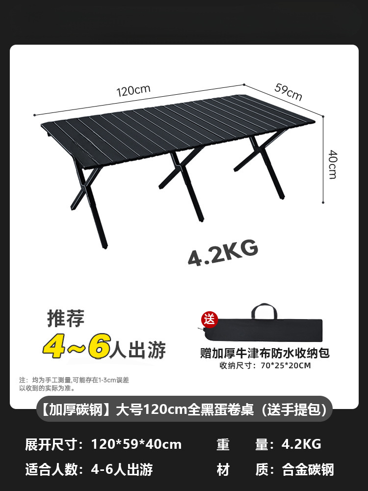 • [두꺼운 탄소강] 대형 120cm 올블랙 에그롤 테이블 (핸드백 포함)