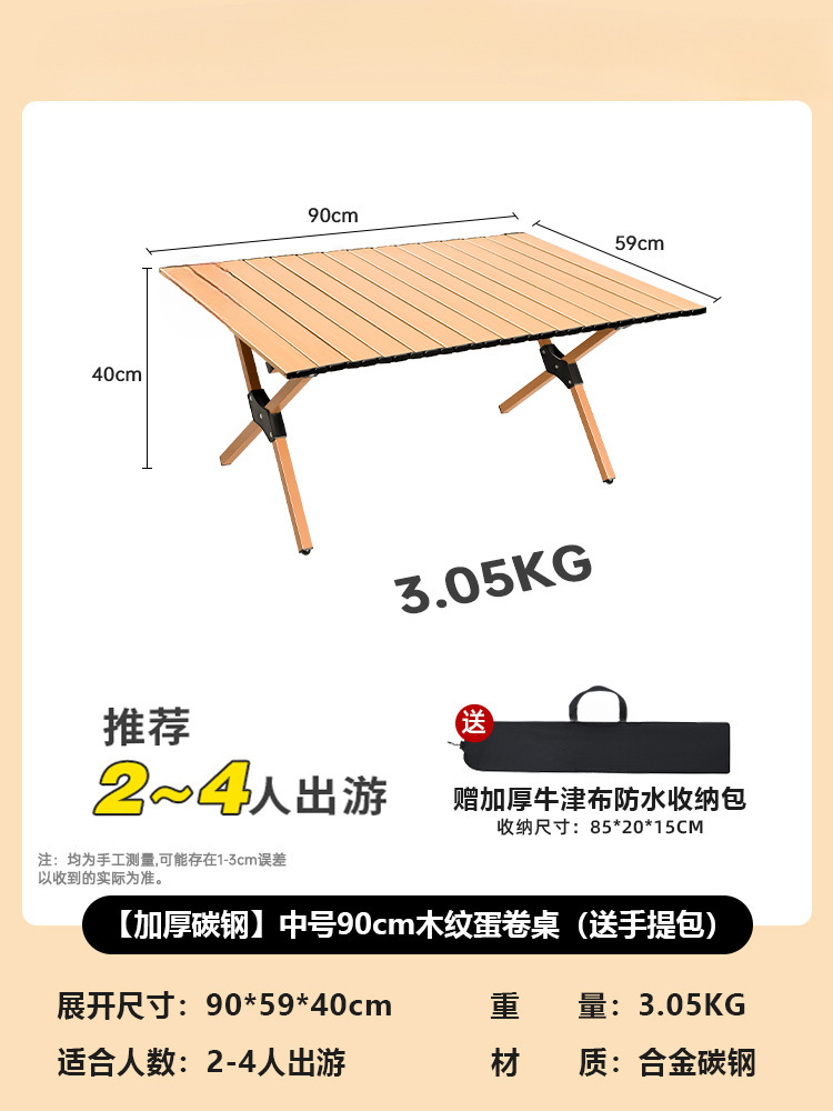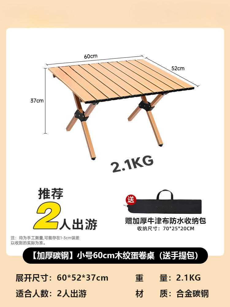 • [두꺼운 탄소강] 소형 60cm 나뭇결 계란말이 테이블(핸드백 포함)