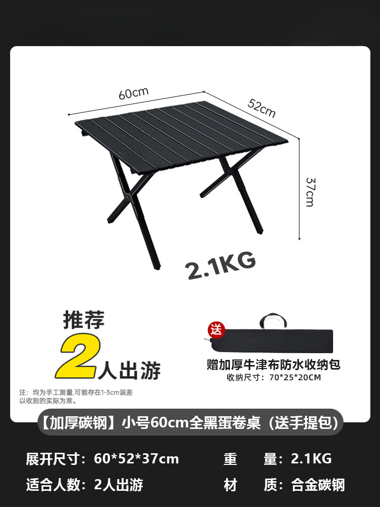 • [두꺼운 탄소강] 소형 60cm 올블랙 에그롤 테이블 (핸드백 포함)