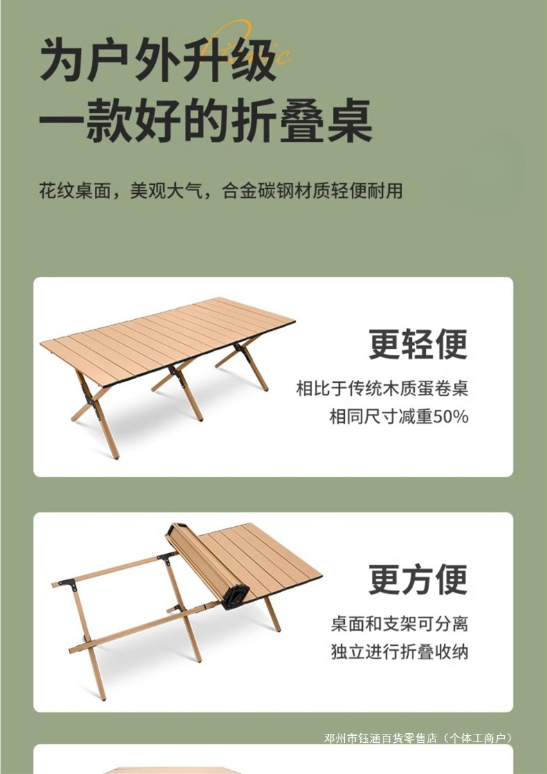 Yuhan 야외 접이식 테이블 휴대용 계란 롤 테이블 접이식 피크닉 테이블 스톨 바베큐 테이블 캠핑 용품스토어 가기