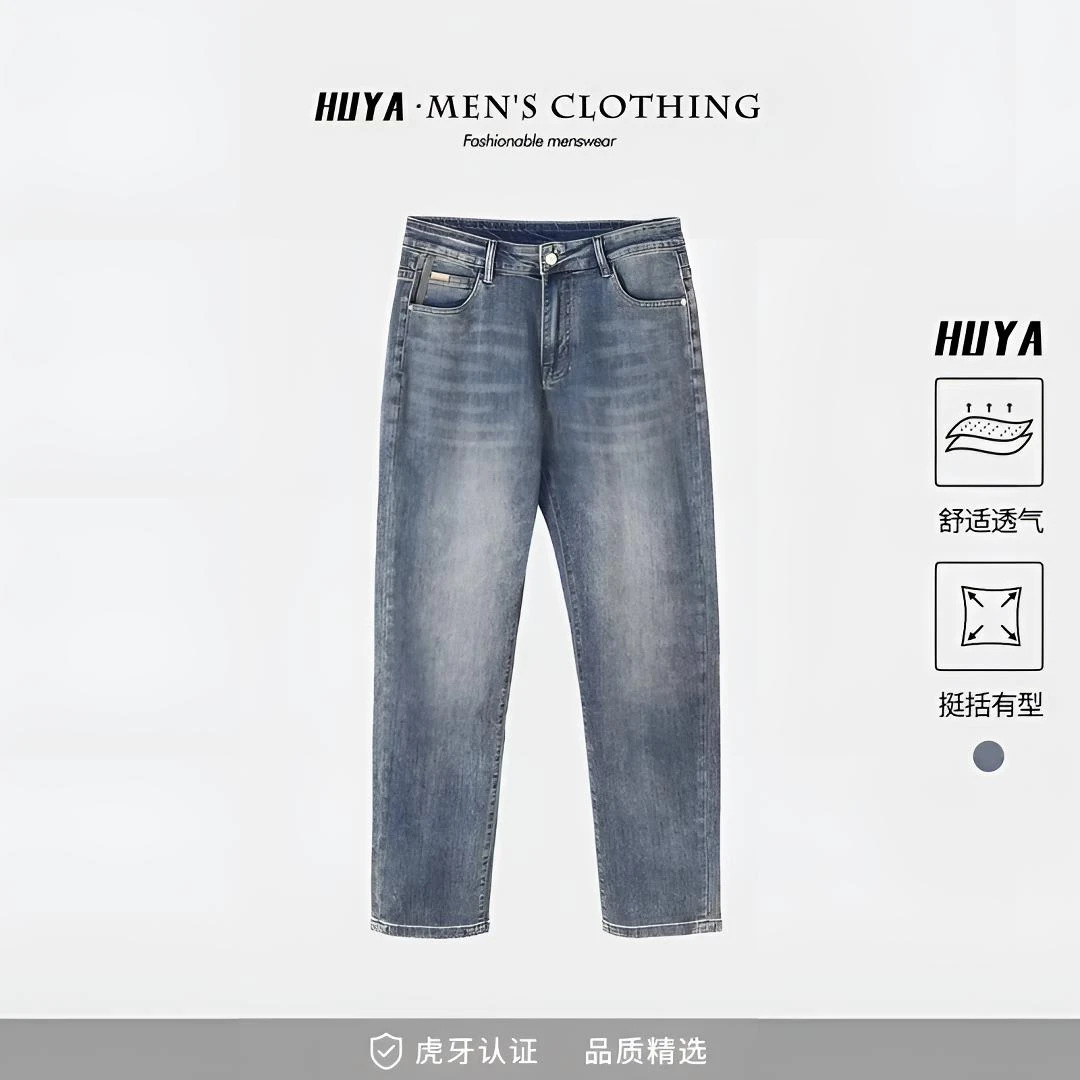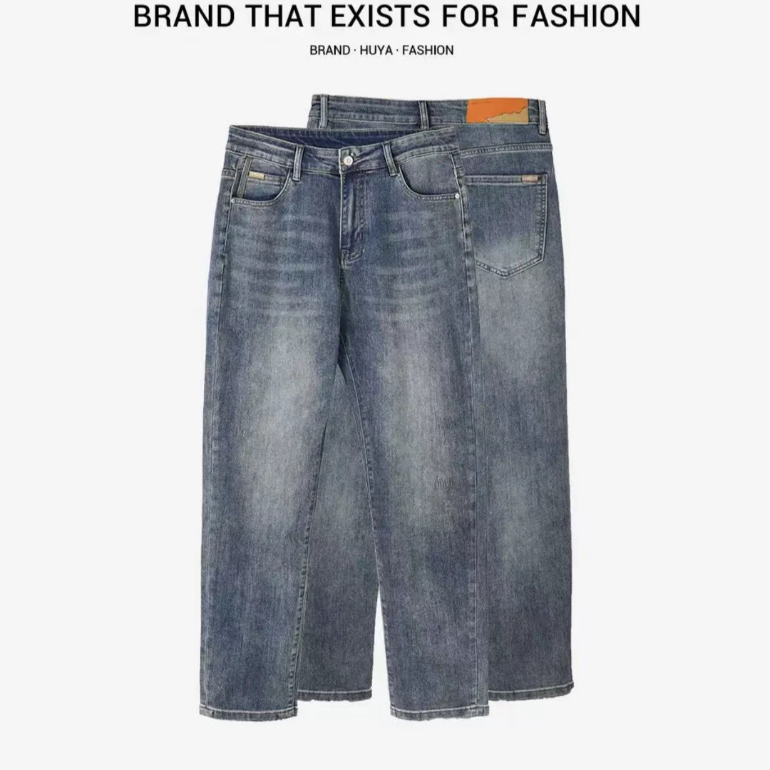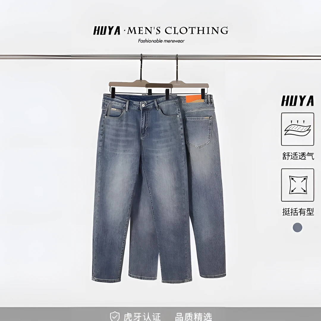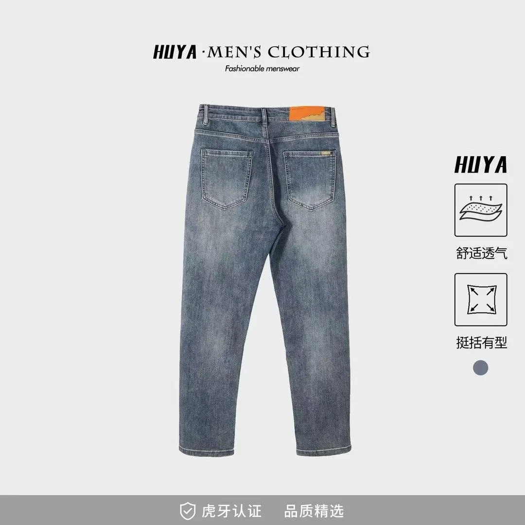 봄과 여름 새로운 패션 간단한 남성 청바지 간단한 올 매치 스트레치 하이 퀄리티 솔리드 컬러 스트레이트 바지스토어 가기