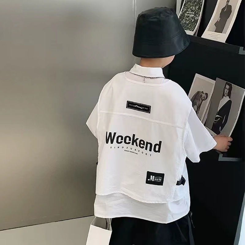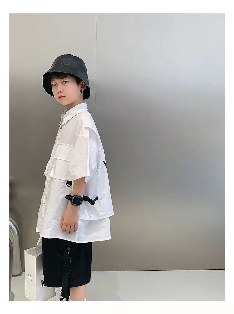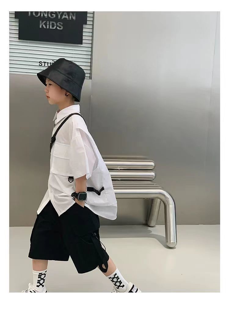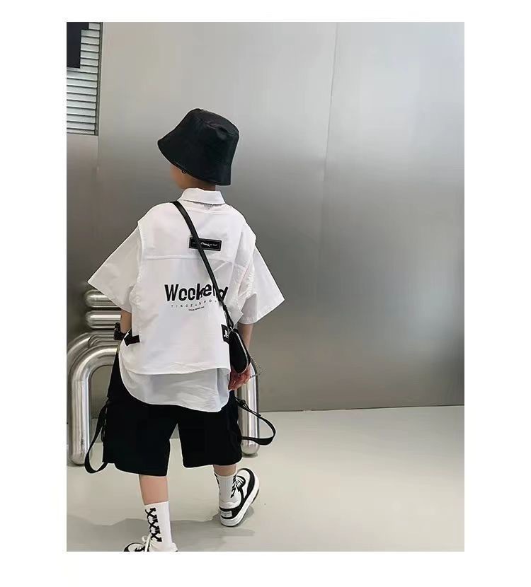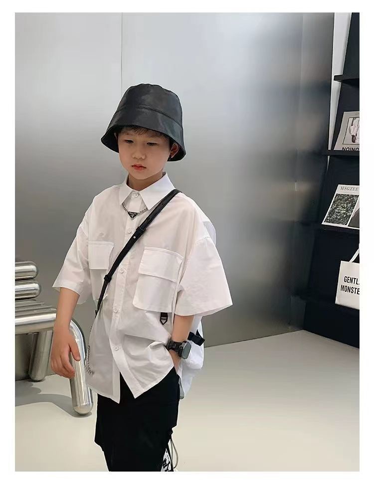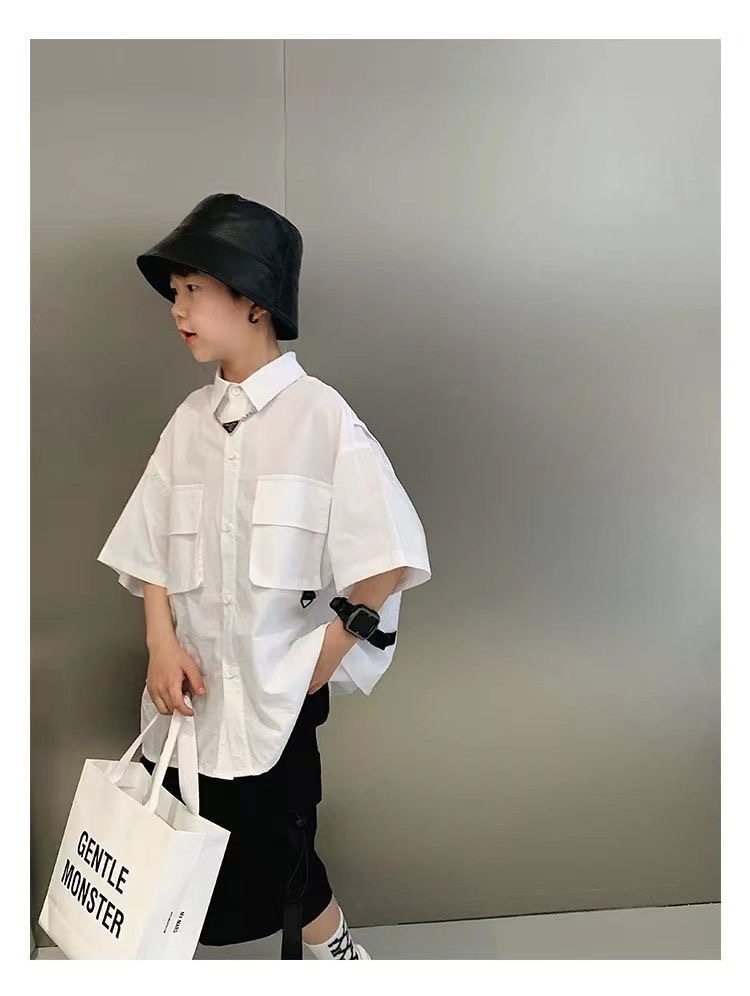 어린이 셔츠 반팔 2025 여름 새 한국 스타일 중대형 어린이 서양식 탑 유행 브랜드 반소매 어린이 얇은 셔츠스토어 가기