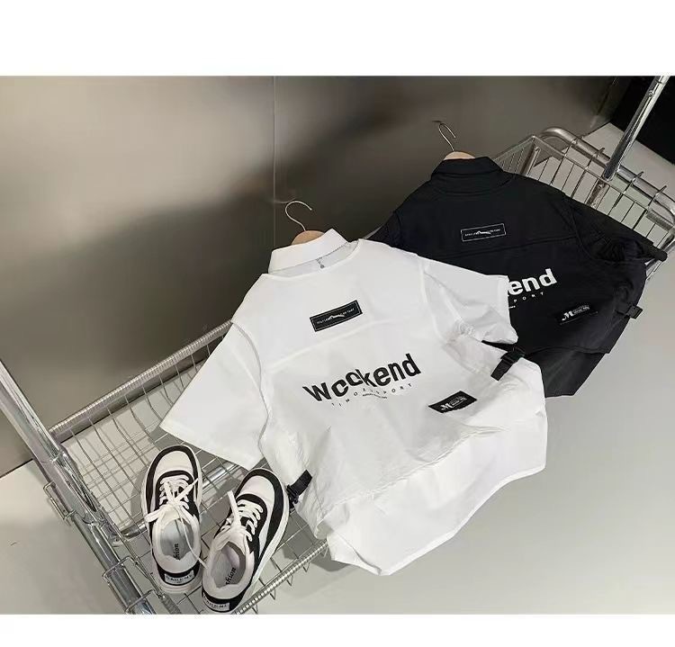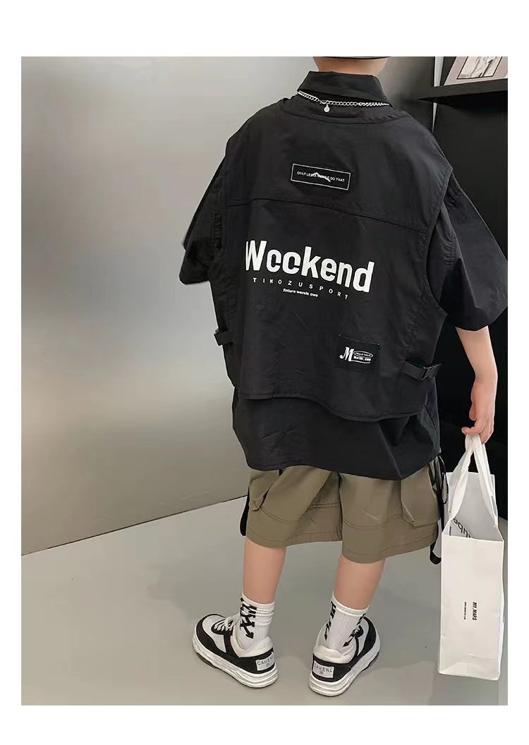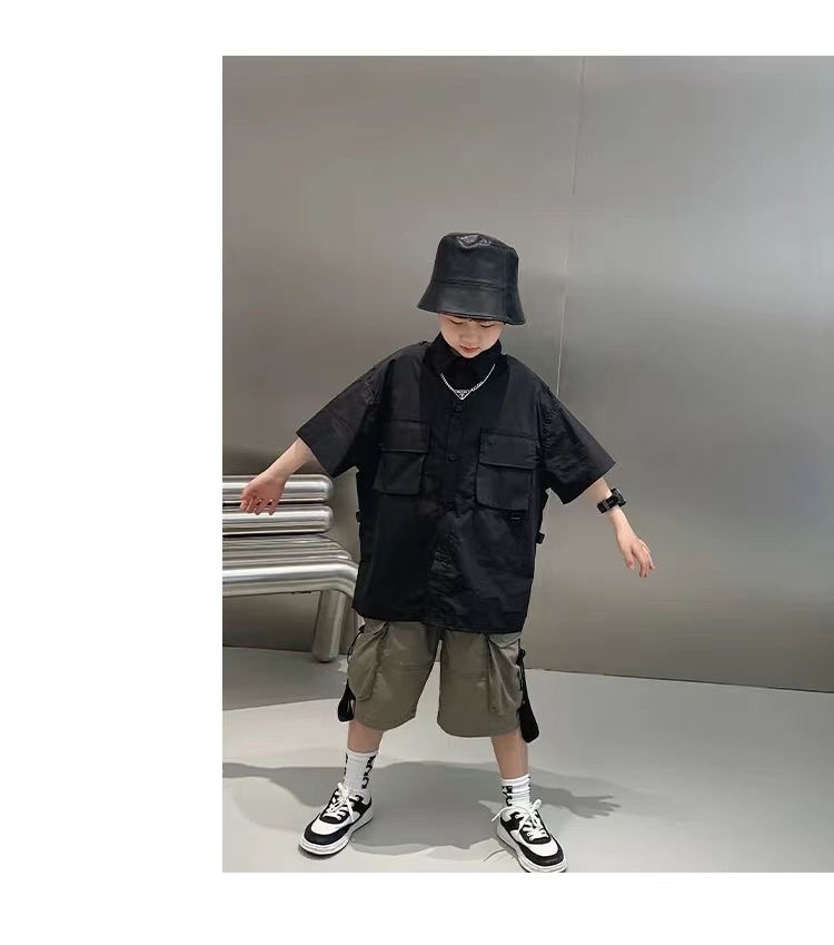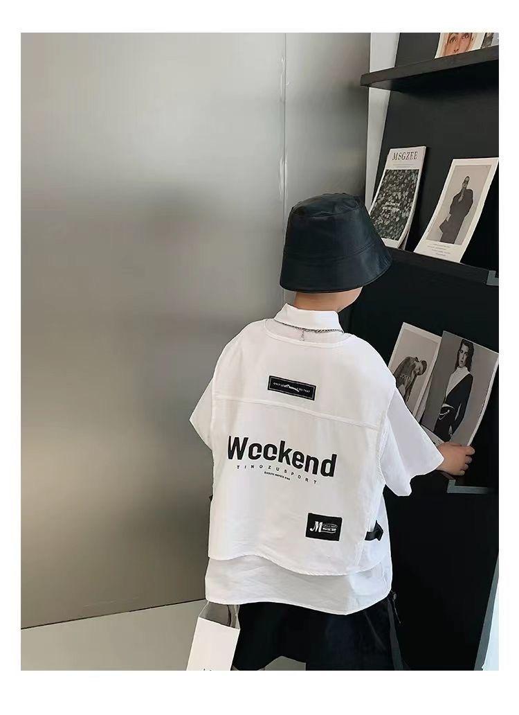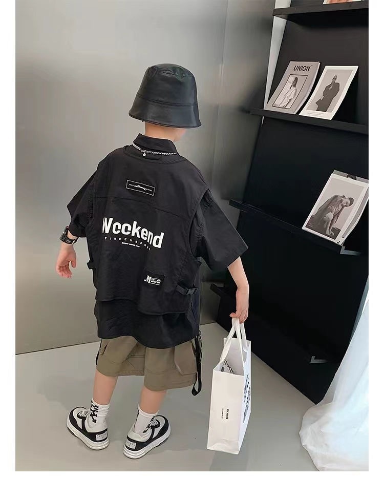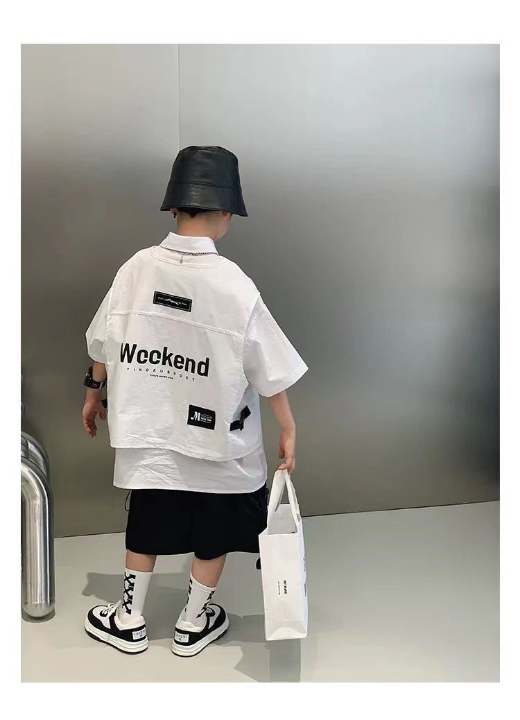 어린이 셔츠 반팔 2025 여름 새 한국 스타일 중대형 어린이 서양식 탑 유행 브랜드 반소매 어린이 얇은 셔츠스토어 가기