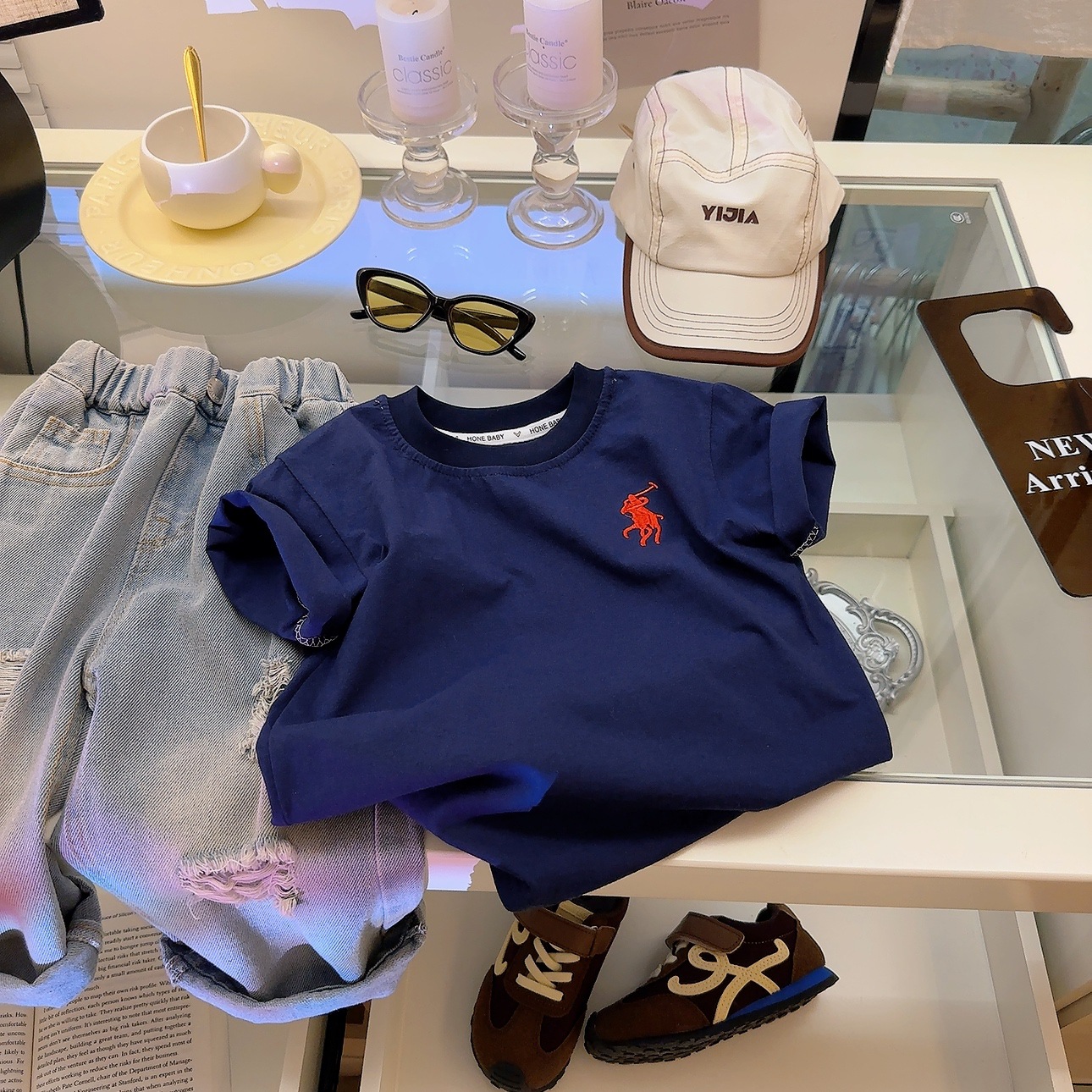 어린이 여름 반팔 티셔츠 ~ 소년 소녀 아기면 둥근 목 풀오버 반소매 최고 트렌디 한 아동복스토어 가기