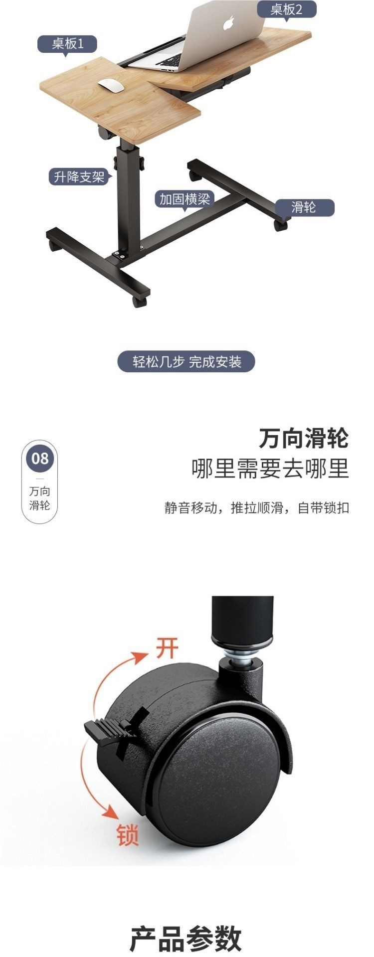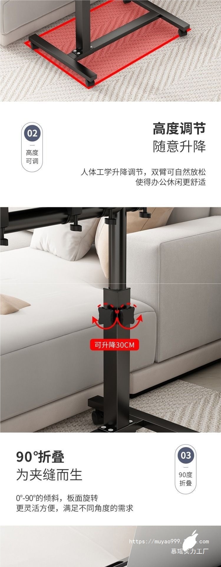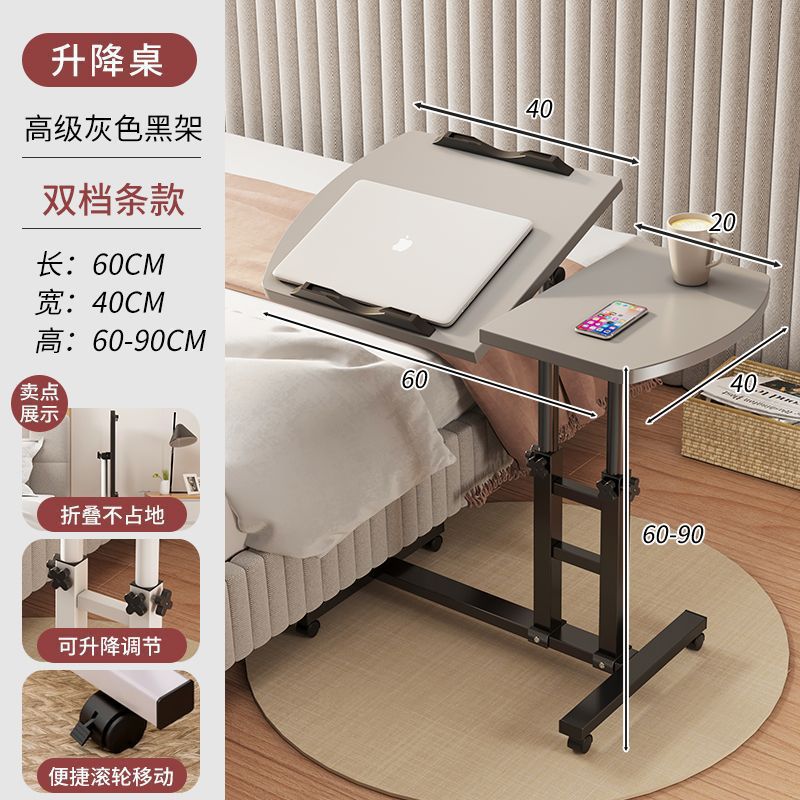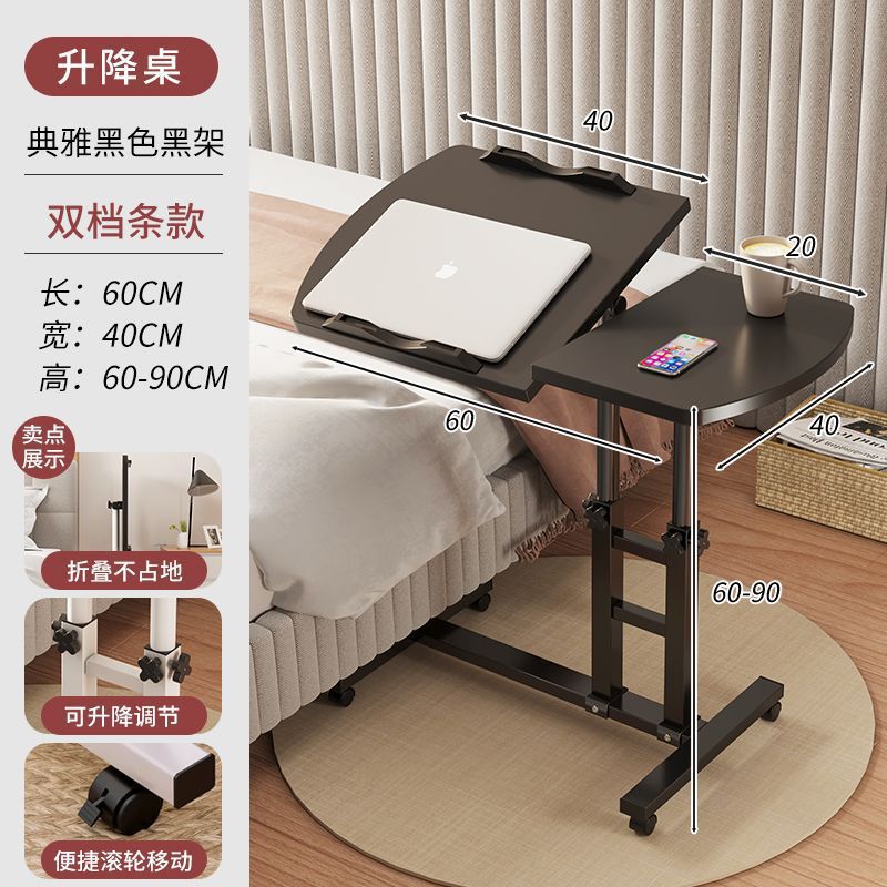 노트북 책상 침대 옆 탁상용 침대 테이블 휴대용 모바일 테이블 360 도 회전