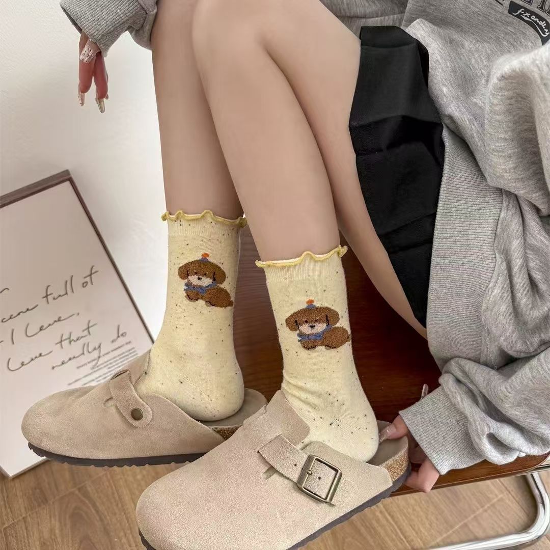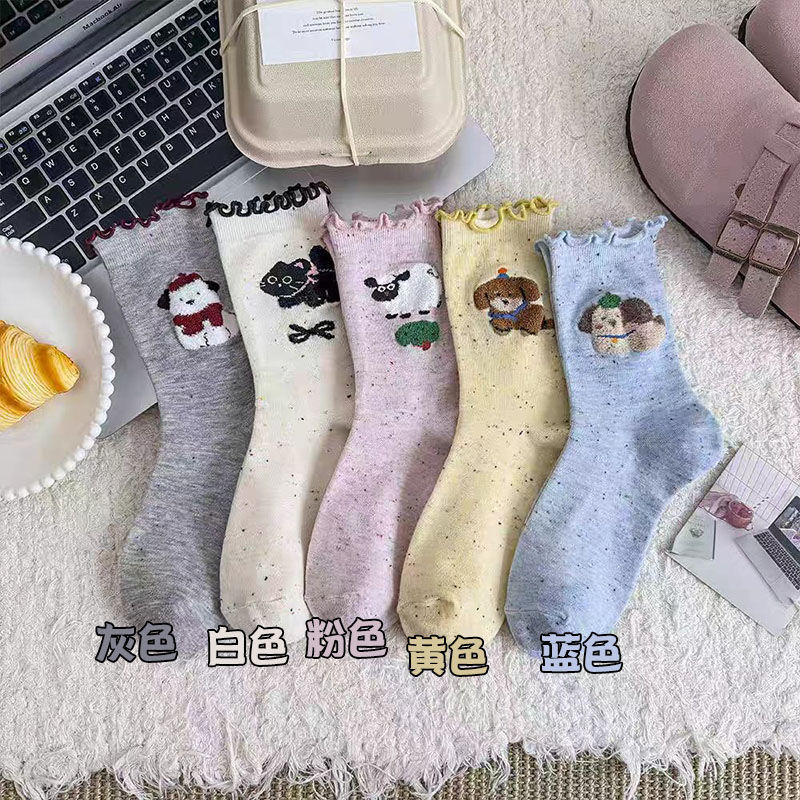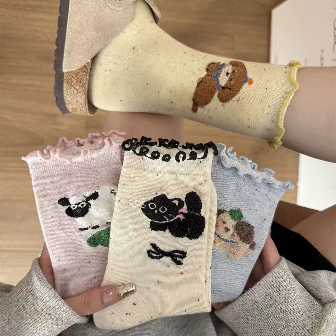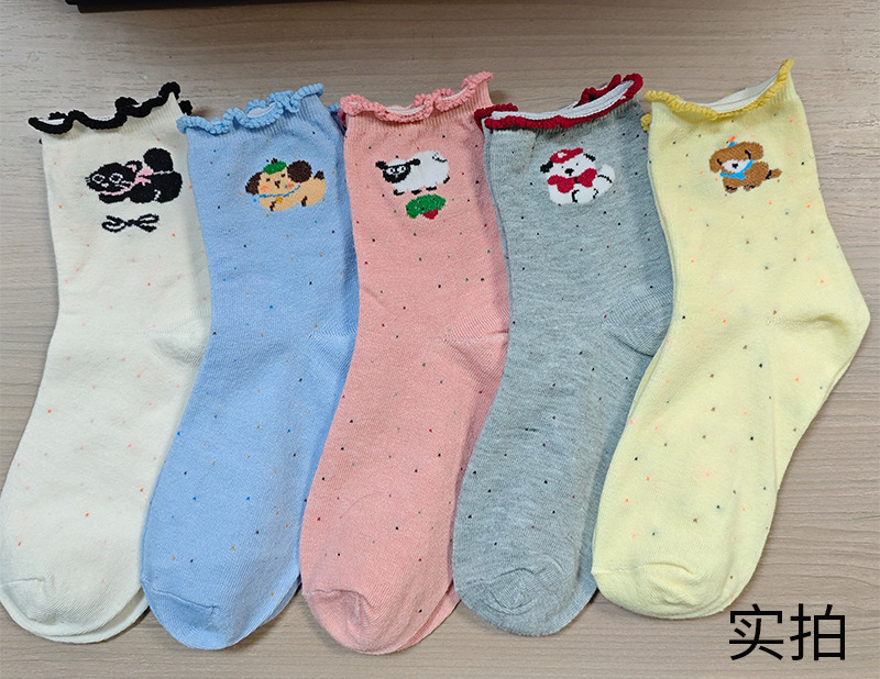 여성용 여름 중목 양말, 인스 트렌드, 러플 장식, 여성용 롱 양말, 귀여운 스타일, 여름용 얇은 양말, 도매스토어 가기