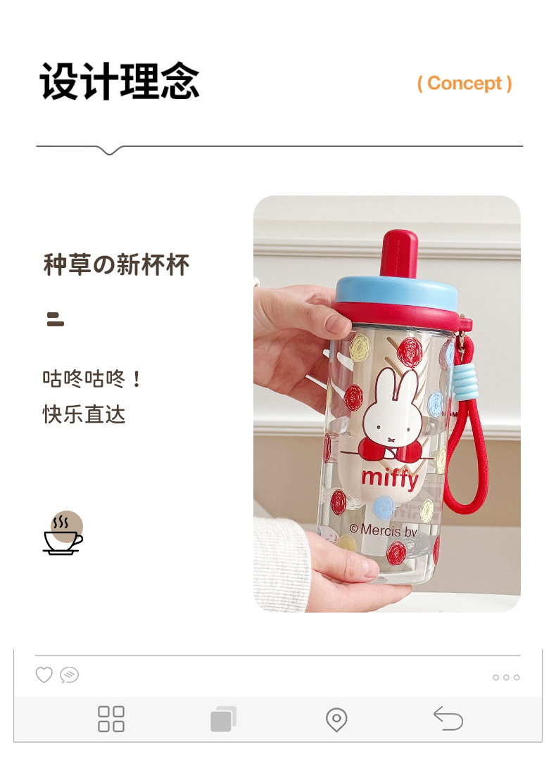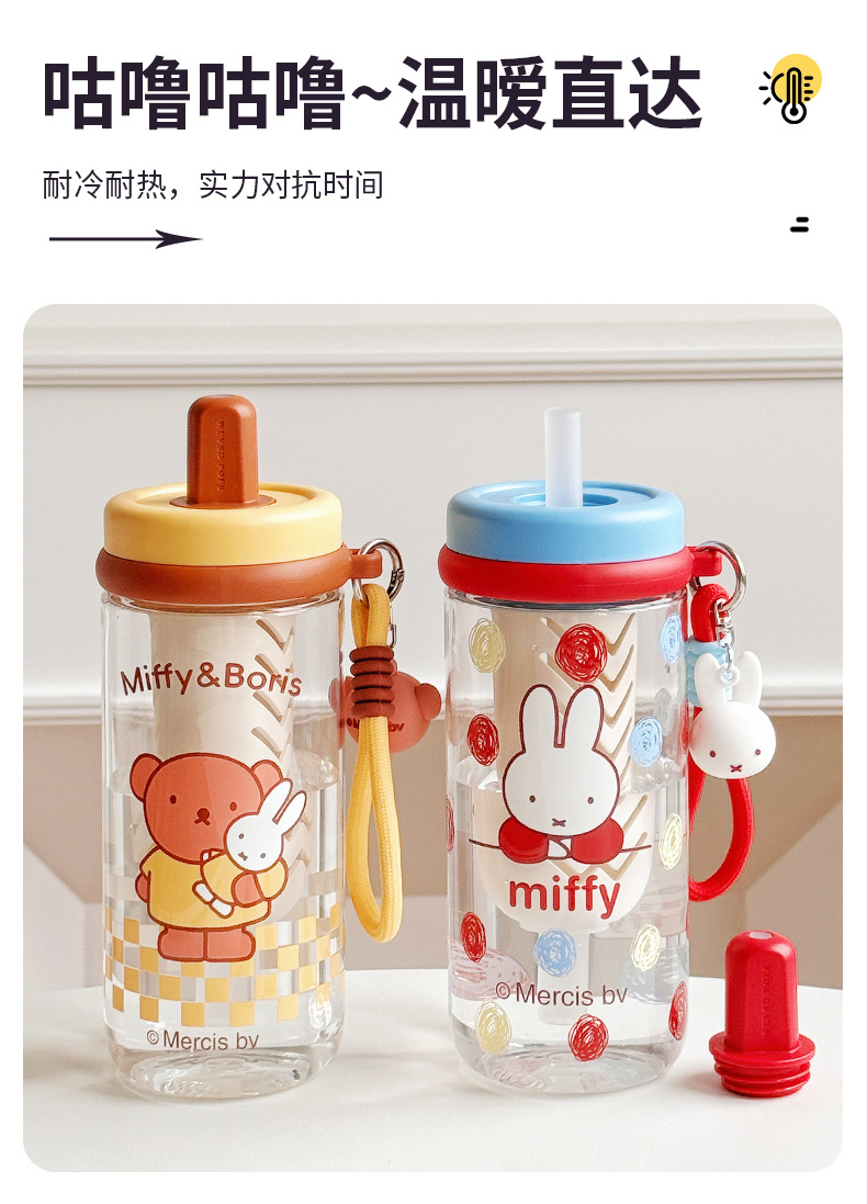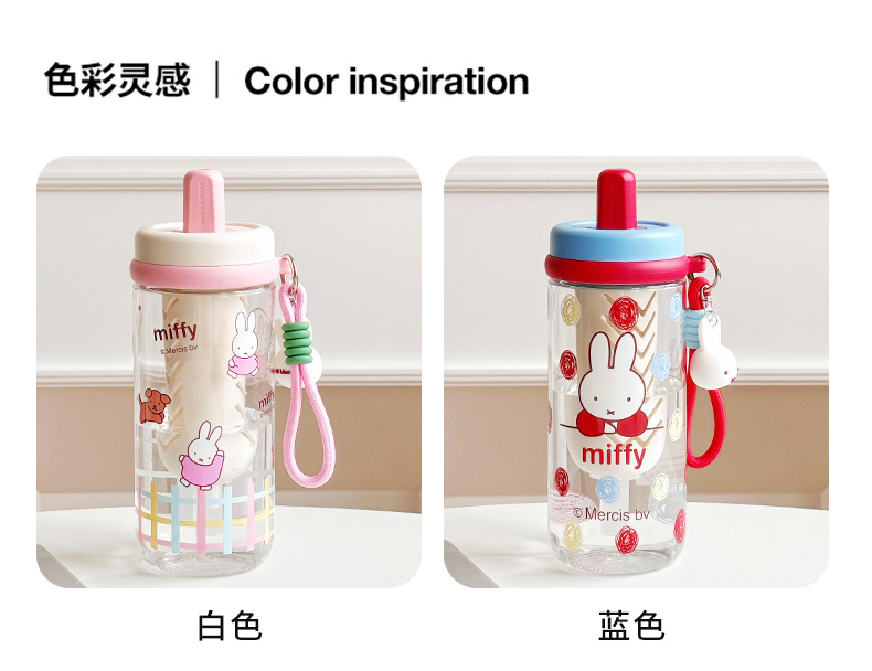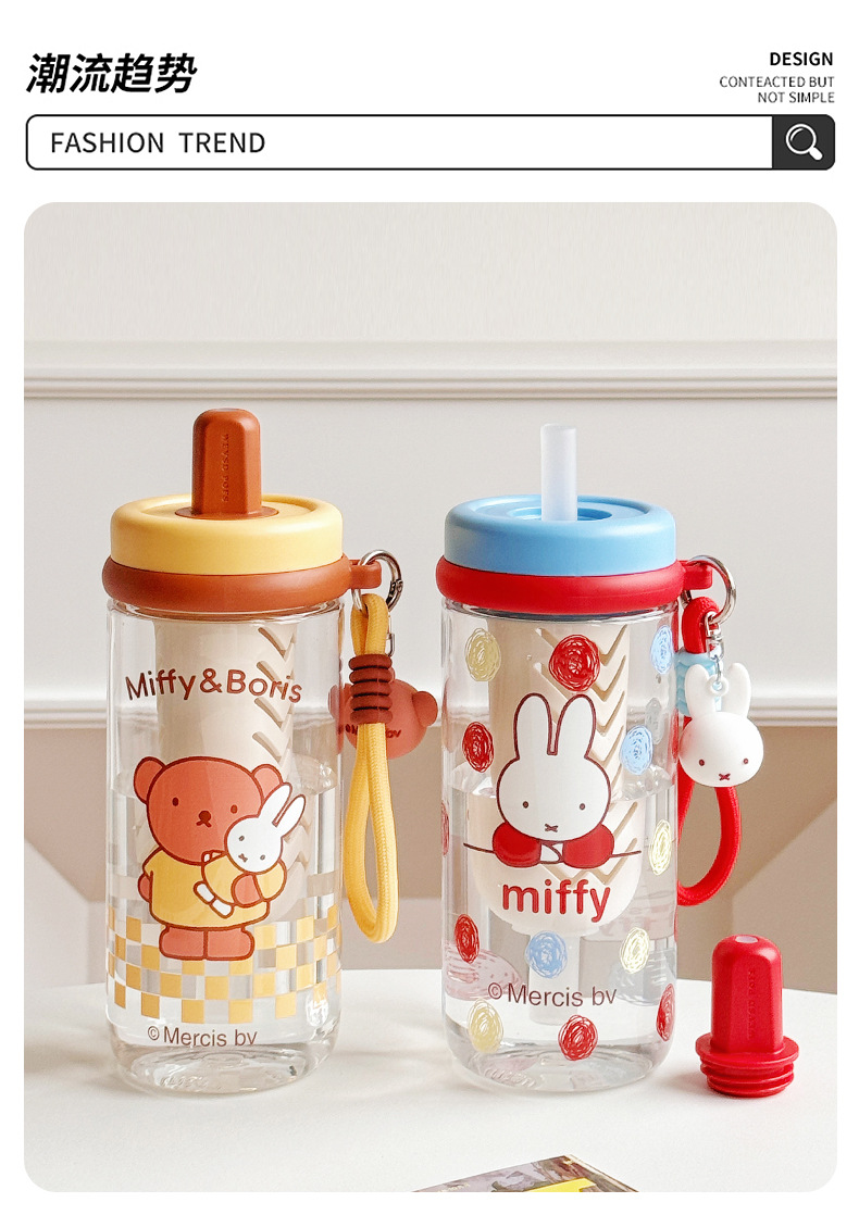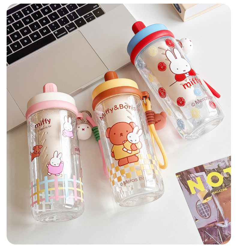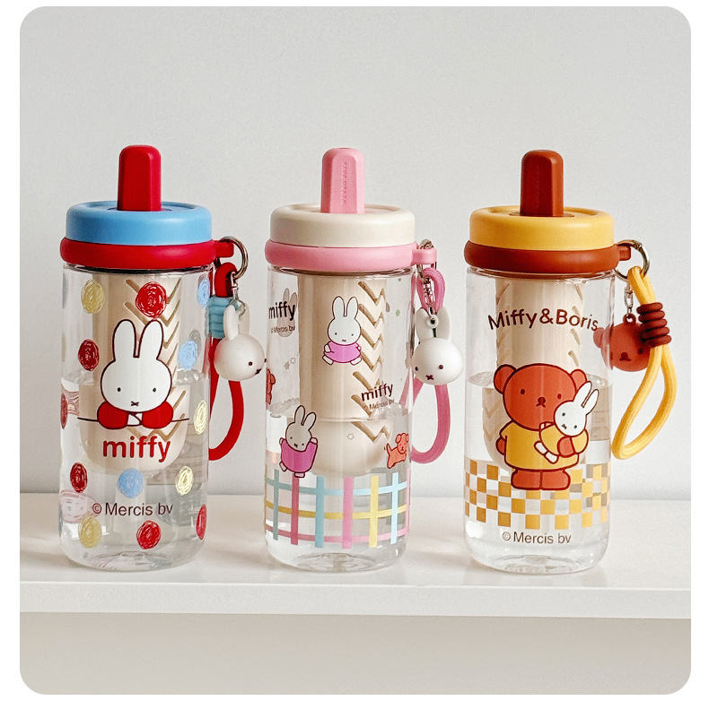Miffy의 다채로운 여름 밀짚 컵 차와 물 분리 귀여운 만화 컵 소녀의 멋진 여름 어린이 물컵스토어 가기