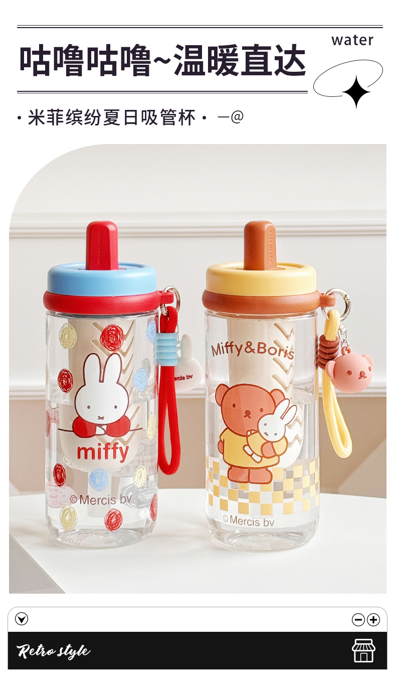 Miffy의 다채로운 여름 밀짚 컵 차와 물 분리 귀여운 만화 컵 소녀의 멋진 여름 어린이 물컵
