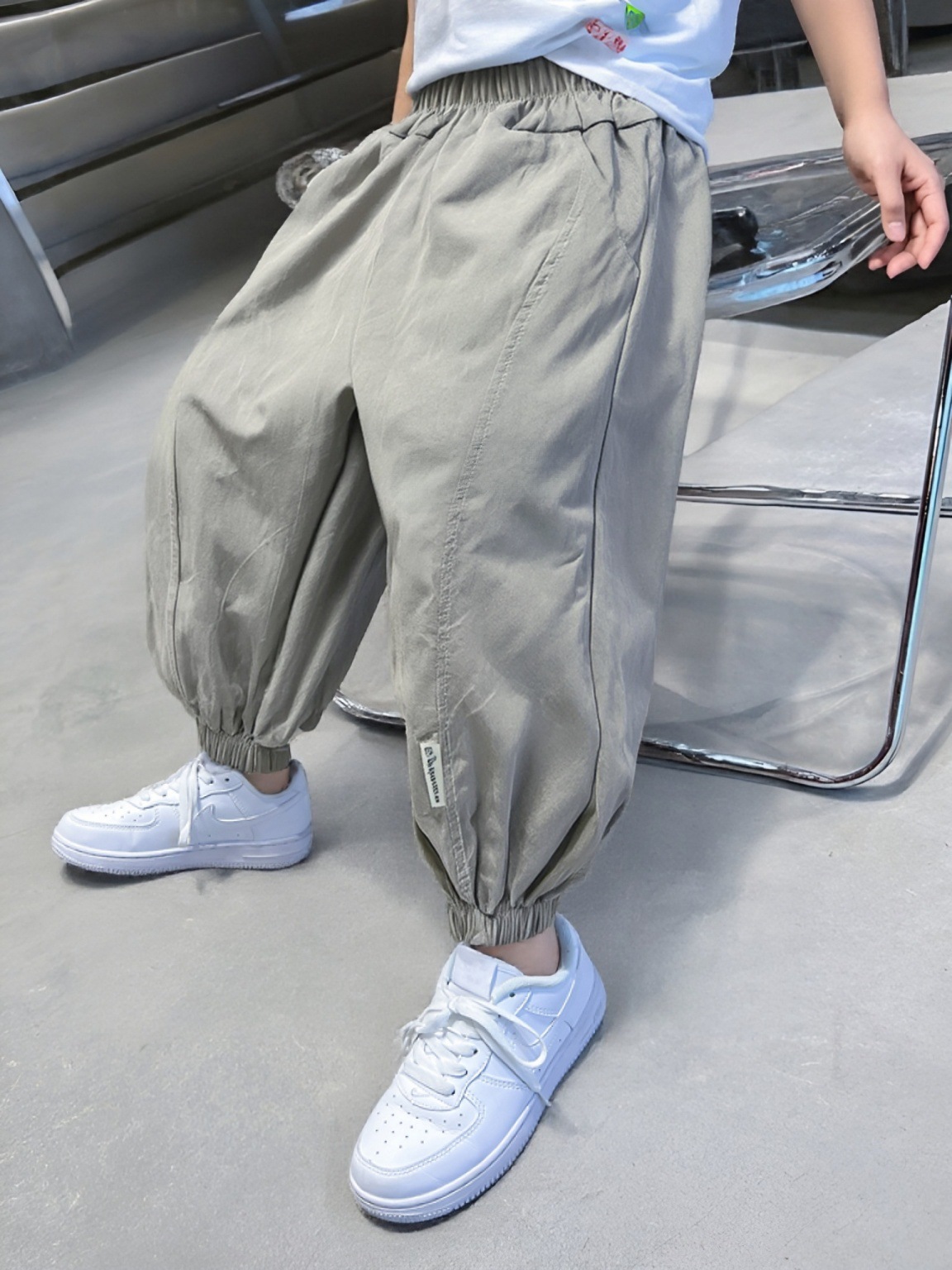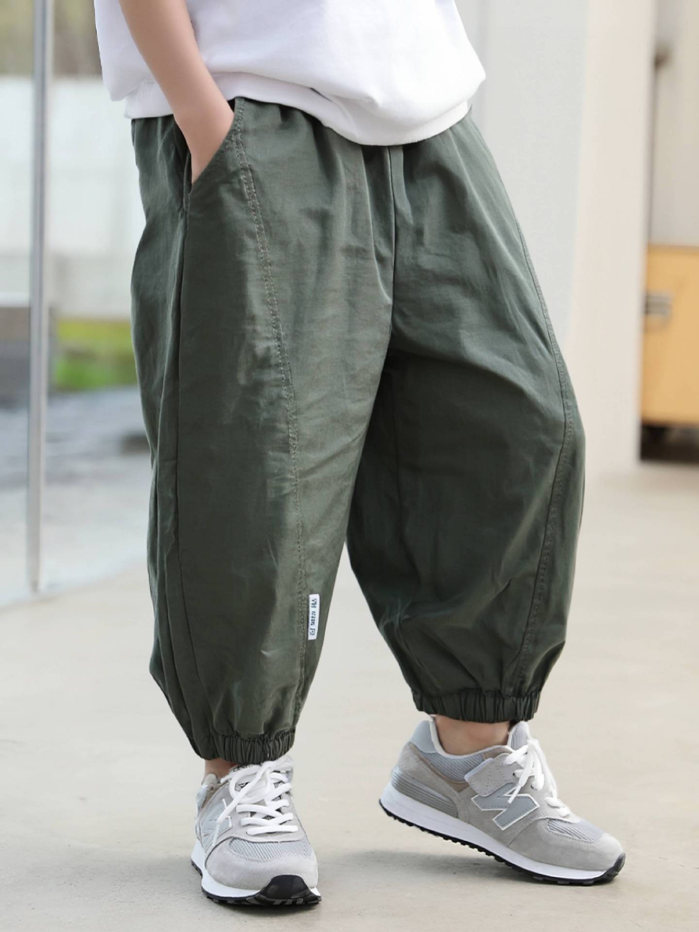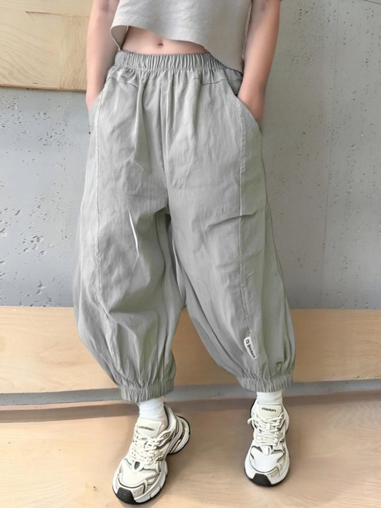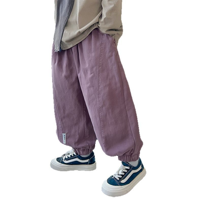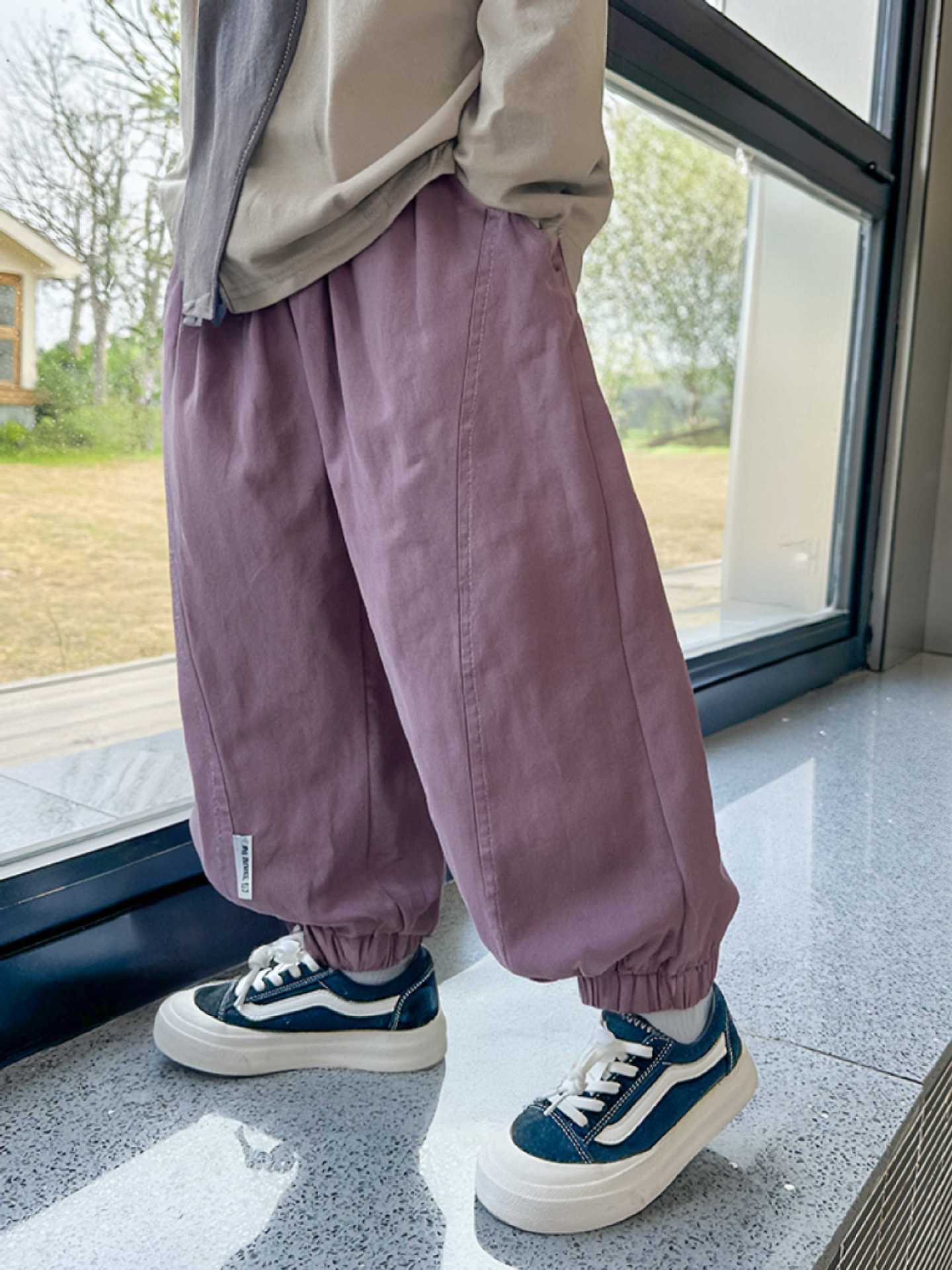 100% 면 얇은 바지 어린이 여름 순수 코튼 툴링 바지 소년 및 소녀 중형 및 대형 어린이 솔리드 컬러 스티칭 캐주얼 바지스토어 가기
