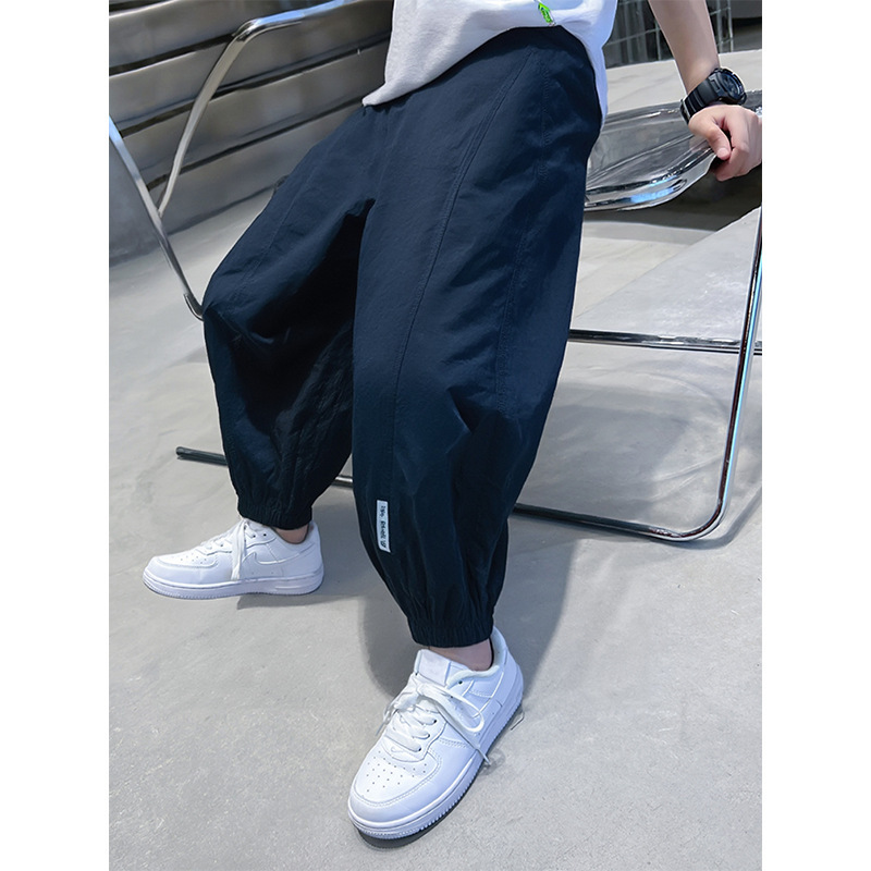 100% 면 얇은 바지 어린이 여름 순수 코튼 툴링 바지 소년 및 소녀 중형 및 대형 어린이 솔리드 컬러 스티칭 캐주얼 바지