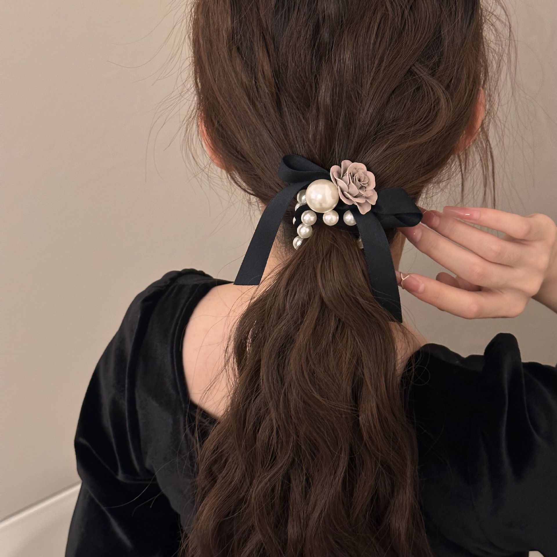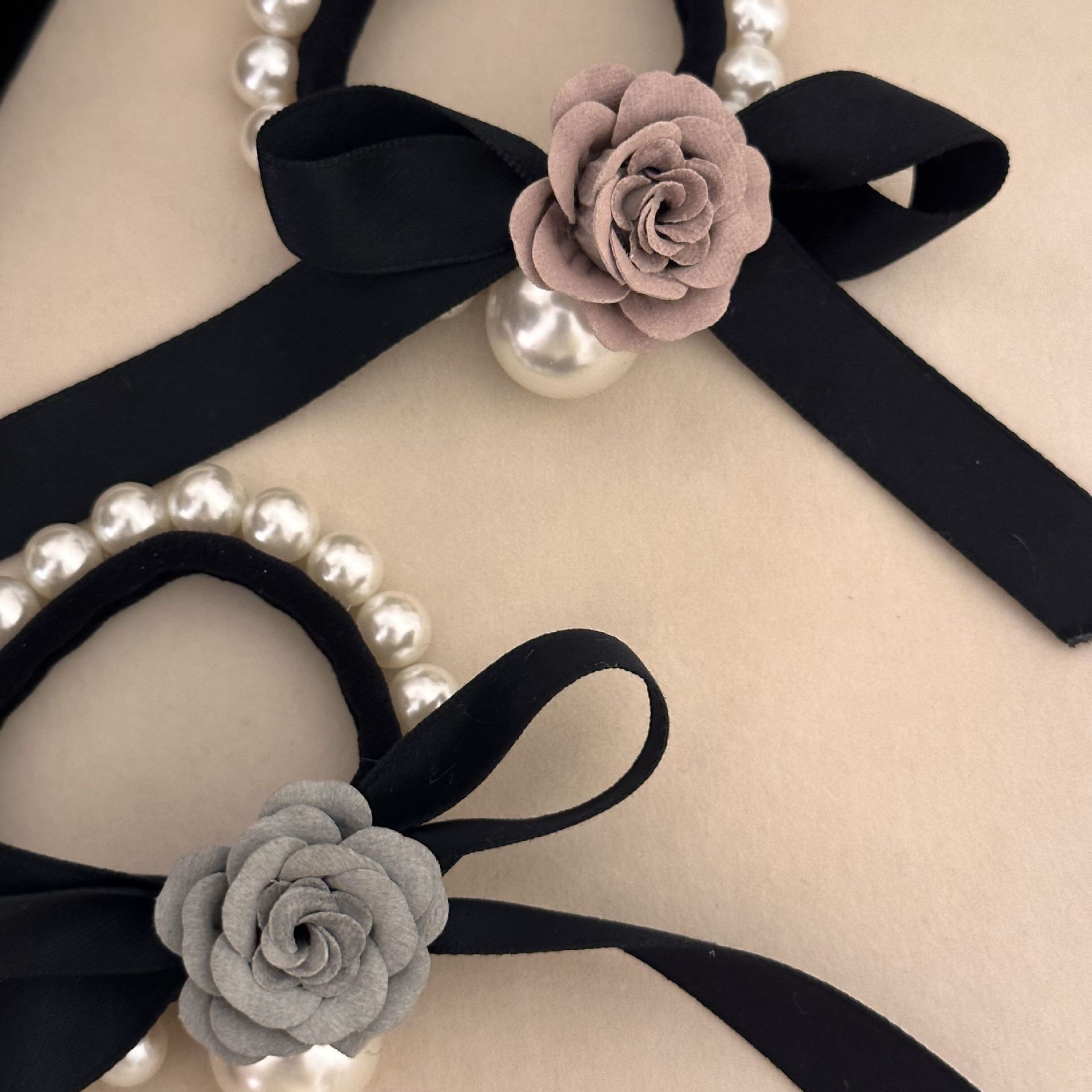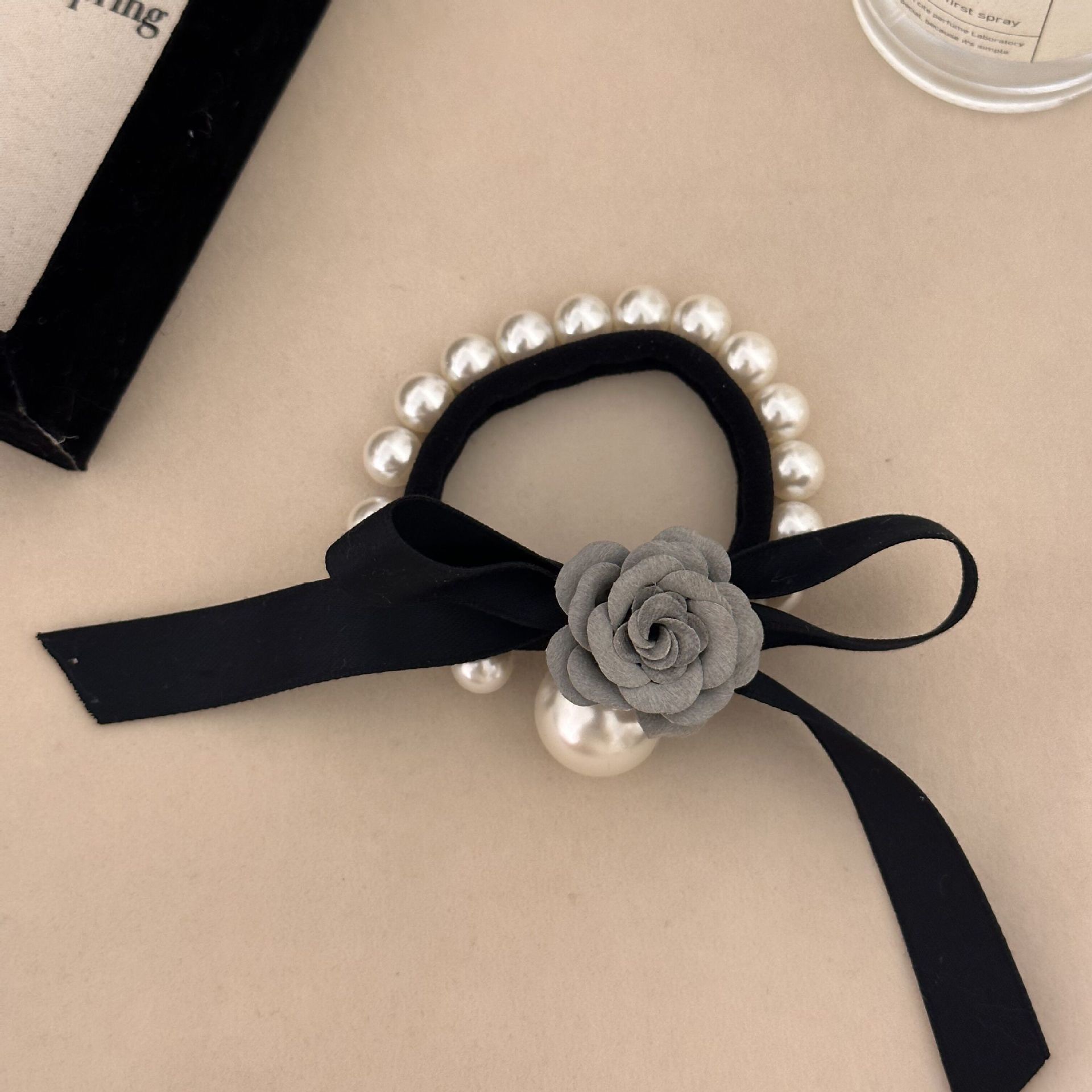 한국 스타일 달콤한 스타일 동백 활 진주 가죽 텐던 헤어 링 간단한 올 매치 새로운 높은 탄성 헤드 라인 헤어 액세서리