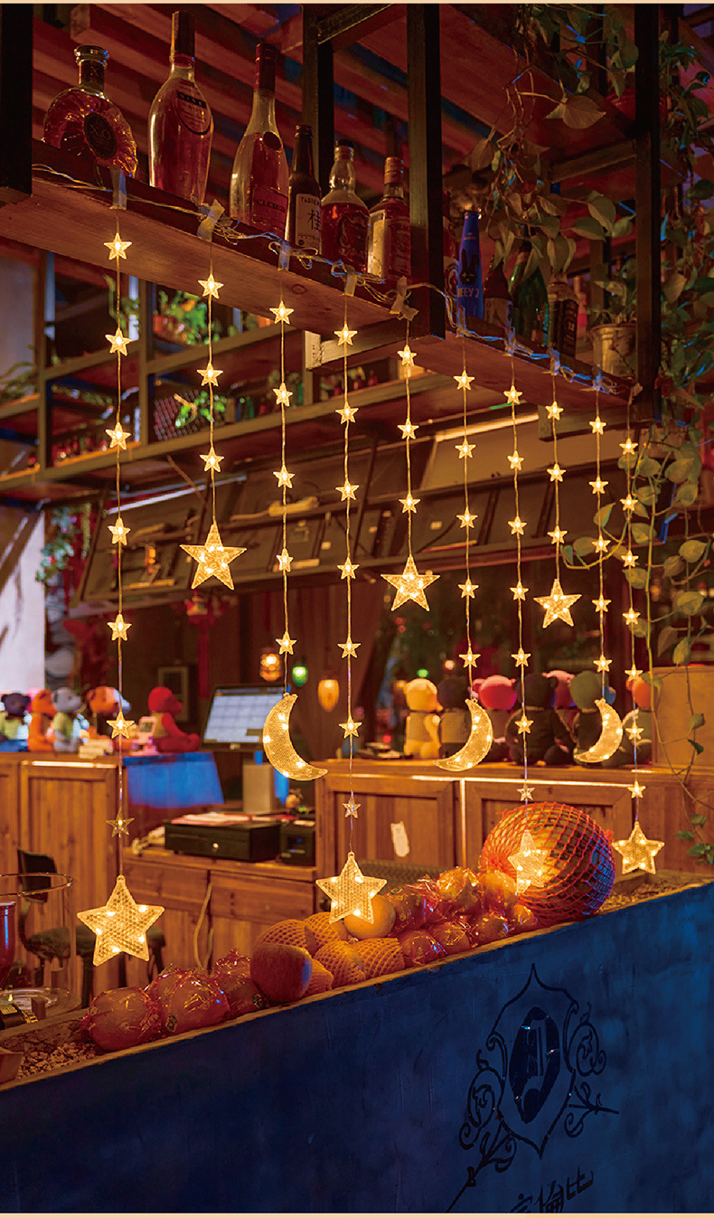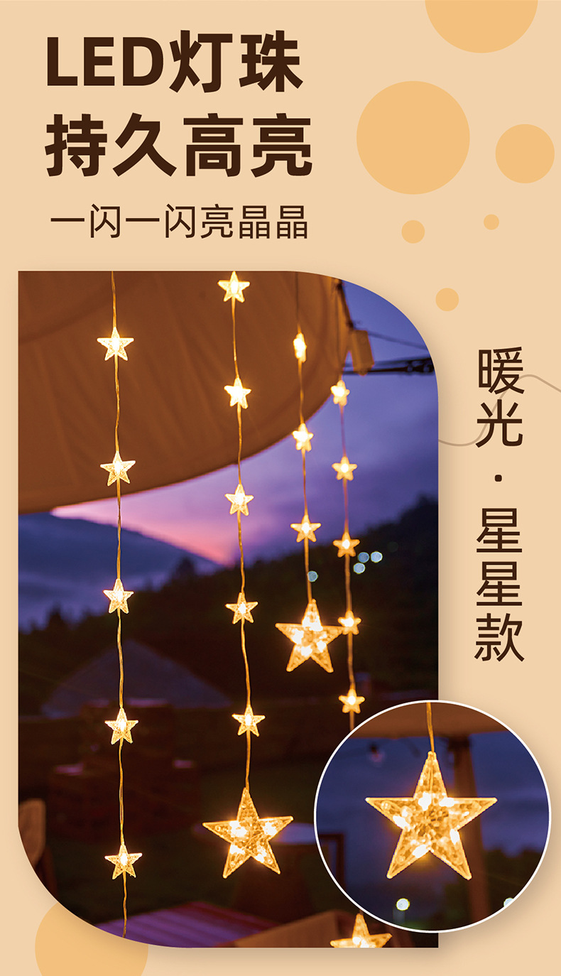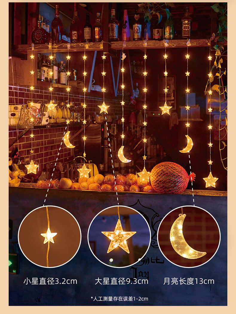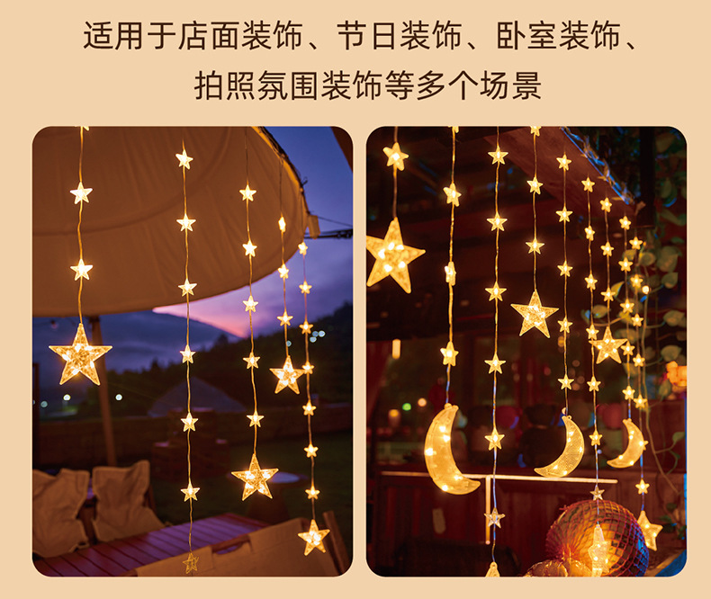 스타 라이트 LED 커튼 빛 분위기 빛 야외 태양 스타 문 캠핑 라이트 홈스테이 장식 인터넷 축하 컬러 라이트스토어 가기