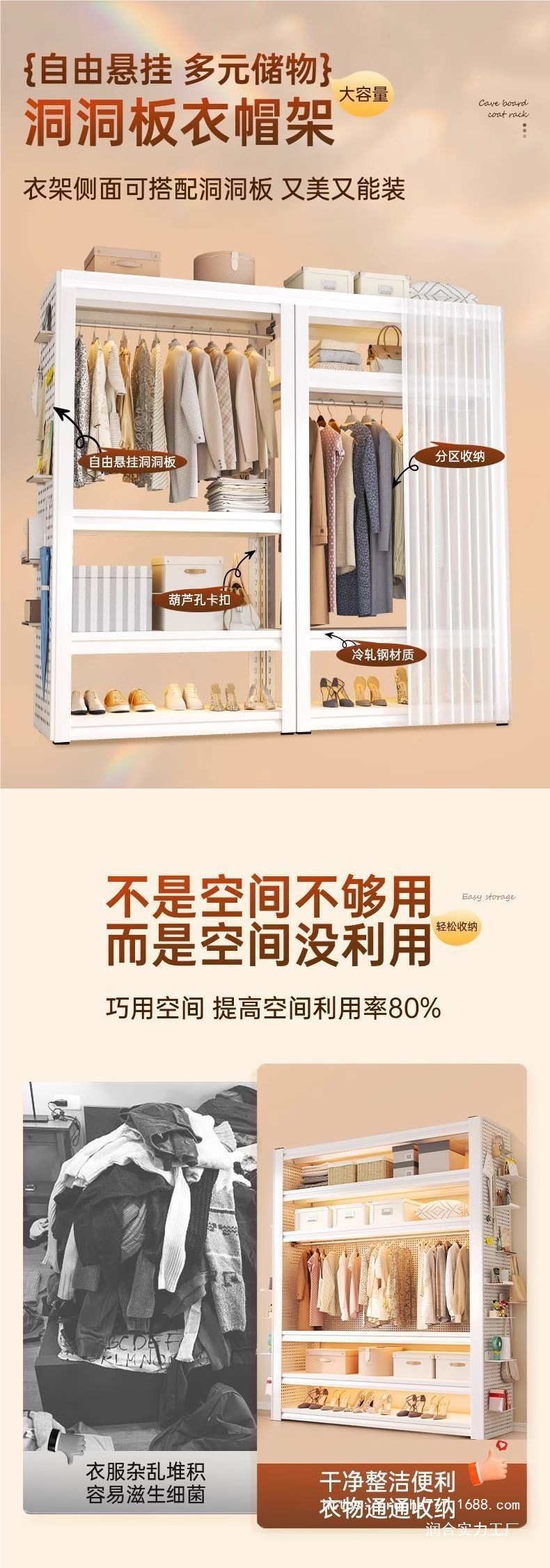 개방형 옷걸이, 간단한 조립, 임대 주택 옷장, 다층 수납 옷걸이, 수납 선반, 옷장