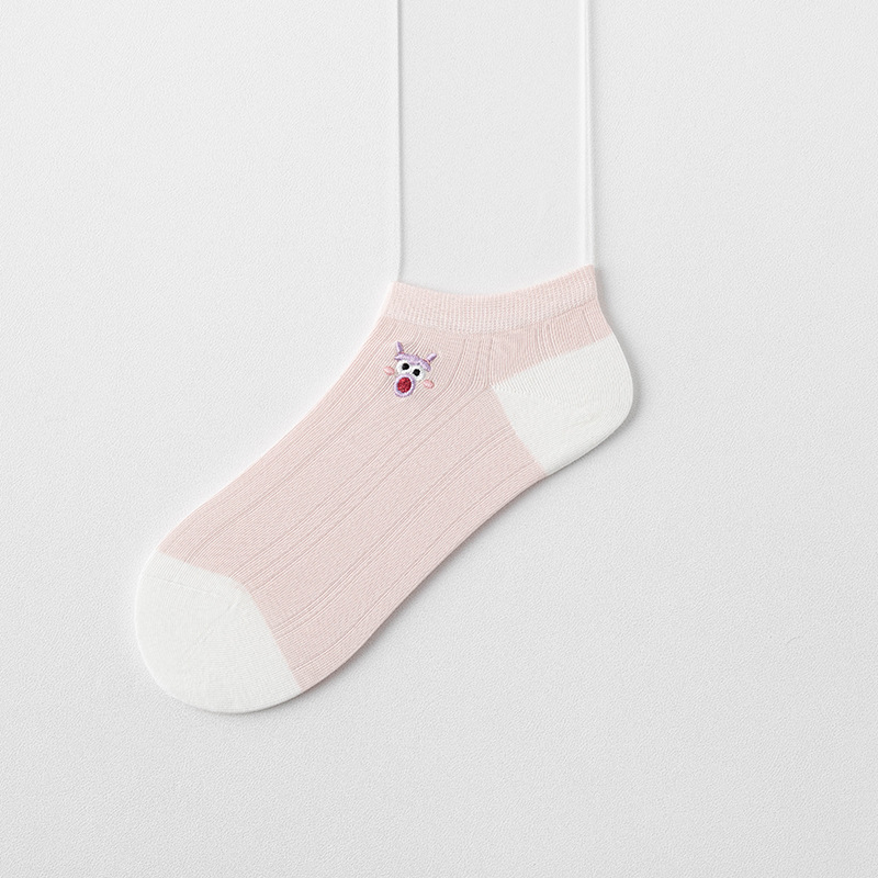 여성을 위한 봄 여름 로우탑 짧은 양말, 귀여운 대학 스타일 자수 캐주얼 스트라이프, 재미있고 귀여운 애완동물 여성 보트 양말