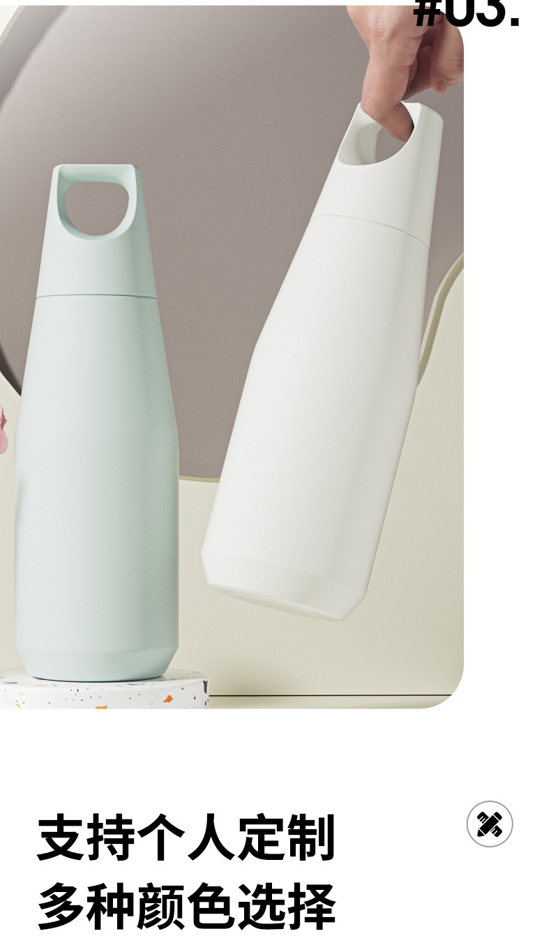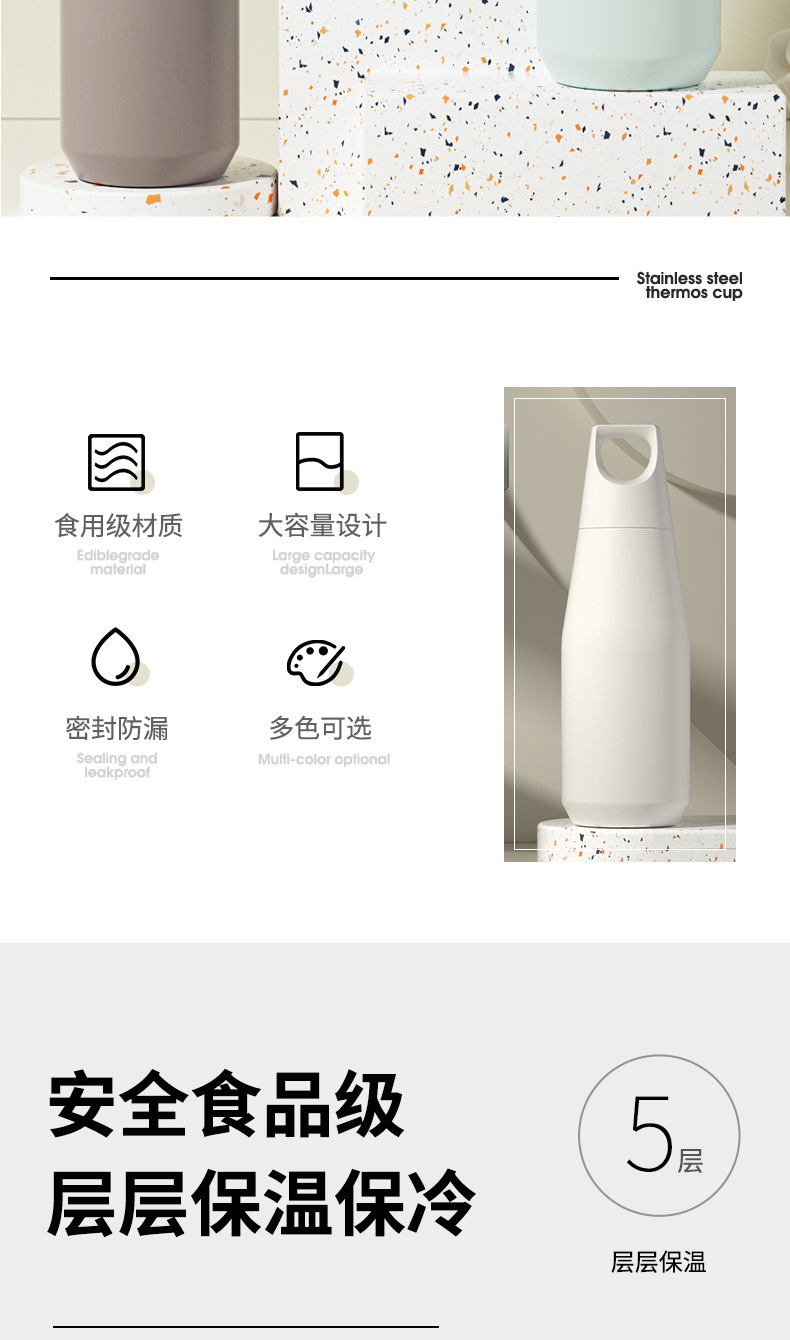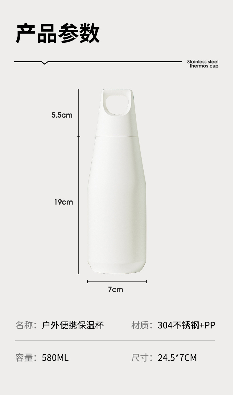 304 스테인리스 스틸 손잡이 달린 원추형 병 진공 콜라컵 야외 휴대용 보온 등산 스포츠 물병 심플