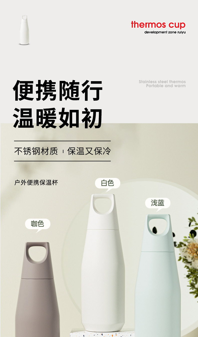 304 스테인리스 스틸 손잡이 달린 원추형 병 진공 콜라컵 야외 휴대용 보온 등산 스포츠 물병 심플스토어 가기