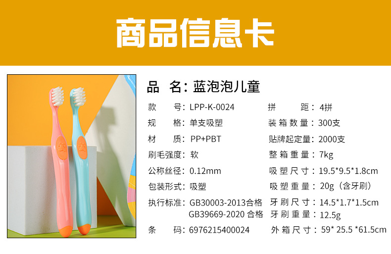 Lan Bubble 어린이 칫솔 부드러운 강모 아기 칫솔 단일 팩 작은 머리 초극세 부드러운 강모 0.12mm 강모스토어 가기