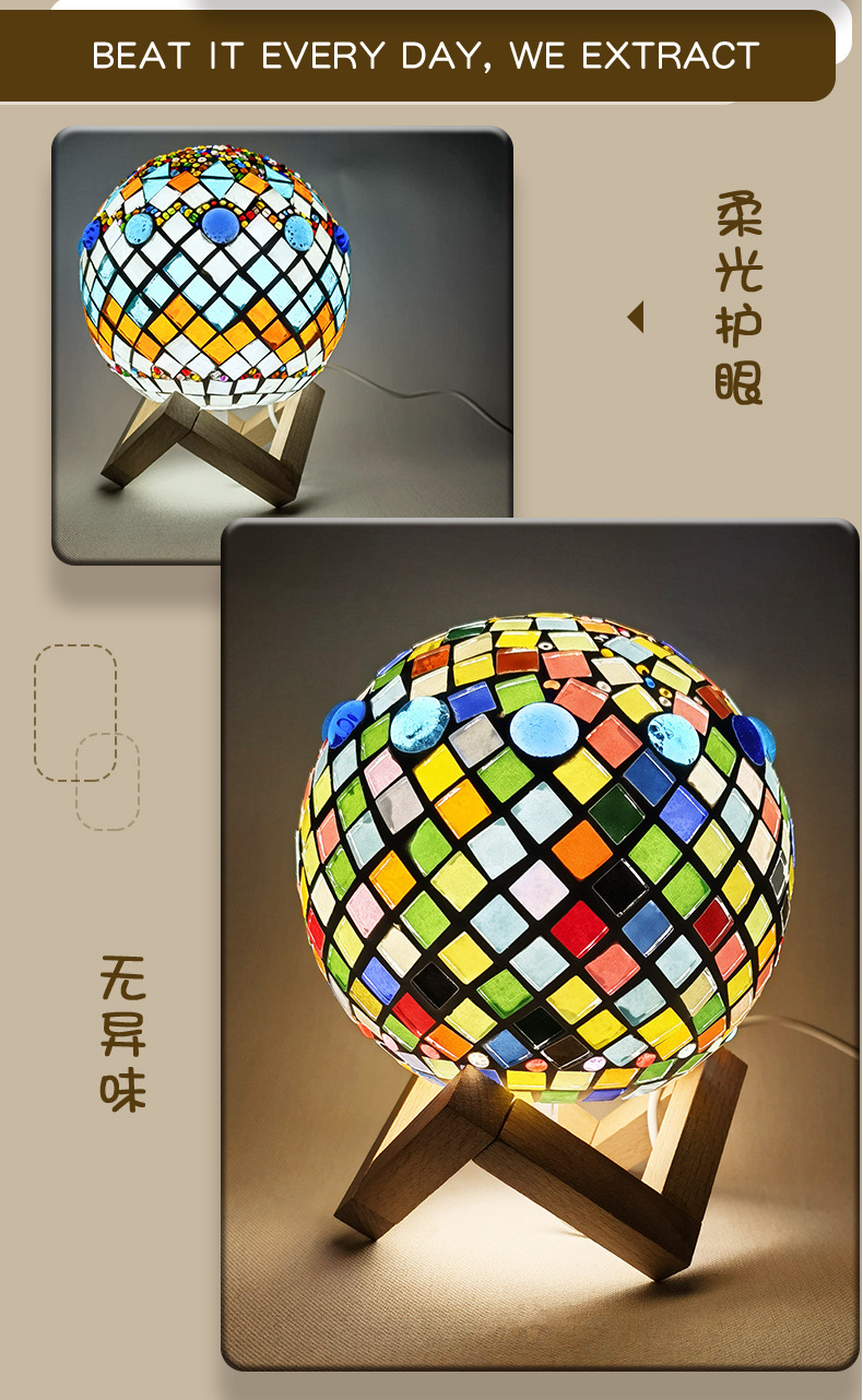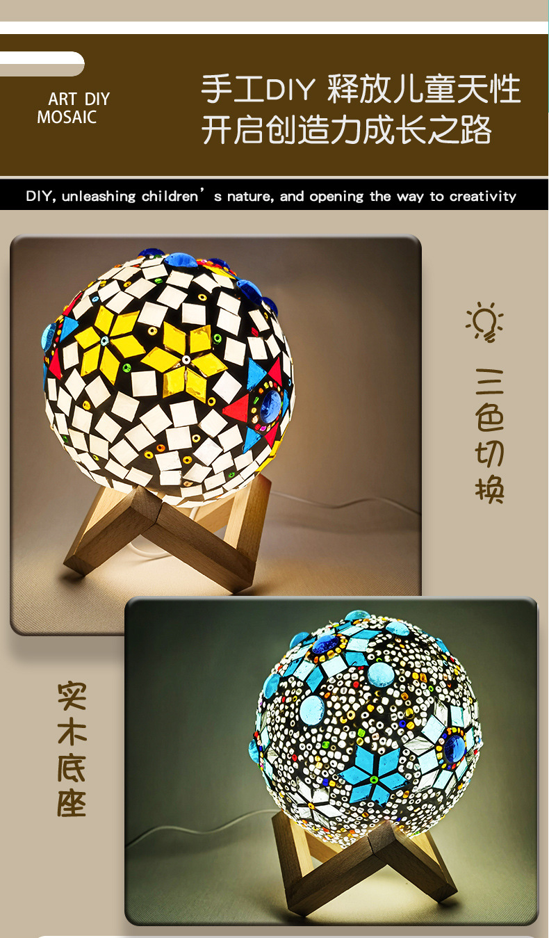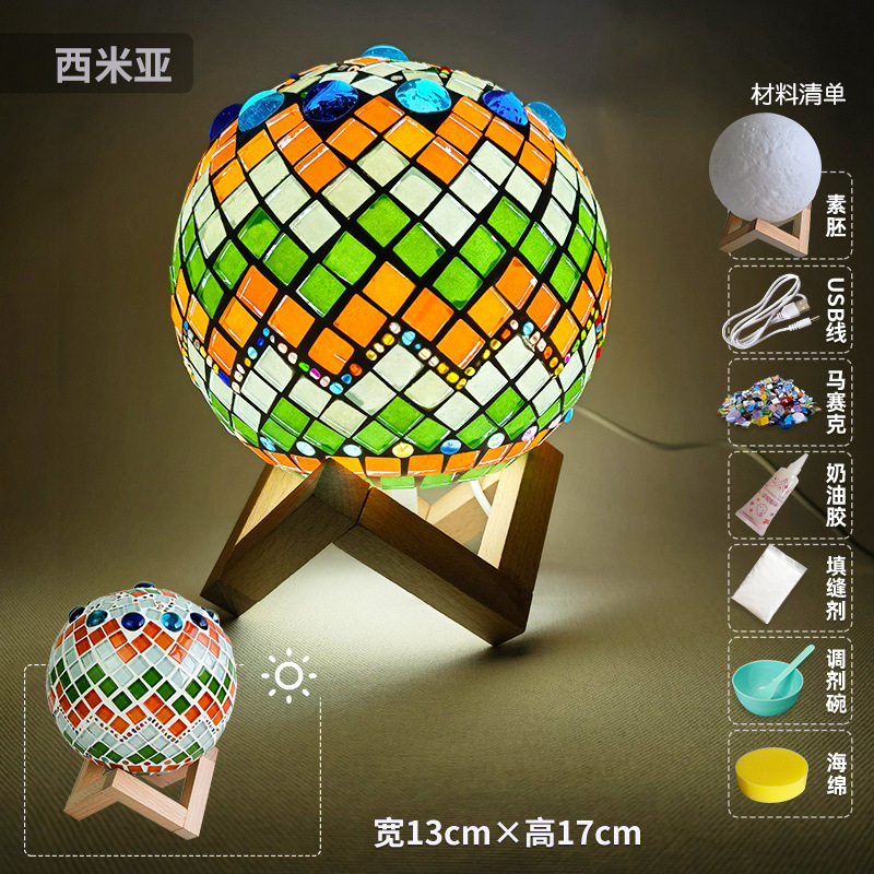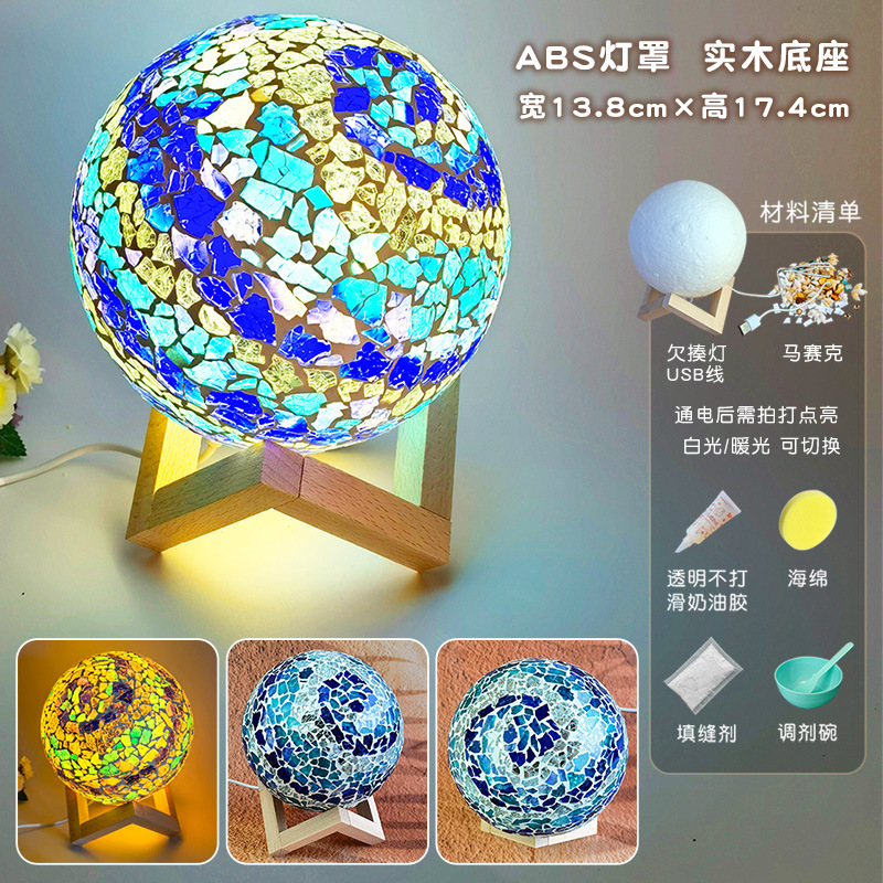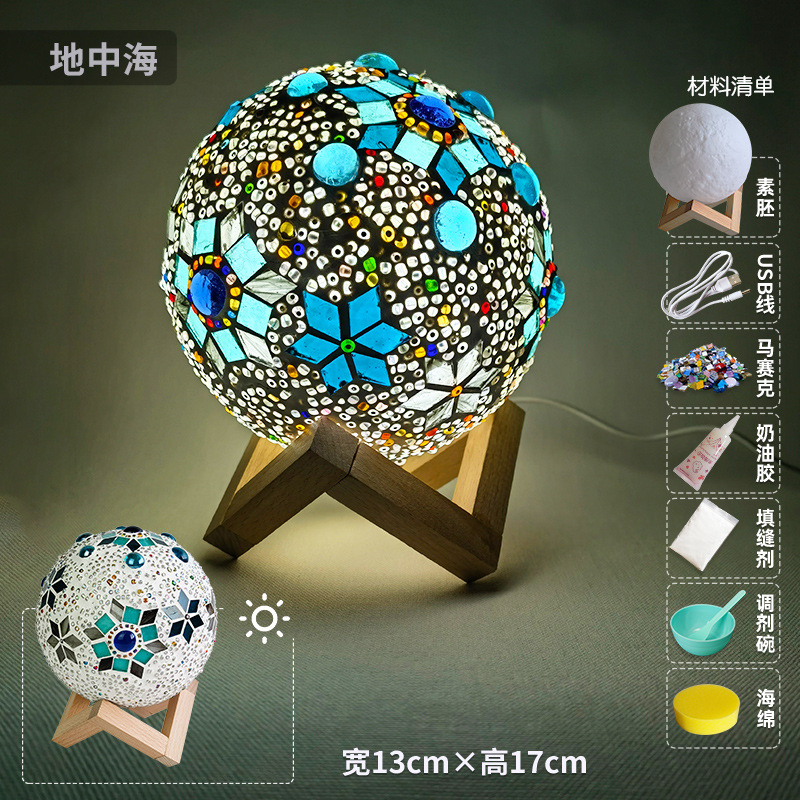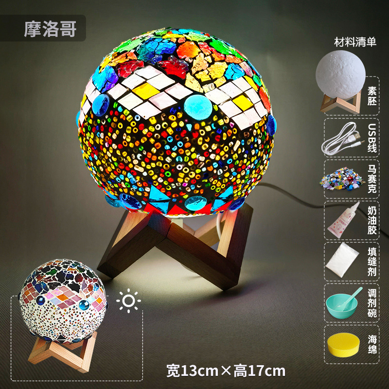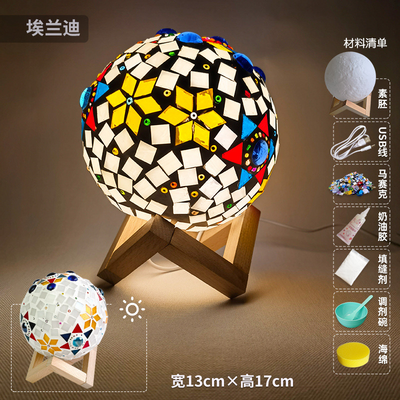 모자이크 어머니의 날 장난감 재료 야간 조명 터치 DIY 수제 테이블 램프 팩 램프 달 수제