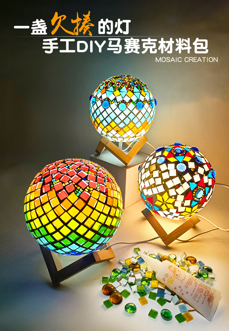 모자이크 어머니의 날 장난감 재료 야간 조명 터치 DIY 수제 테이블 램프 팩 램프 달 수제스토어 가기