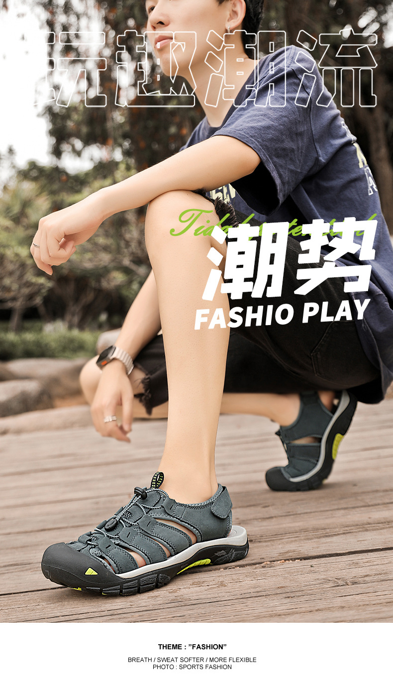 1층 천연 가죽 남성 샌들 크로스보더 대형 남성 샌들 여름 대외 무역 대형 남성 야외 비치 샌들스토어 가기