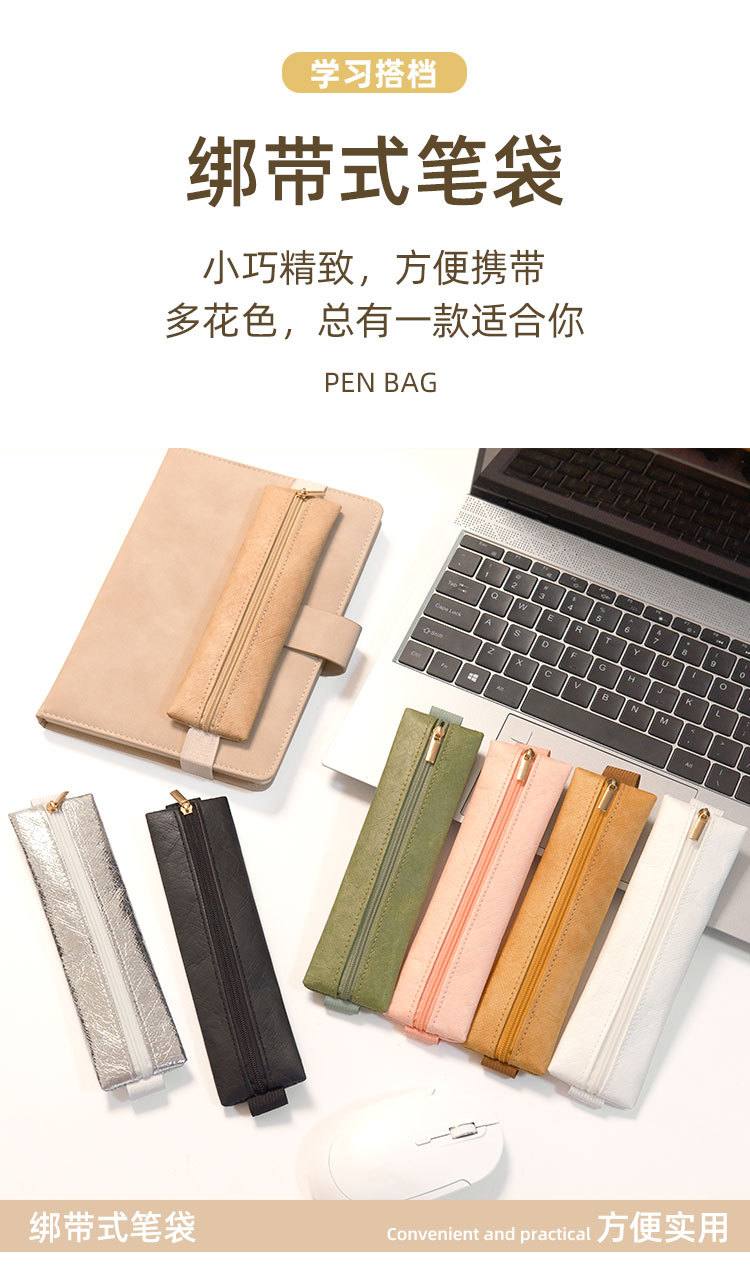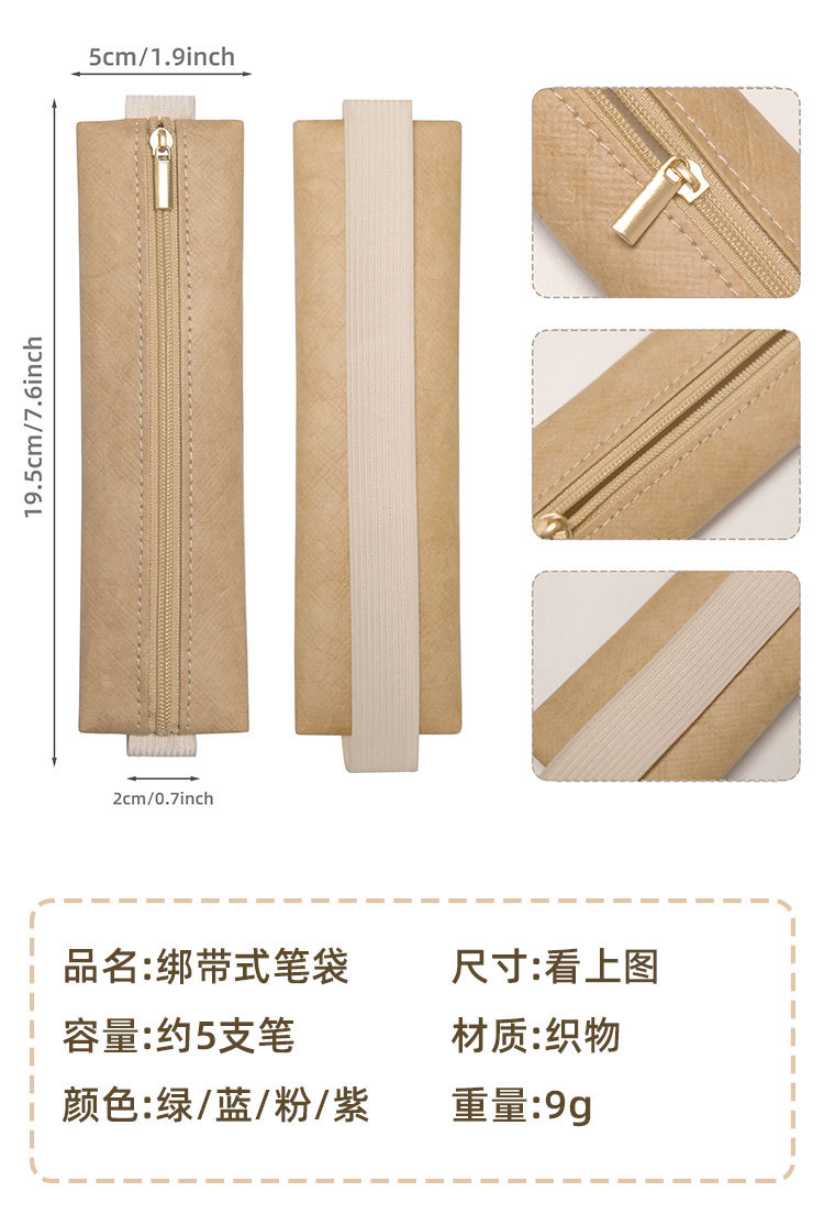 국경 간 듀폰 종이 휴대용 탄성 버클 펜 가방 사무실 회의 노트북 펜 보관 지퍼 가방 쉬운 접근