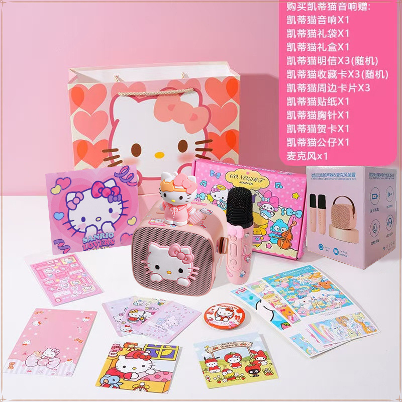 여자를위한 헬로 키티 블루투스 오디오 레코드 플레이어 KT 고양이 스피커 홈 마이크 생일스토어 가기