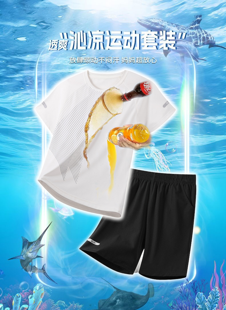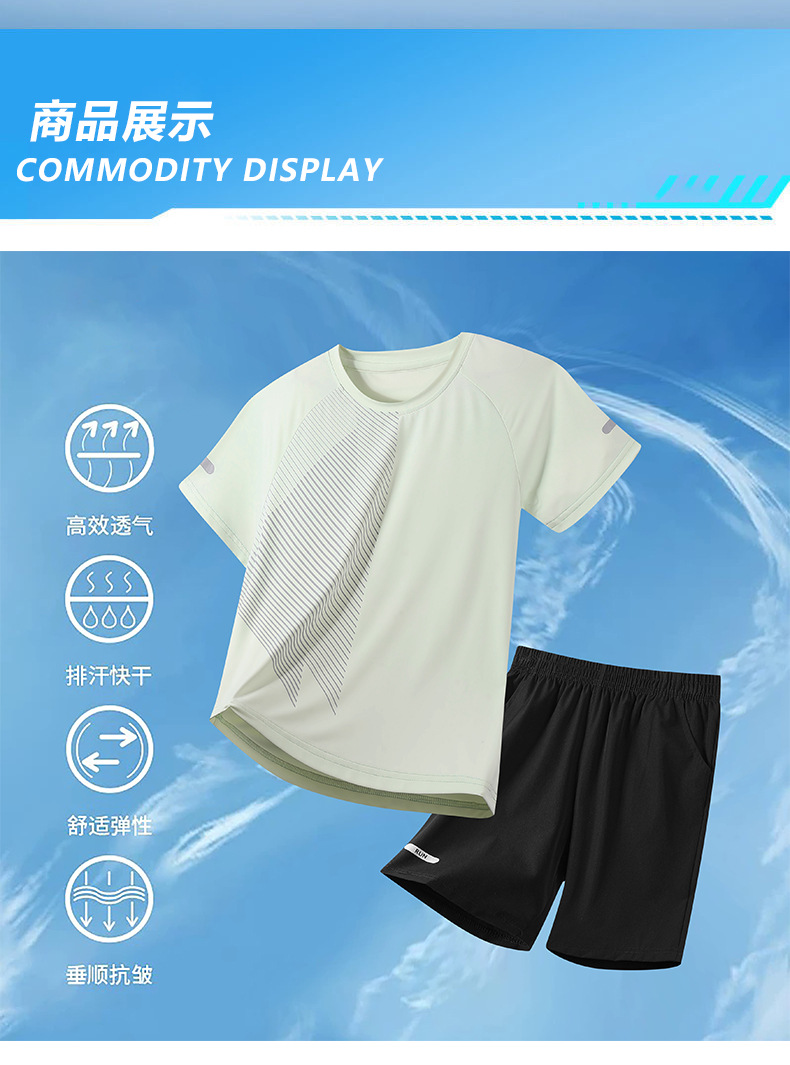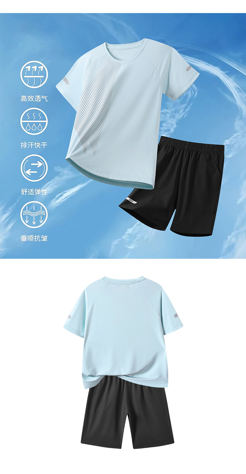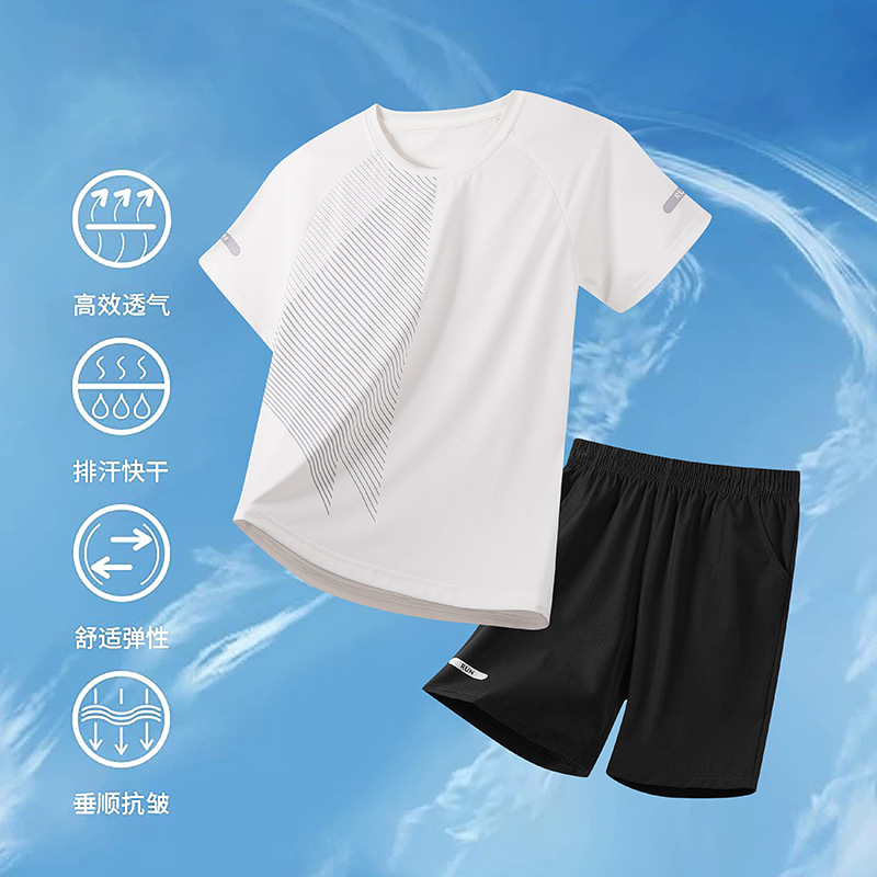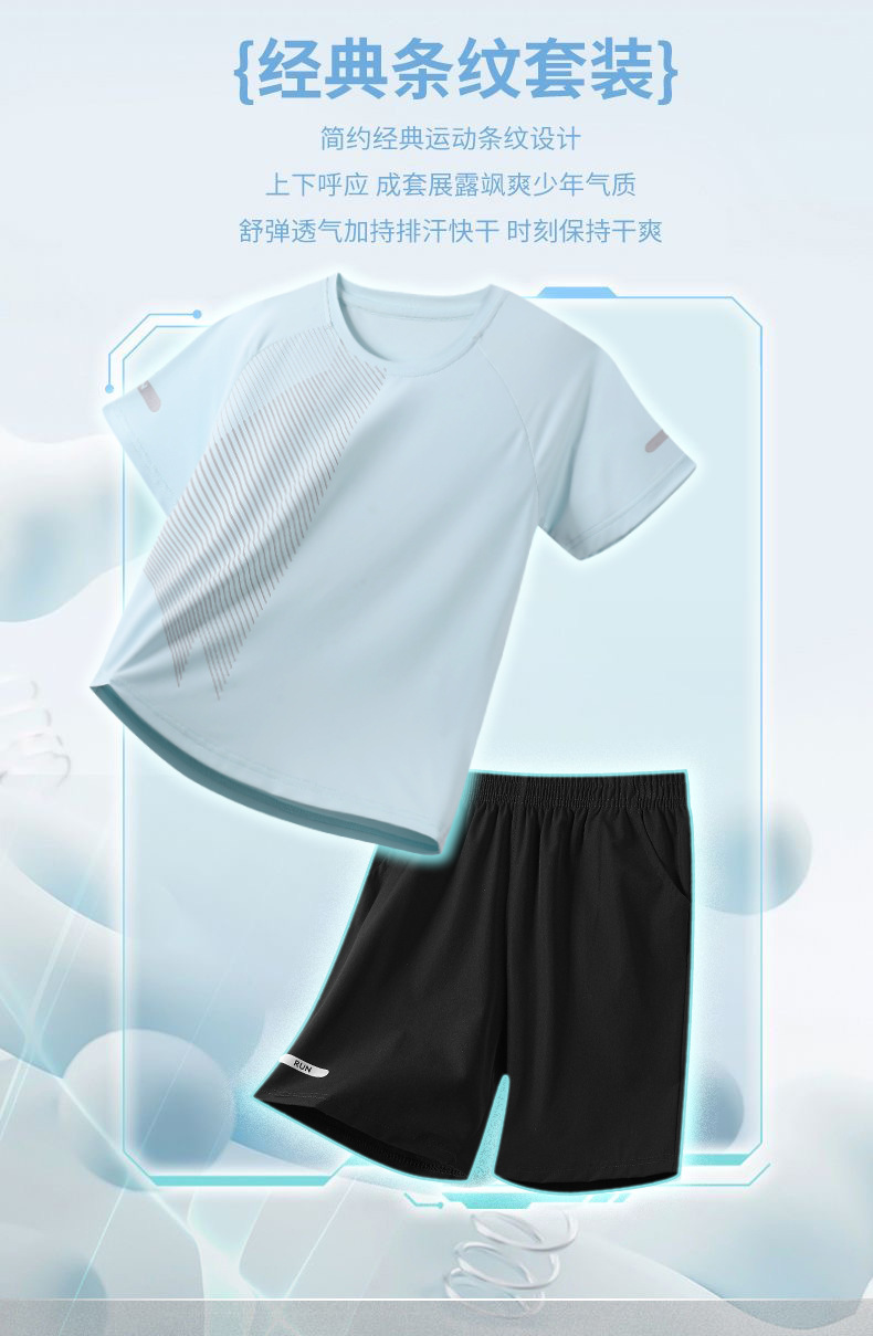 어린이 빠른 건조 세트 여름 아이스 실크 통기성 운동복 2 피스 세트 소년 소녀 안티 오일 쿨 스웨트 셔츠 및 반바지스토어 가기