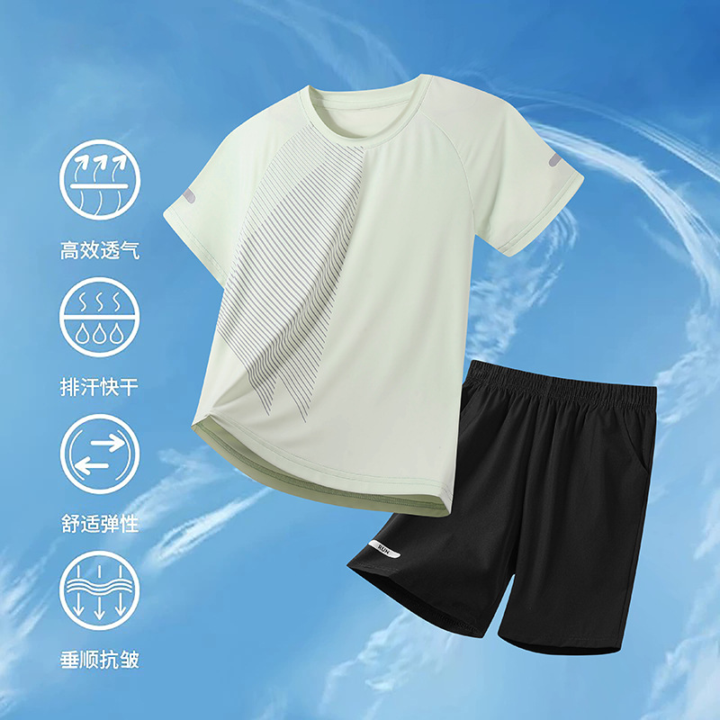 어린이 빠른 건조 세트 여름 아이스 실크 통기성 운동복 2 피스 세트 소년 소녀 안티 오일 쿨 스웨트 셔츠 및 반바지
