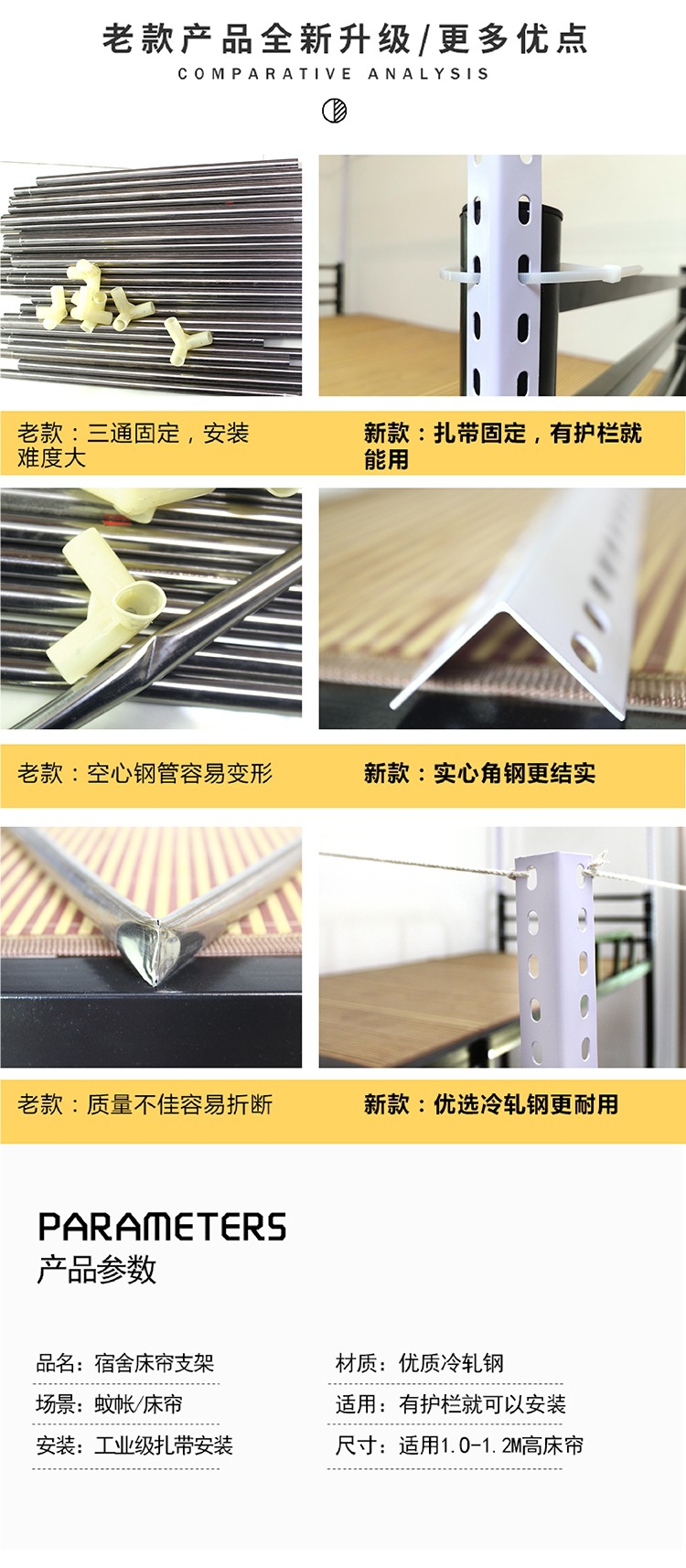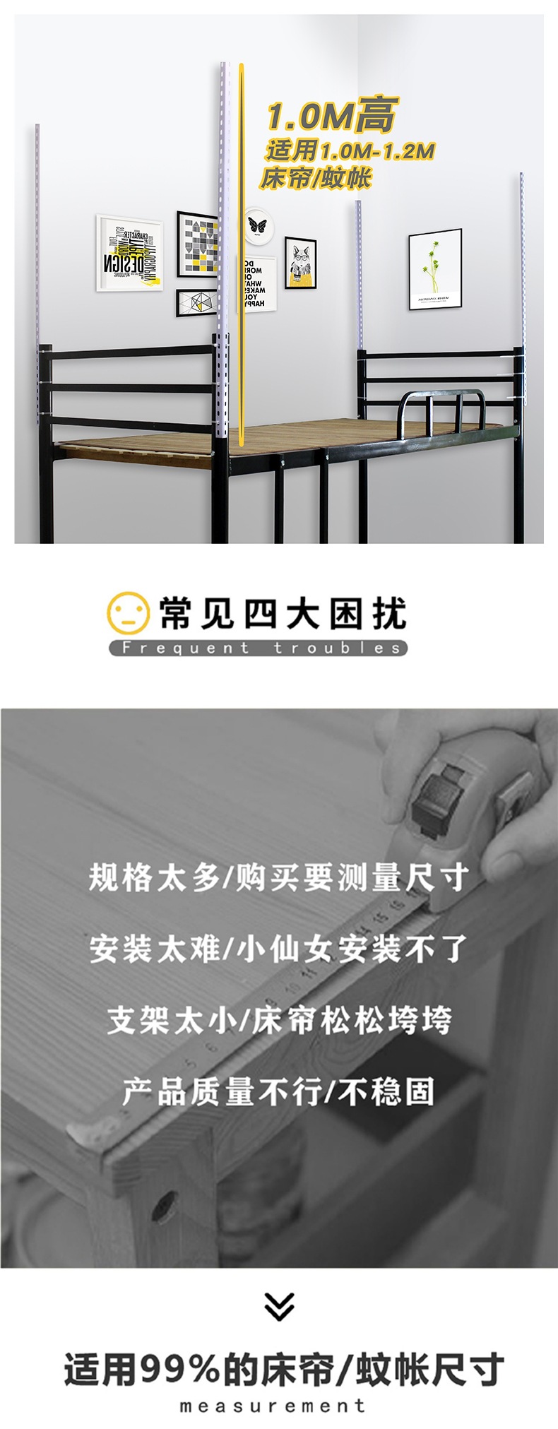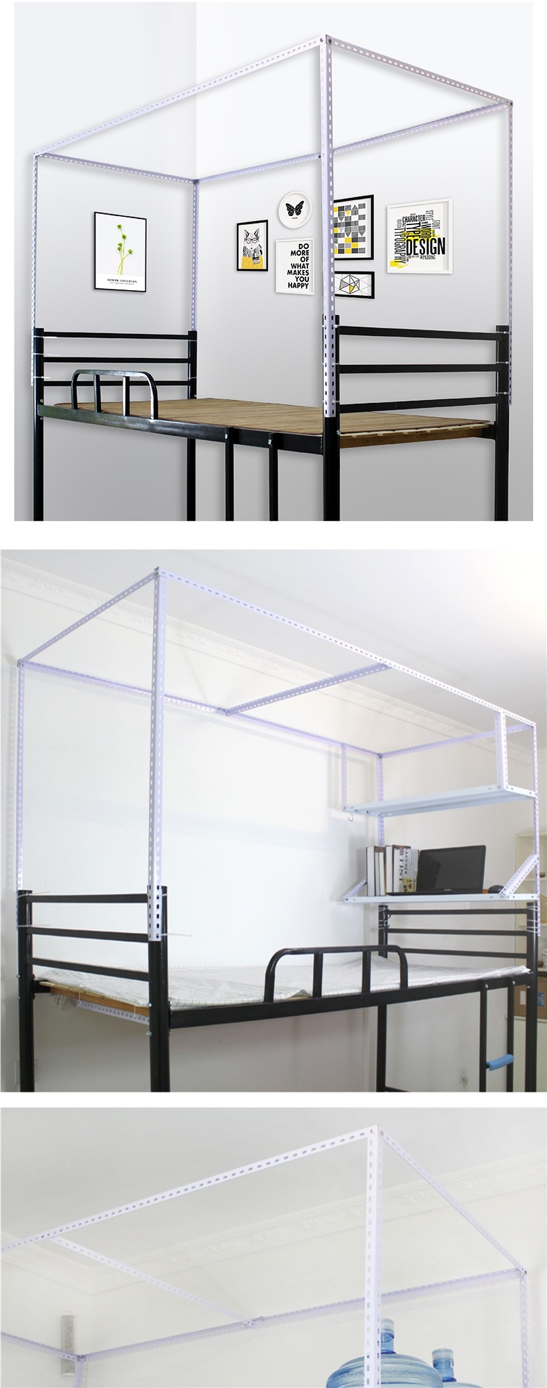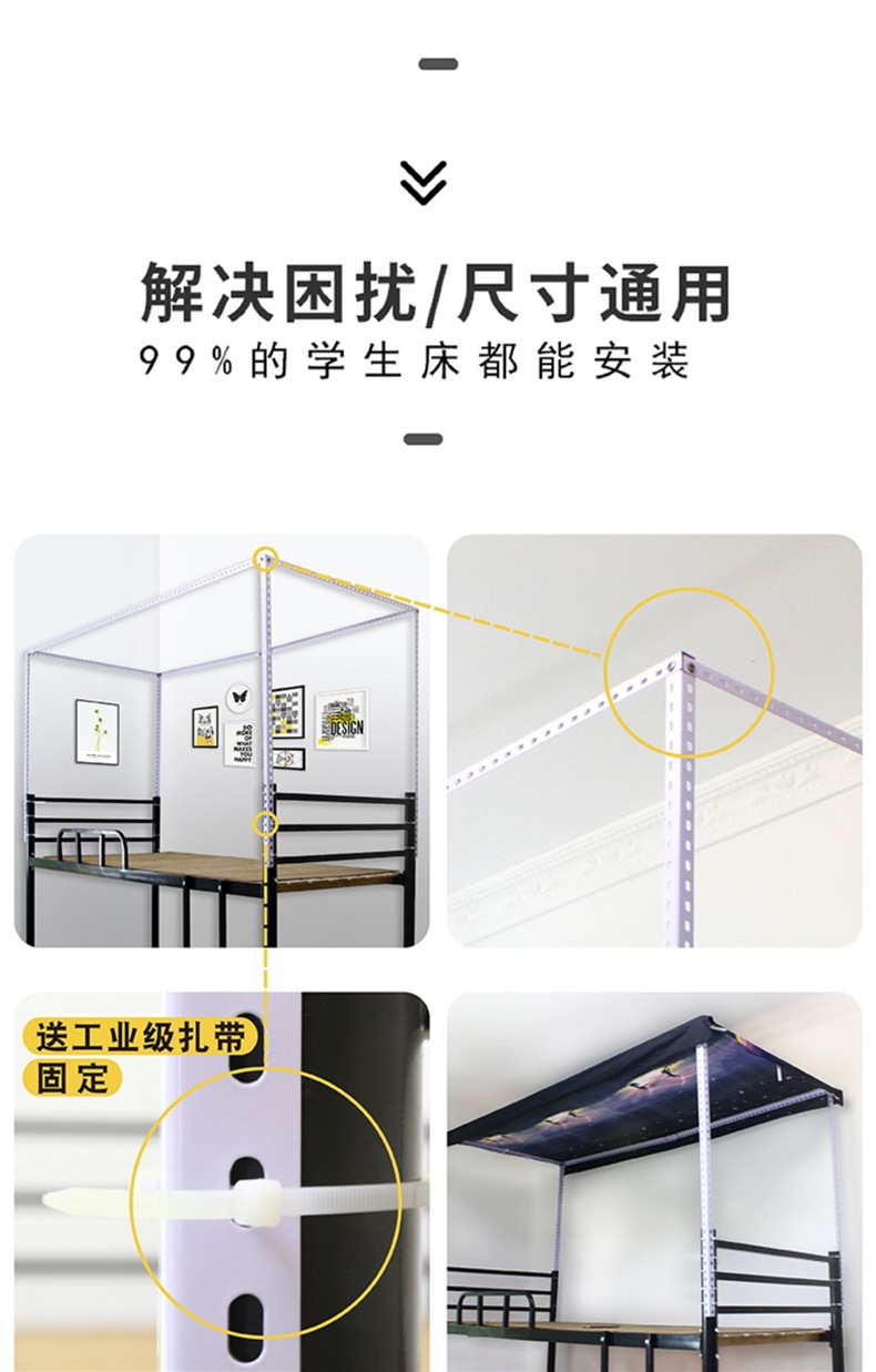 대학생 기숙사 개폐식 침대 커튼 브래킷 조정 가능한 모기장 침대 프레임 막대 침실 상단 및 하단 레벨 차광 천