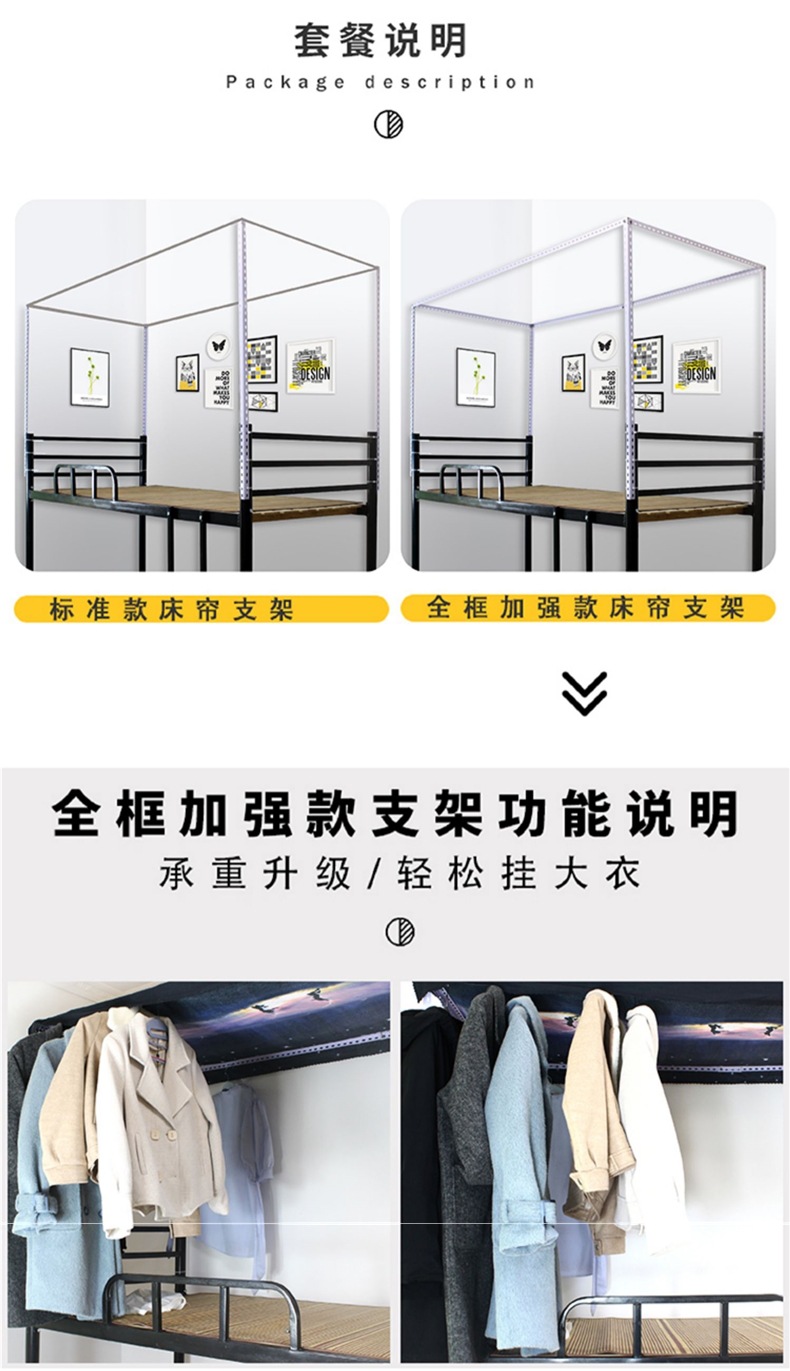 대학생 기숙사 개폐식 침대 커튼 브래킷 조정 가능한 모기장 침대 프레임 막대 침실 상단 및 하단 레벨 차광 천스토어 가기
