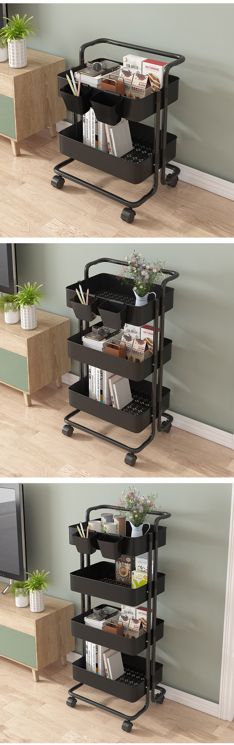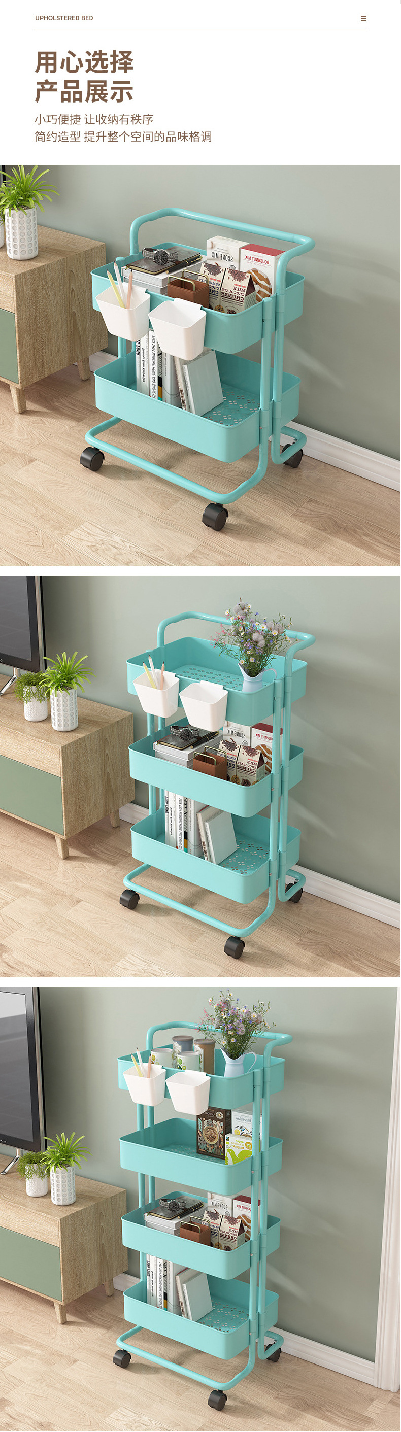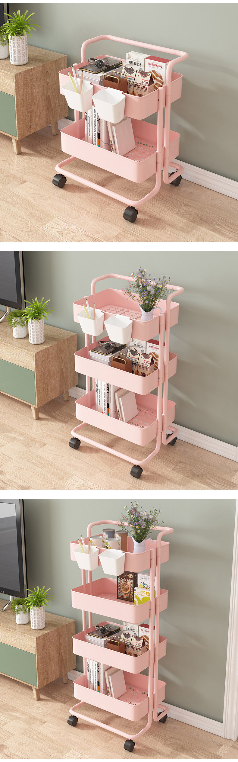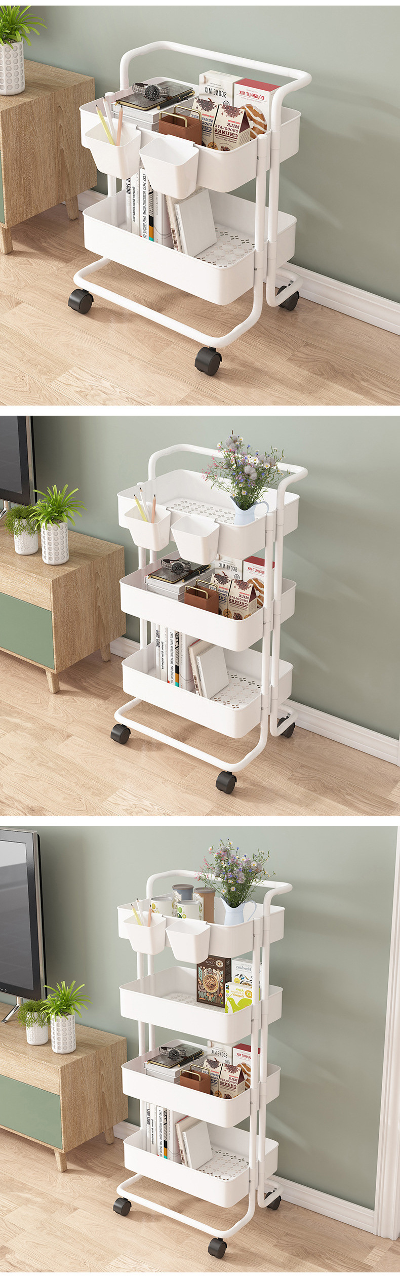 맞춤형 이동식 보관 랙 주방 보관 랙 바퀴가 달린 거실 생산 및 가공 이동식 트롤리 보관 랙