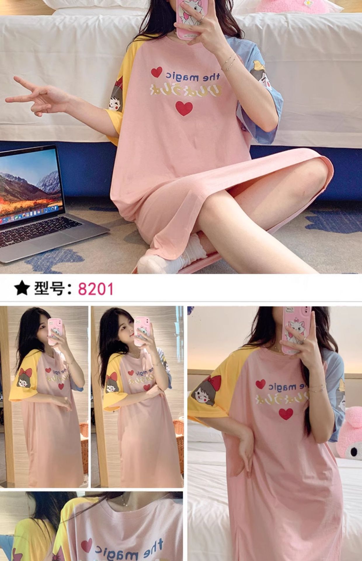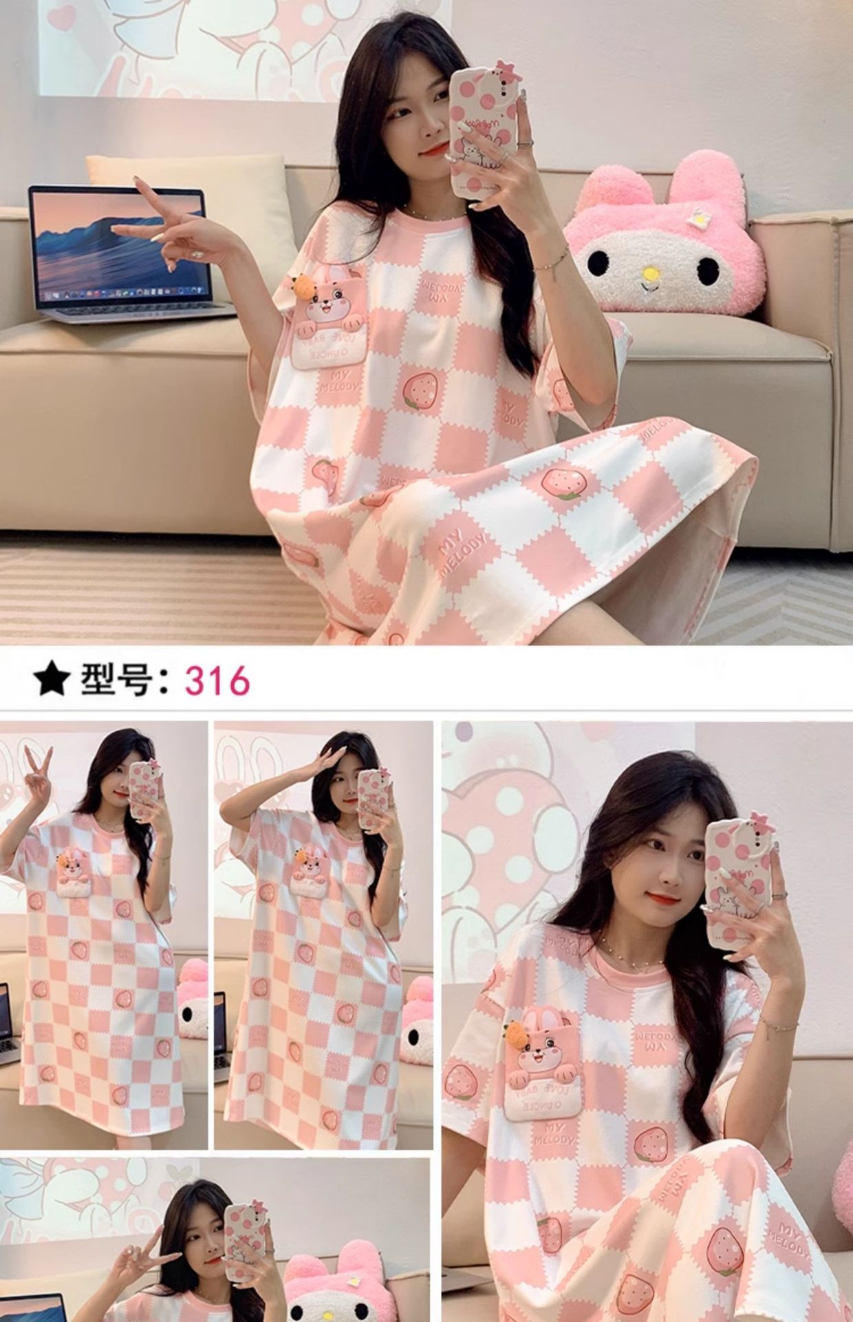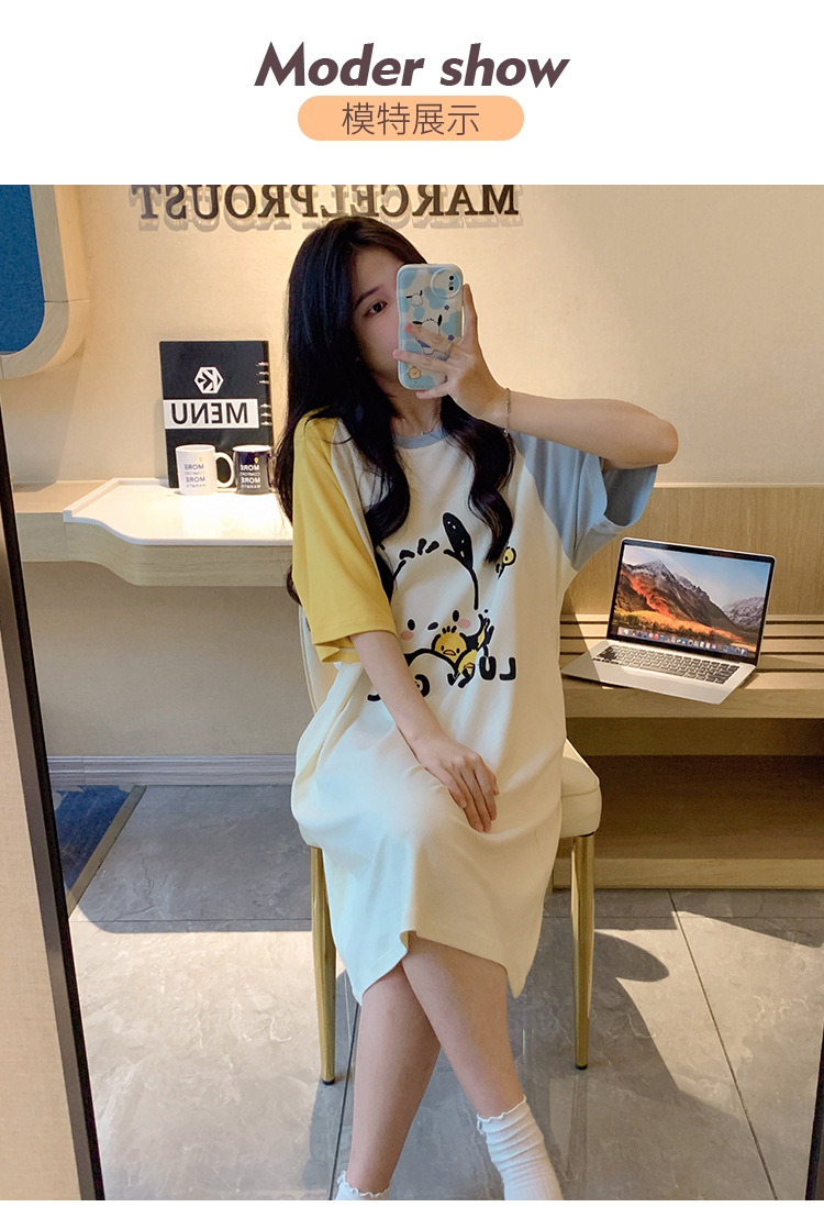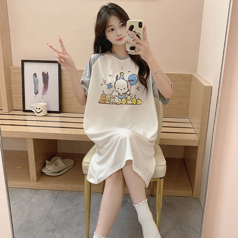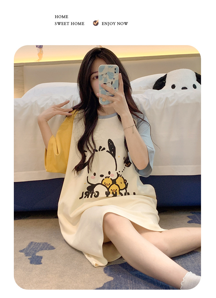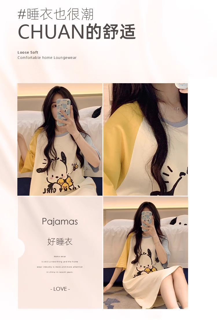 여자를위한 여름 여인면 반팔 귀여운 만화 그물 빨간 잠옷 여성의 여름 느슨한 여성의 봄과 가을 홈 옷스토어 가기