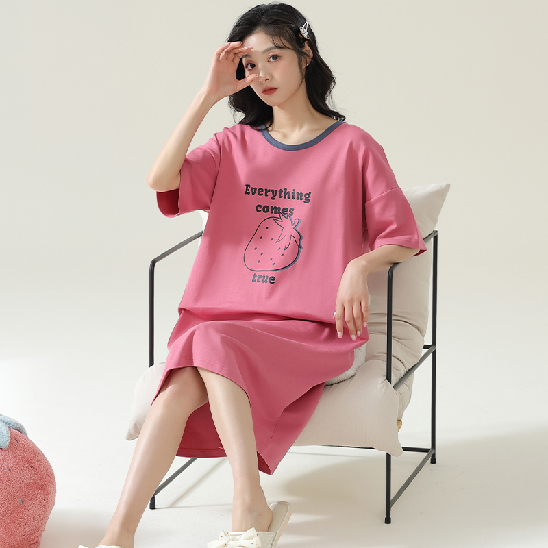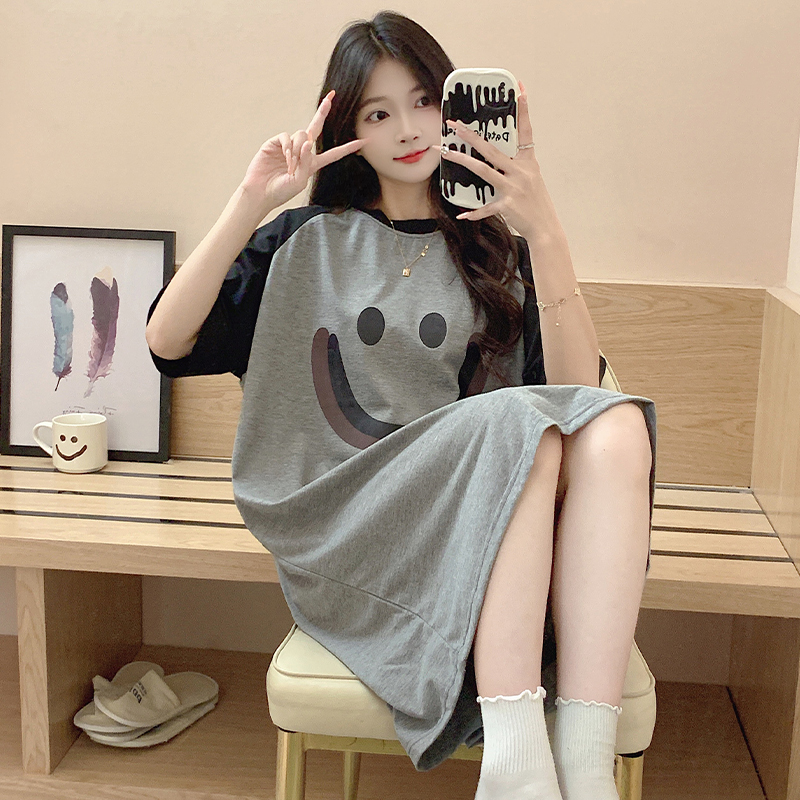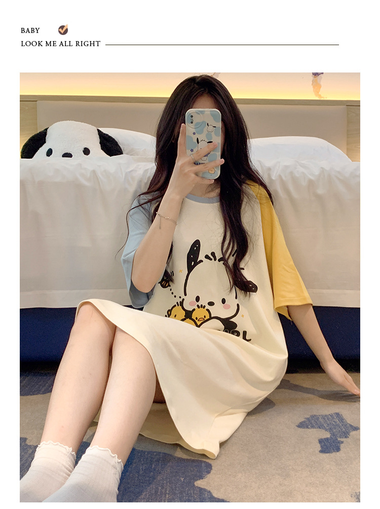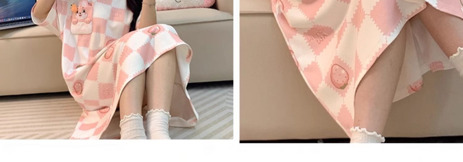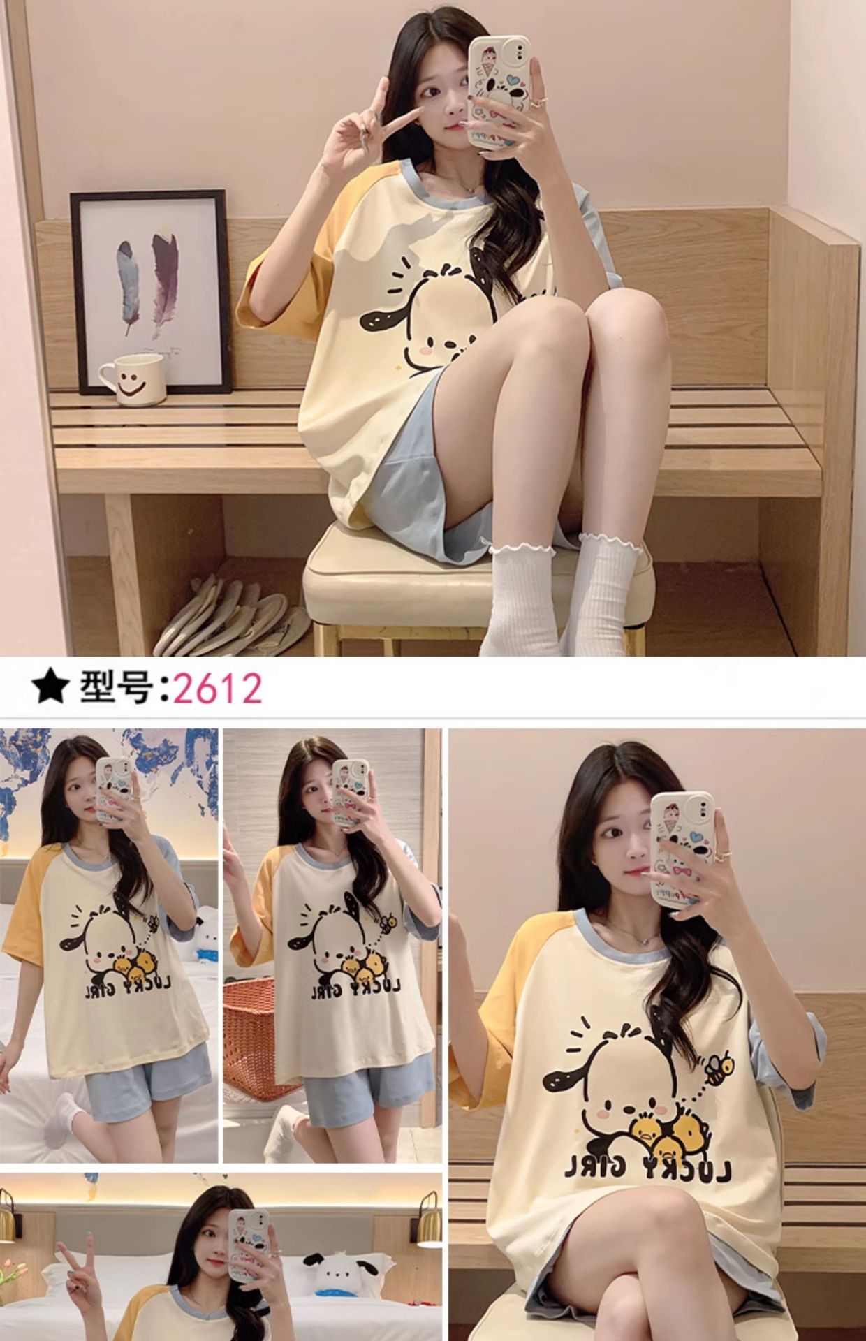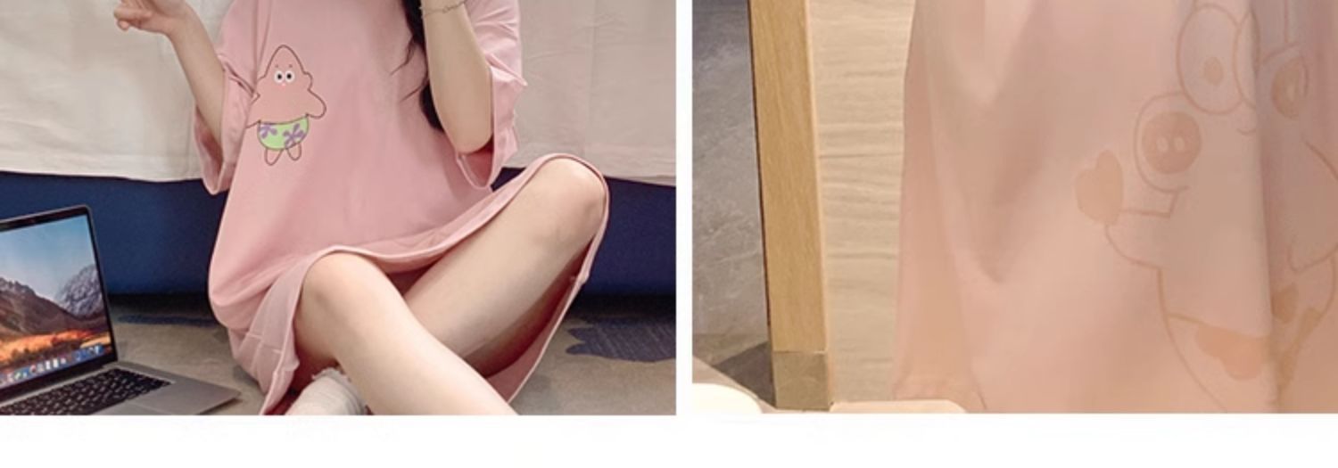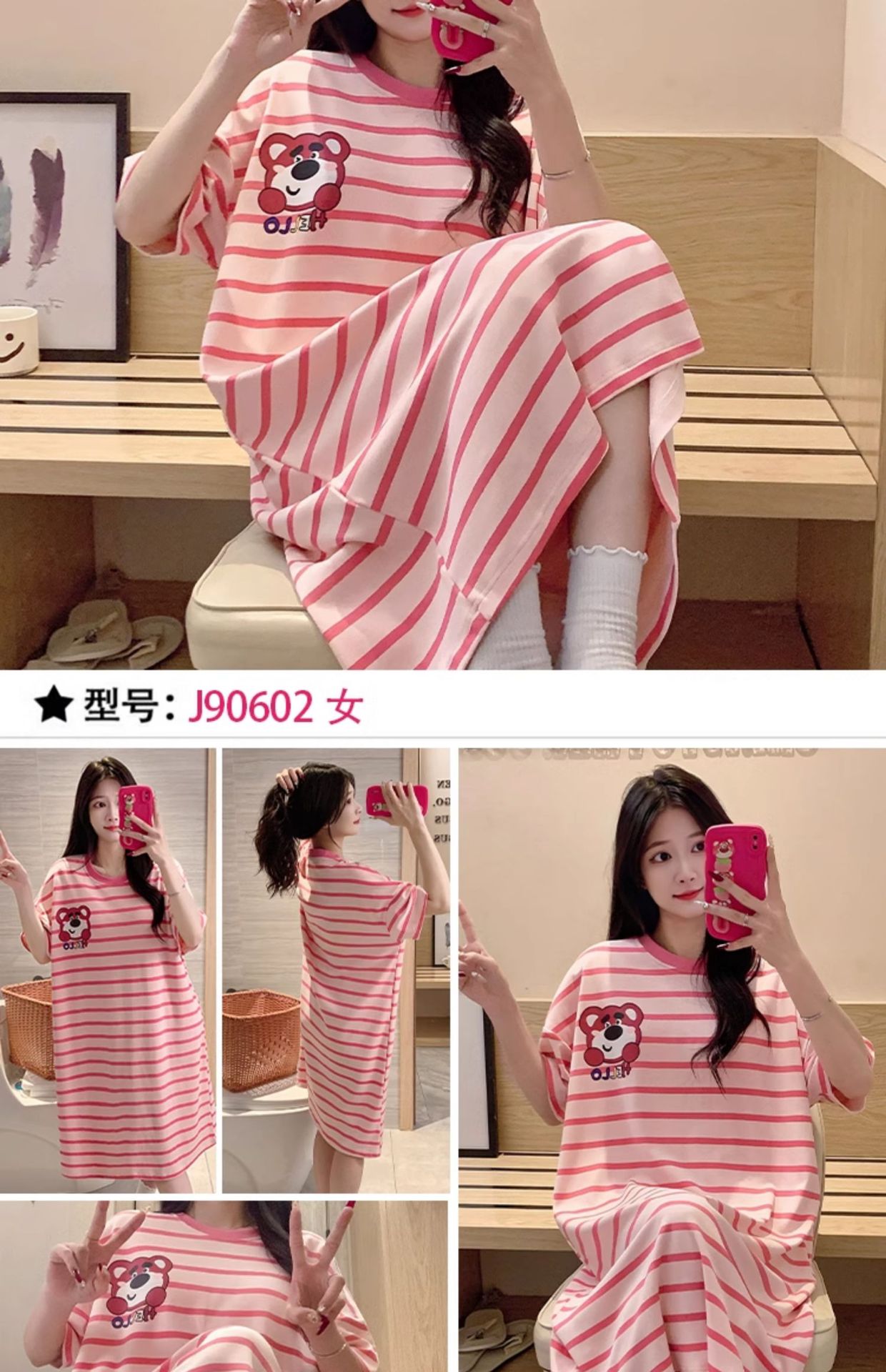 여자를위한 여름 여인면 반팔 귀여운 만화 그물 빨간 잠옷 여성의 여름 느슨한 여성의 봄과 가을 홈 옷스토어 가기