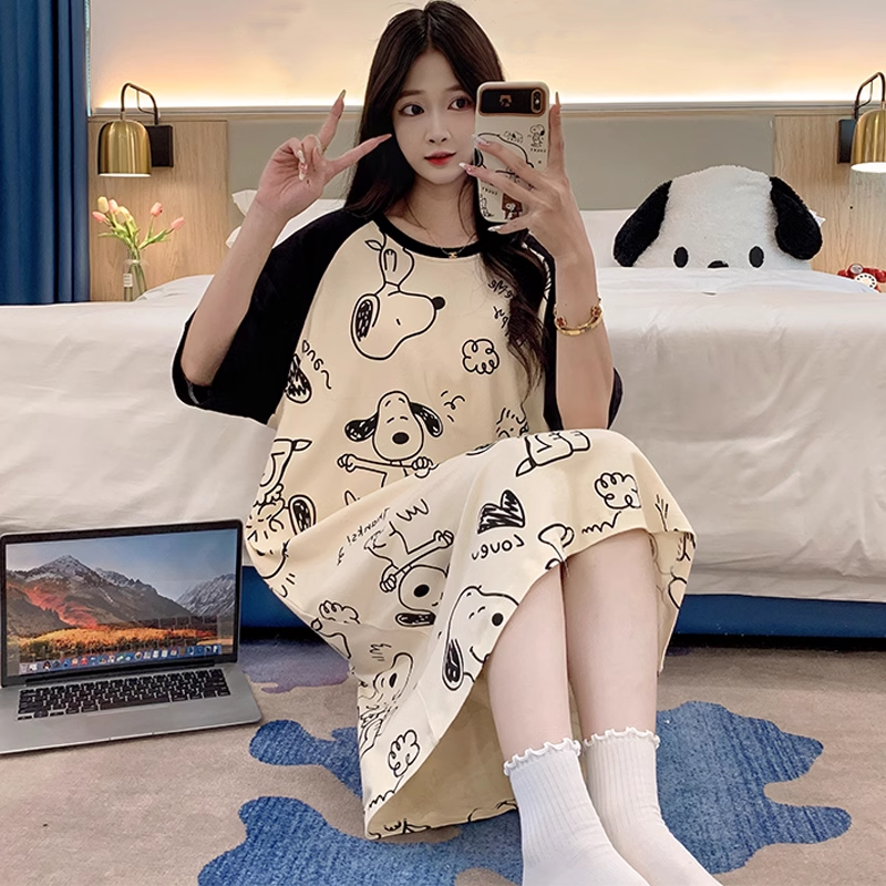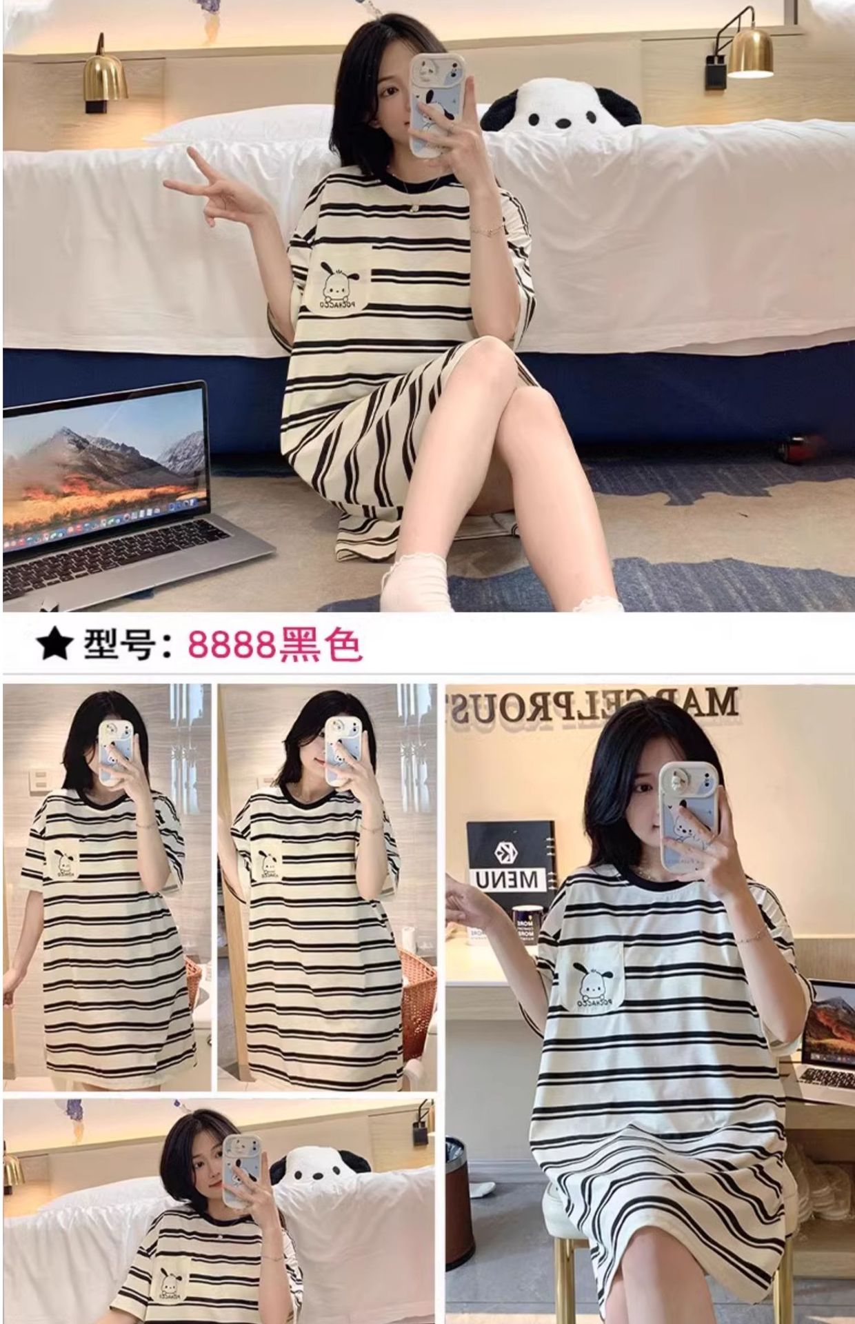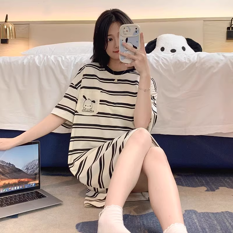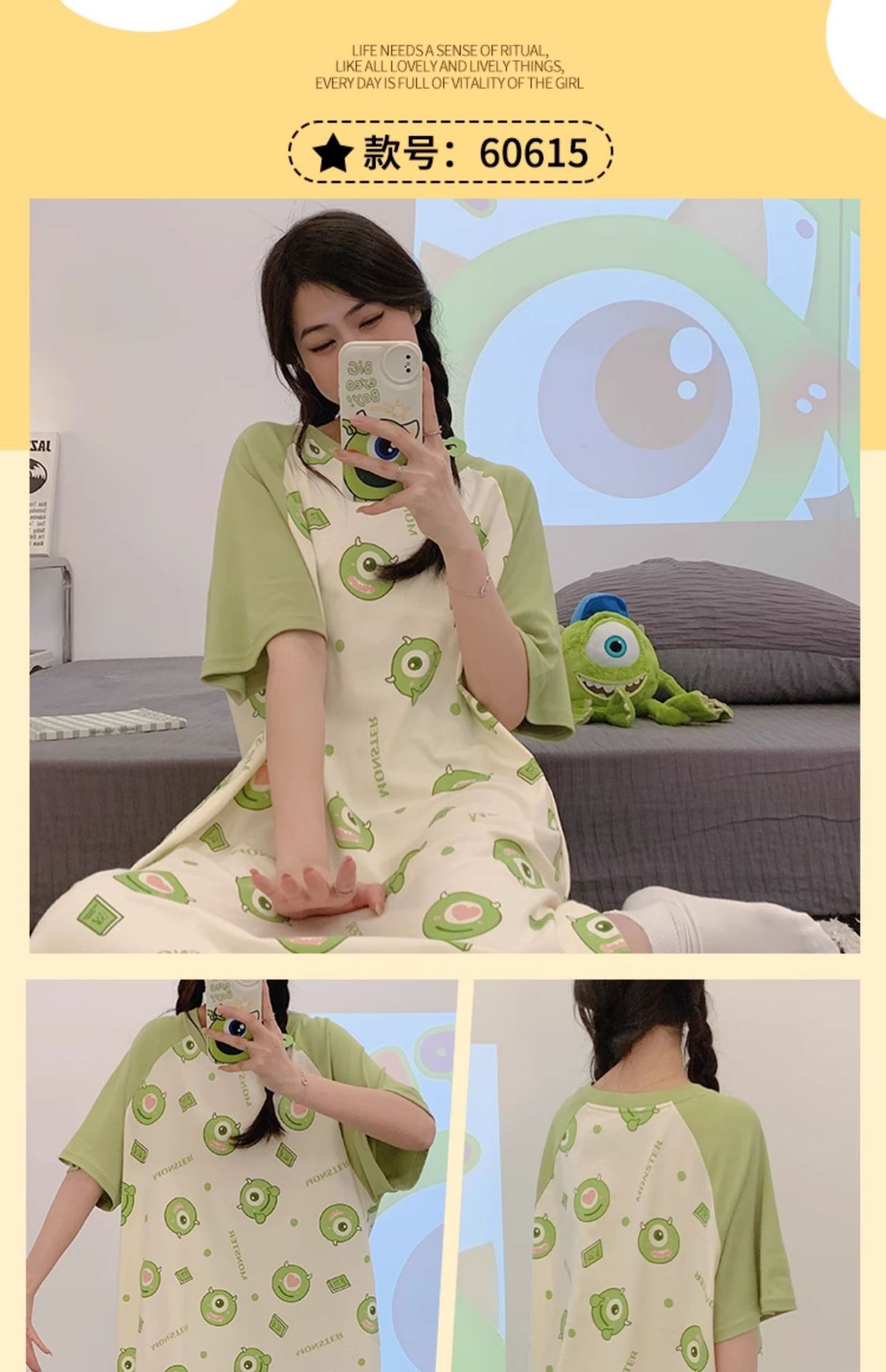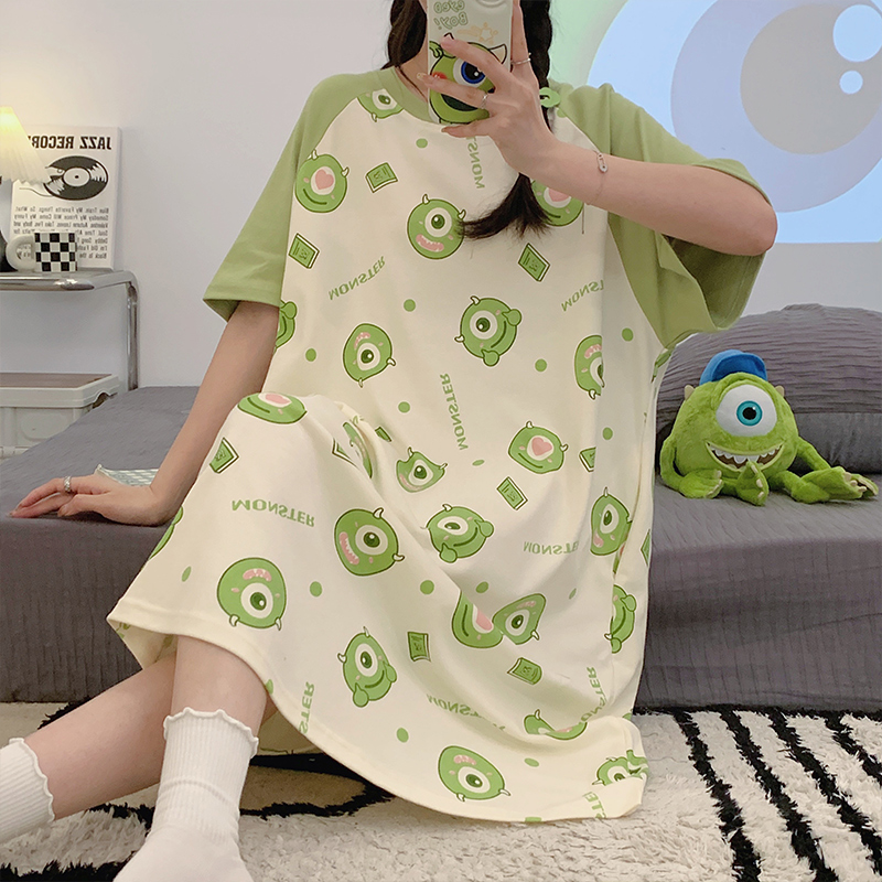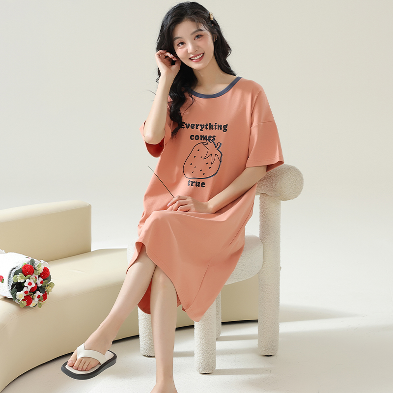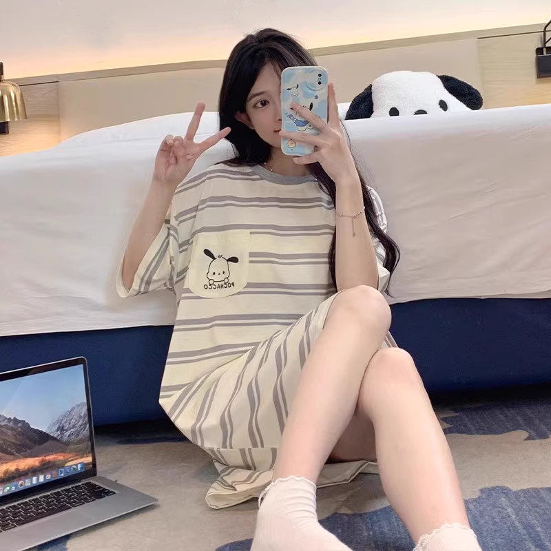 여자를위한 여름 여인면 반팔 귀여운 만화 그물 빨간 잠옷 여성의 여름 느슨한 여성의 봄과 가을 홈 옷스토어 가기