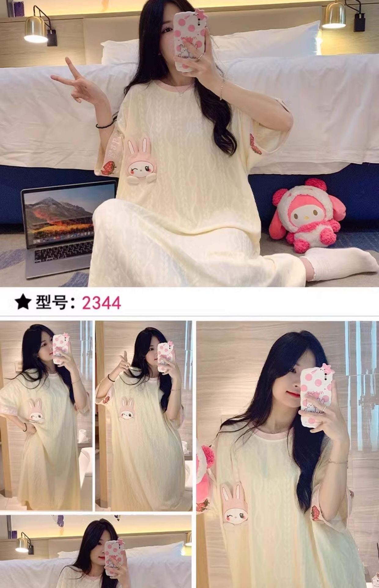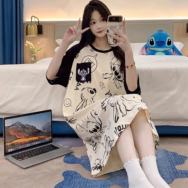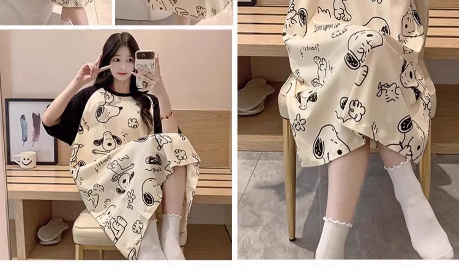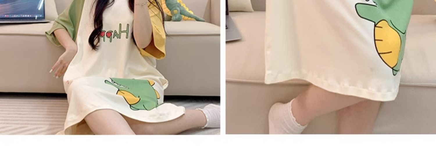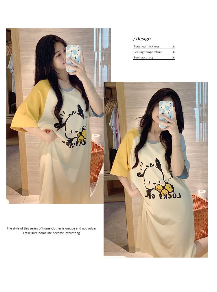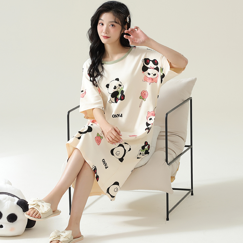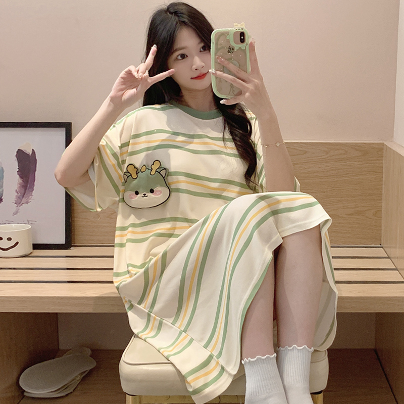 여자를위한 여름 여인면 반팔 귀여운 만화 그물 빨간 잠옷 여성의 여름 느슨한 여성의 봄과 가을 홈 옷스토어 가기