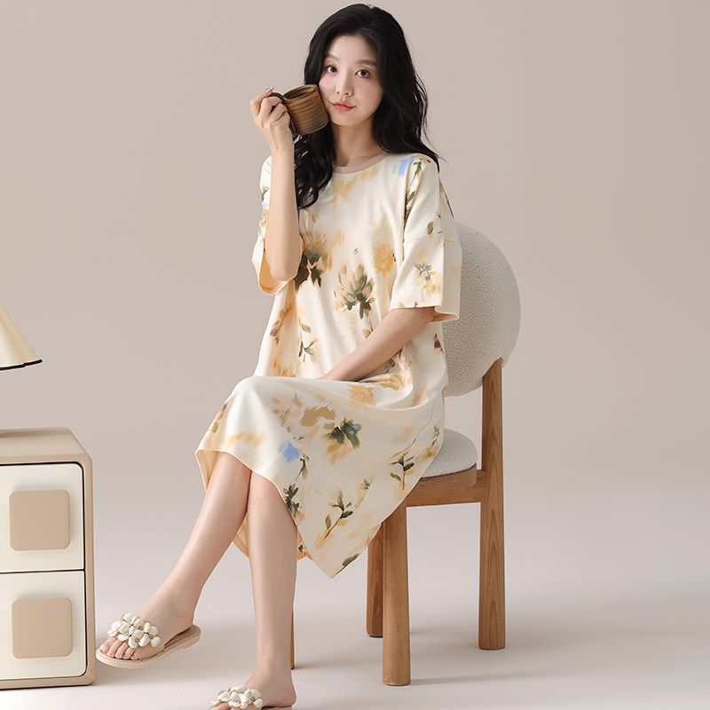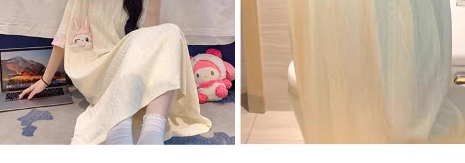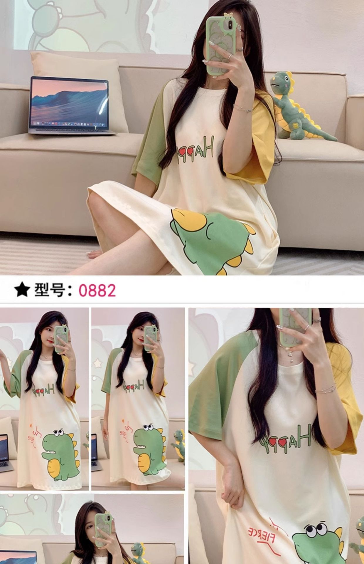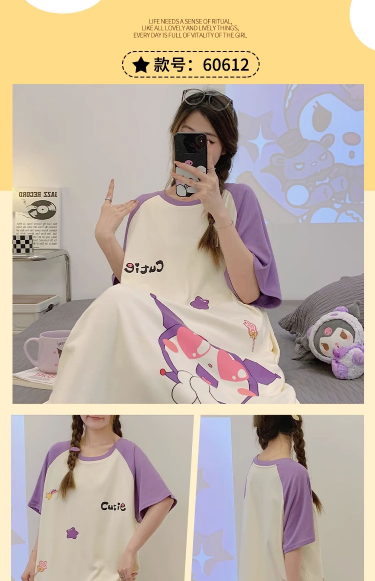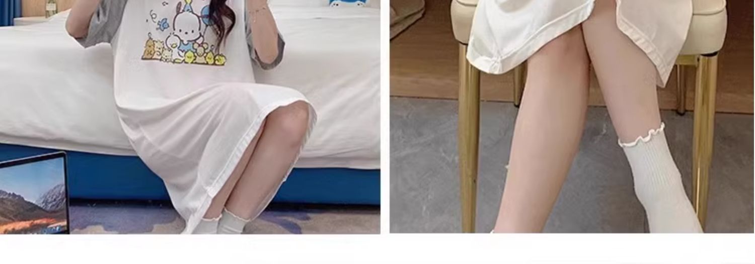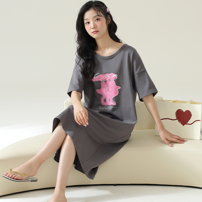 여자를위한 여름 여인면 반팔 귀여운 만화 그물 빨간 잠옷 여성의 여름 느슨한 여성의 봄과 가을 홈 옷스토어 가기