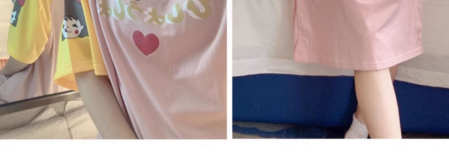 여자를위한 여름 여인면 반팔 귀여운 만화 그물 빨간 잠옷 여성의 여름 느슨한 여성의 봄과 가을 홈 옷