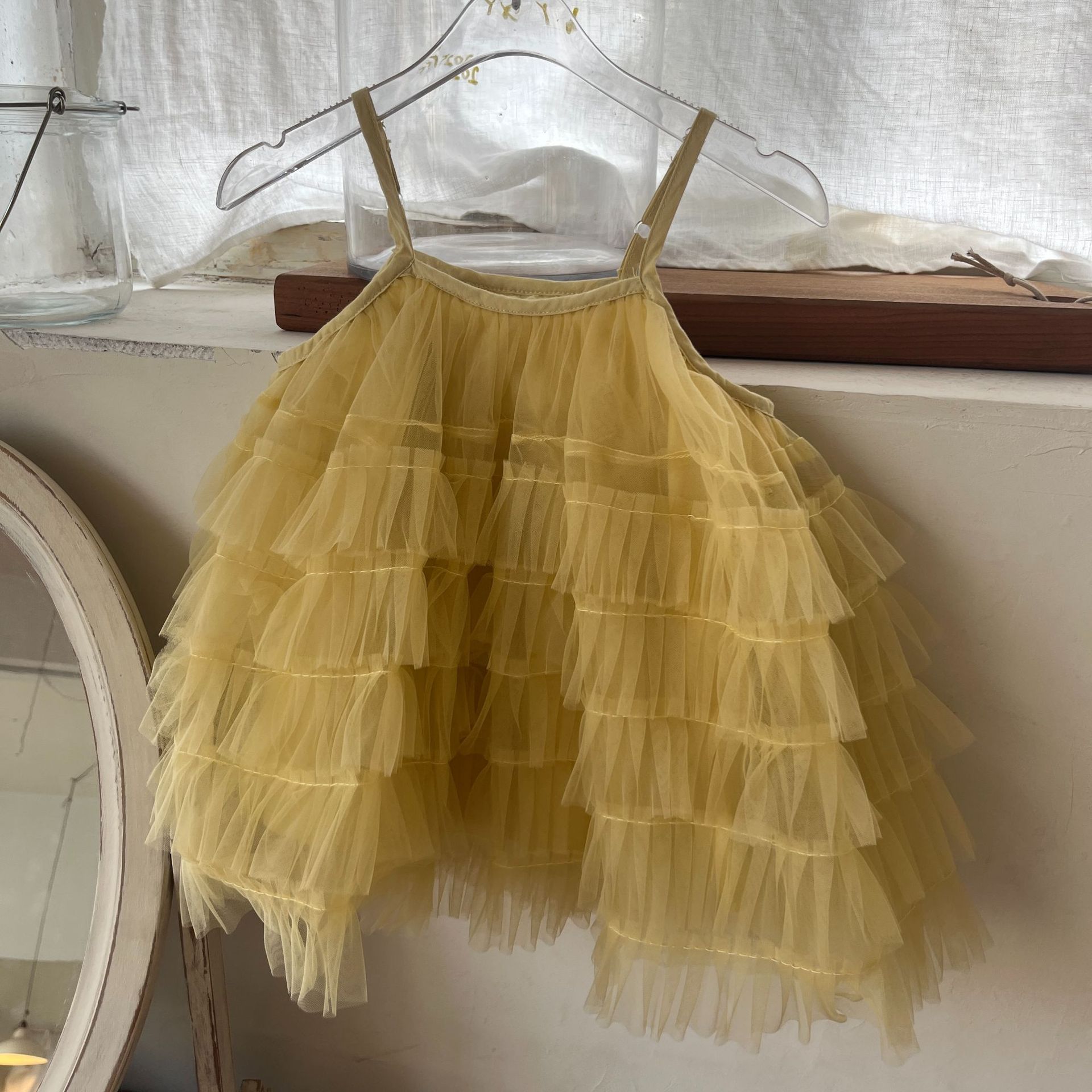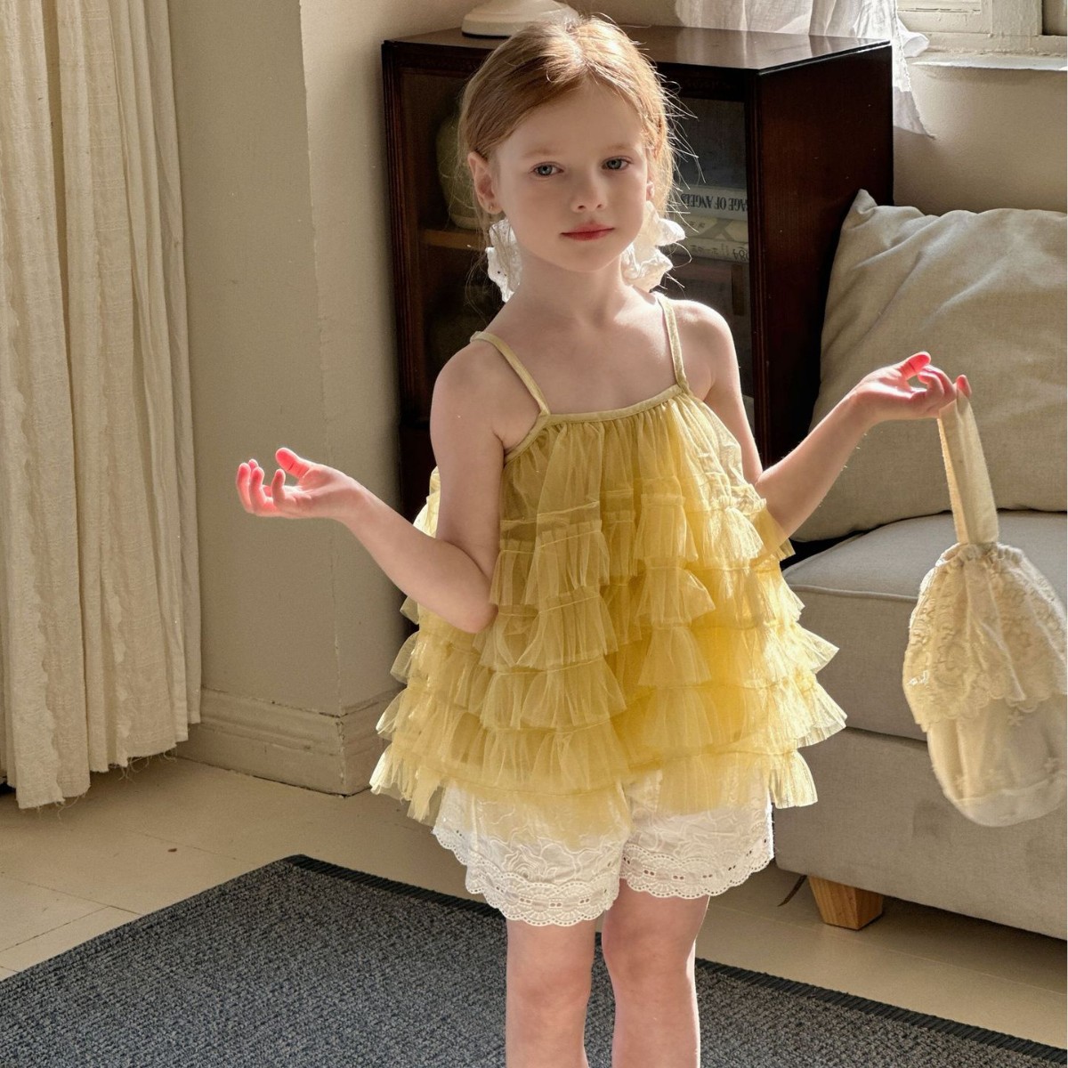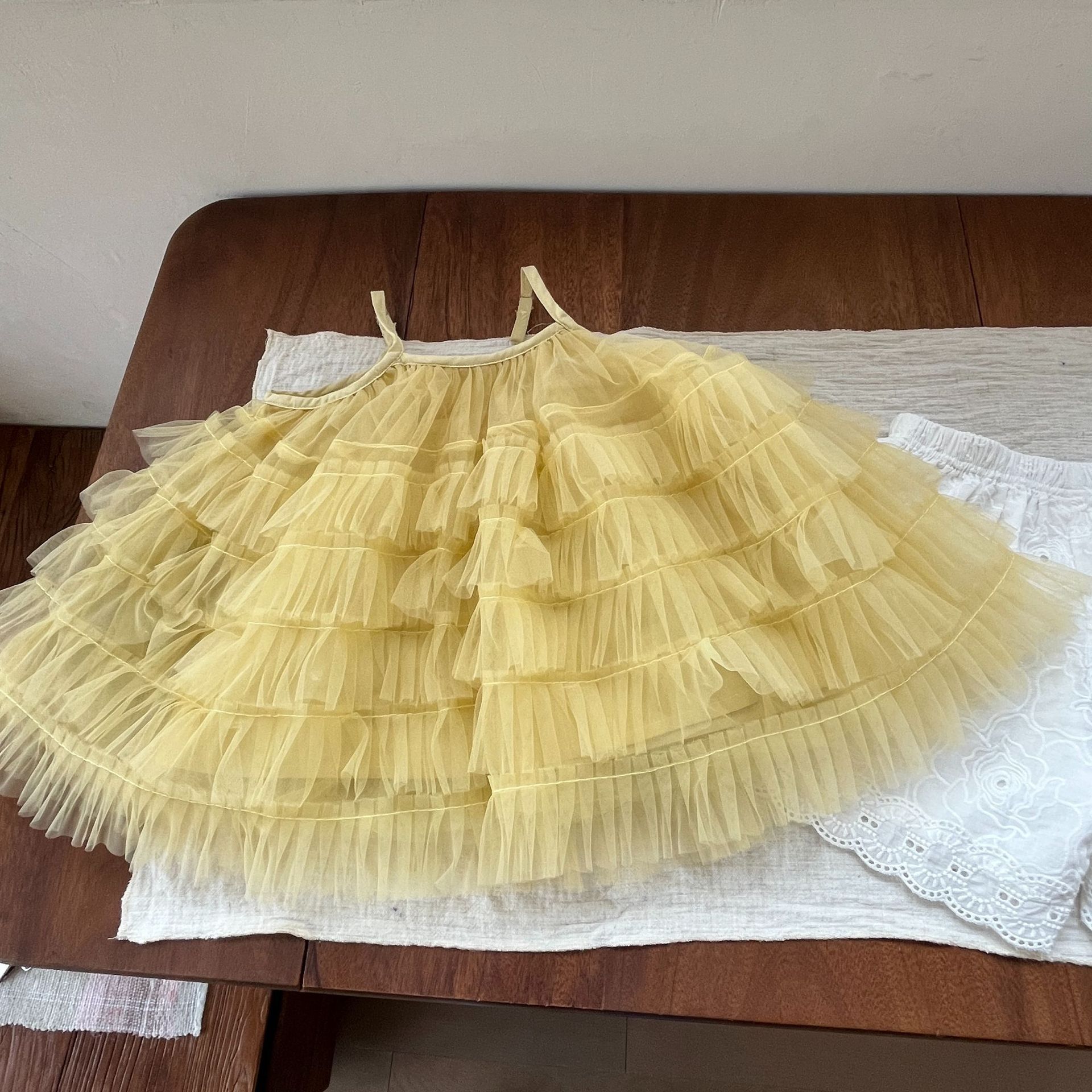 소녀 슬립 탑 세트 2025 여름 프랑스 공주 원피스 어린이 베일 원피스 느슨한 자수 반바지 투피스 세트