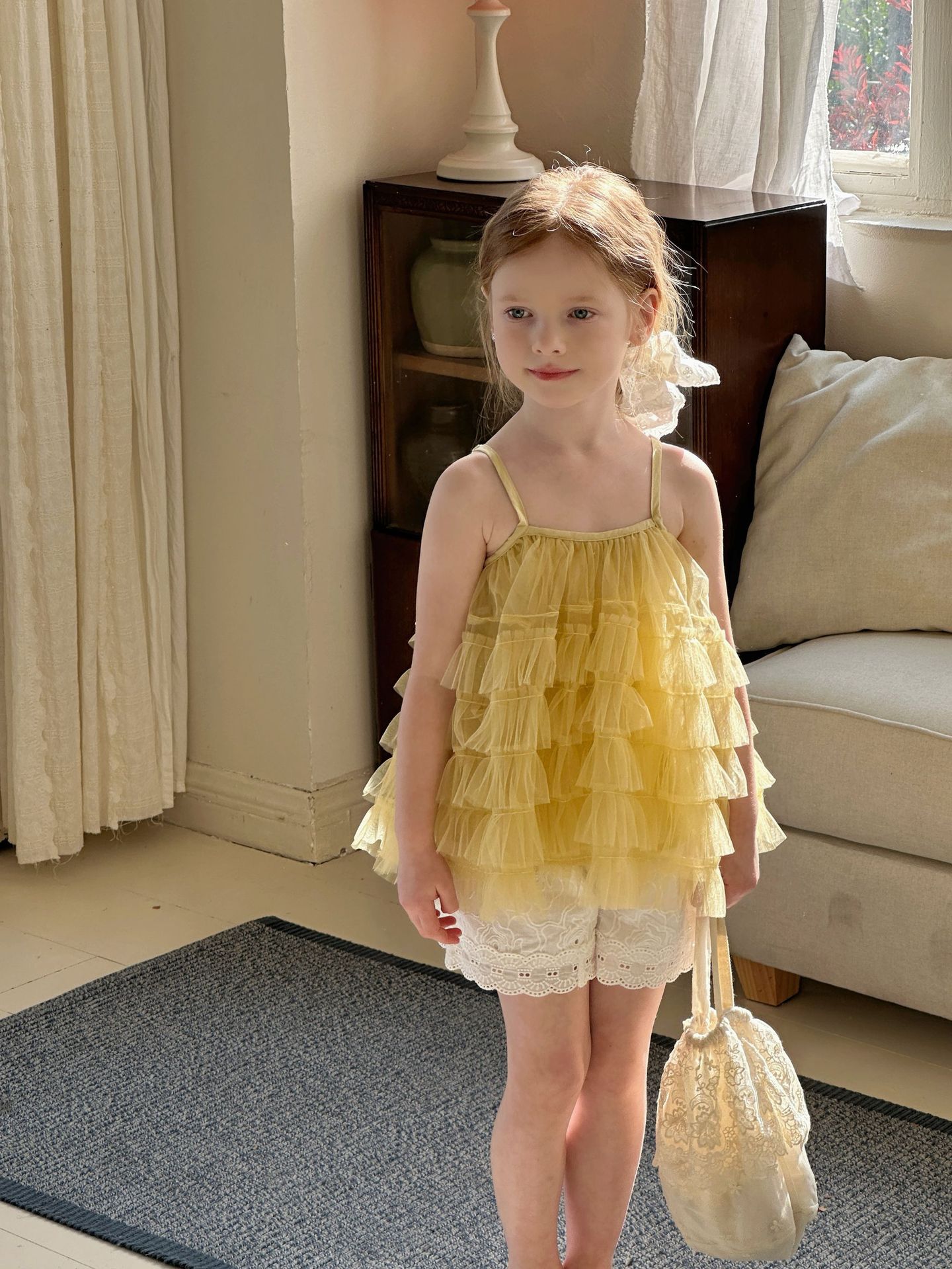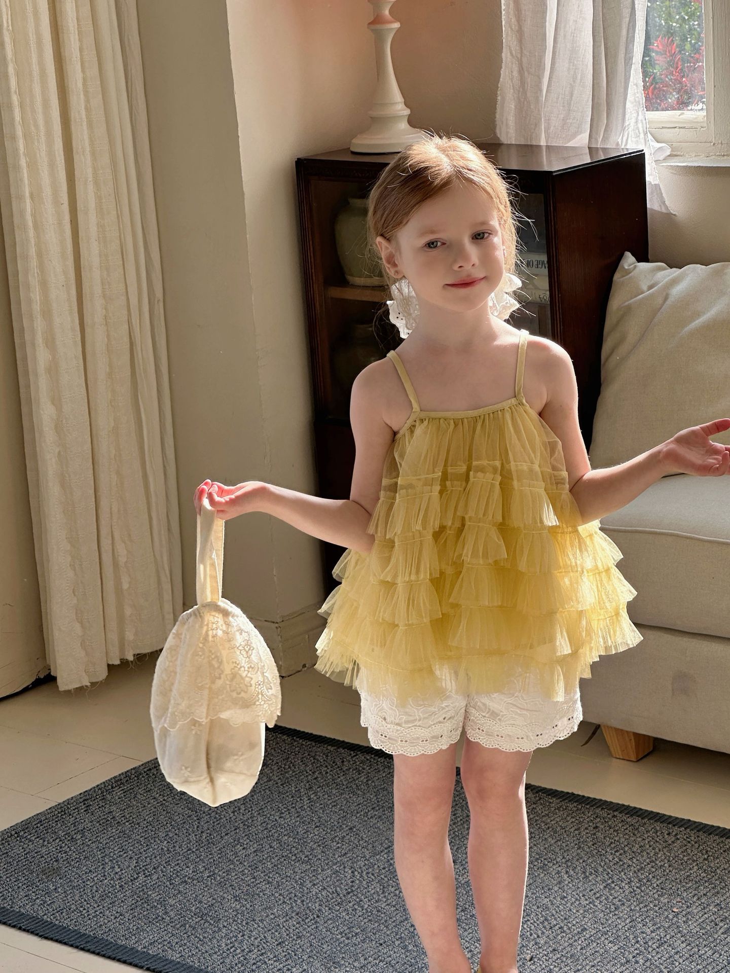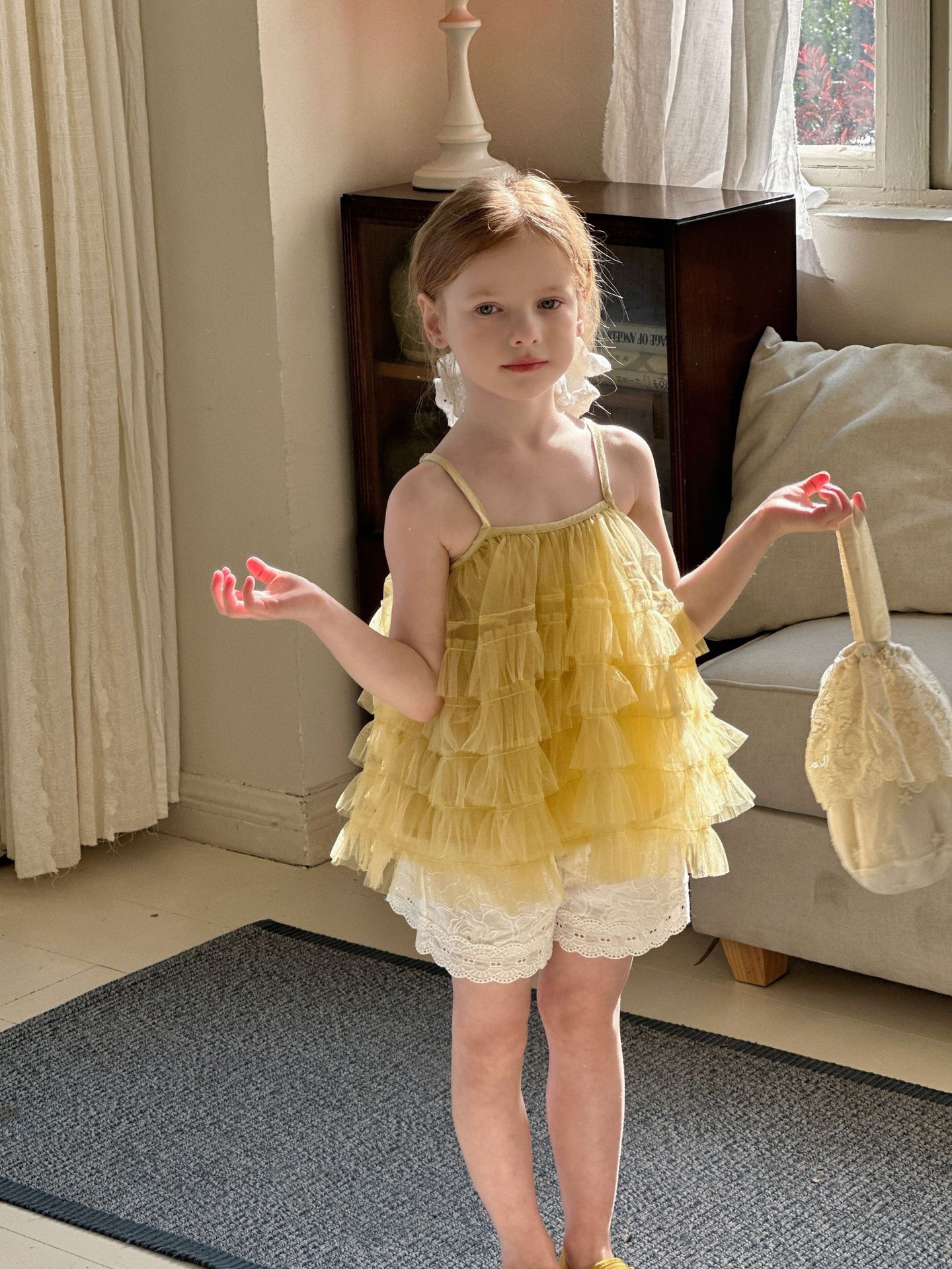 소녀 슬립 탑 세트 2025 여름 프랑스 공주 원피스 어린이 베일 원피스 느슨한 자수 반바지 투피스 세트