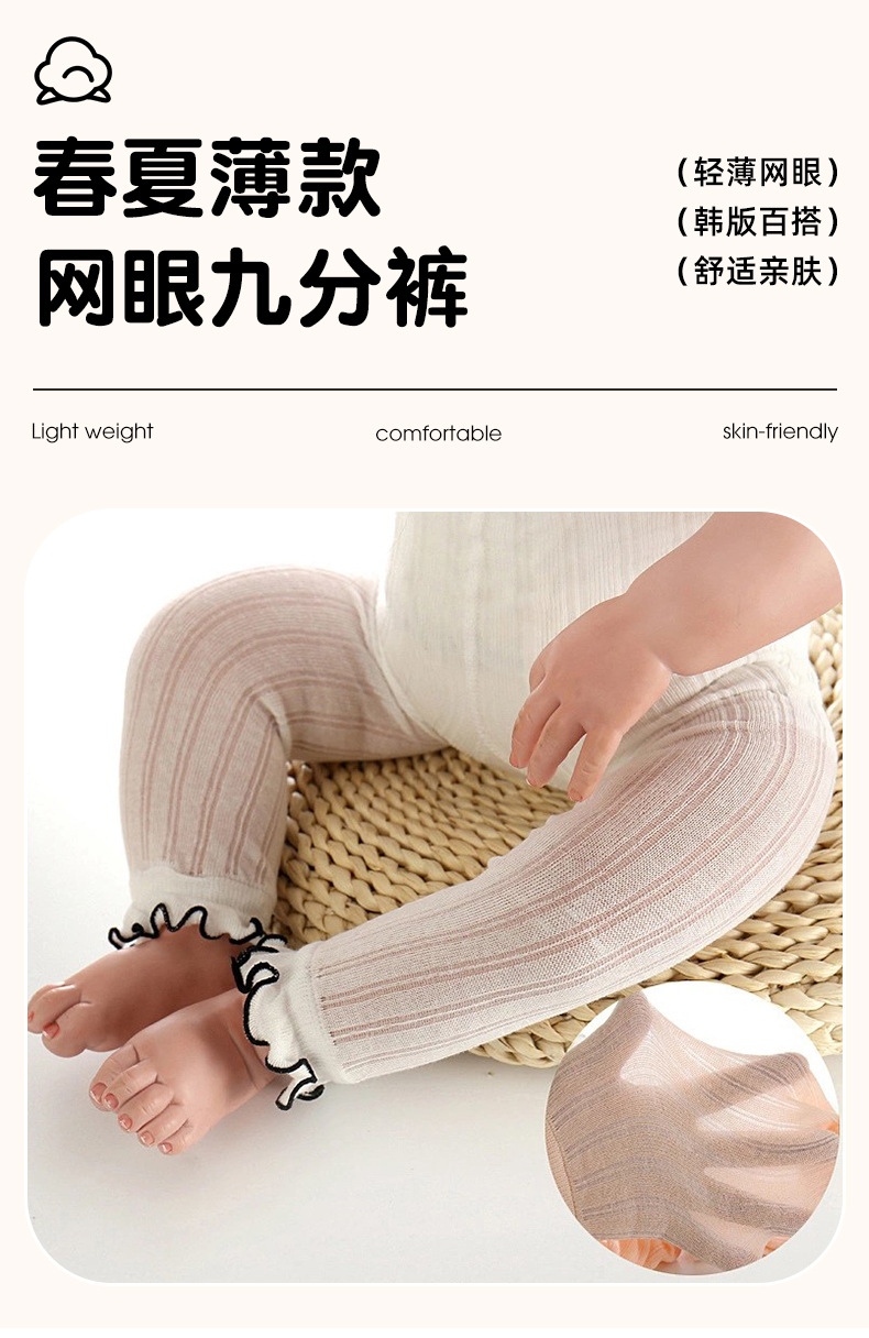 어린이 메쉬 얇은 9 점 스타킹 봄과 여름 단색 귀여운 공주 아기 소녀 통기성 겉옷 레깅스