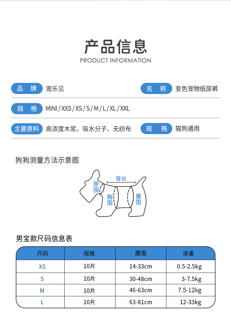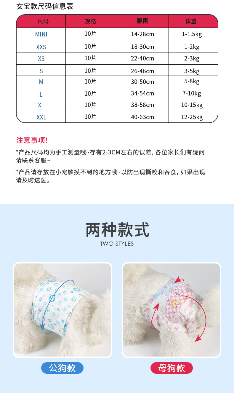 • 암컷 강아지용 기저귀-XXS-10개/팩