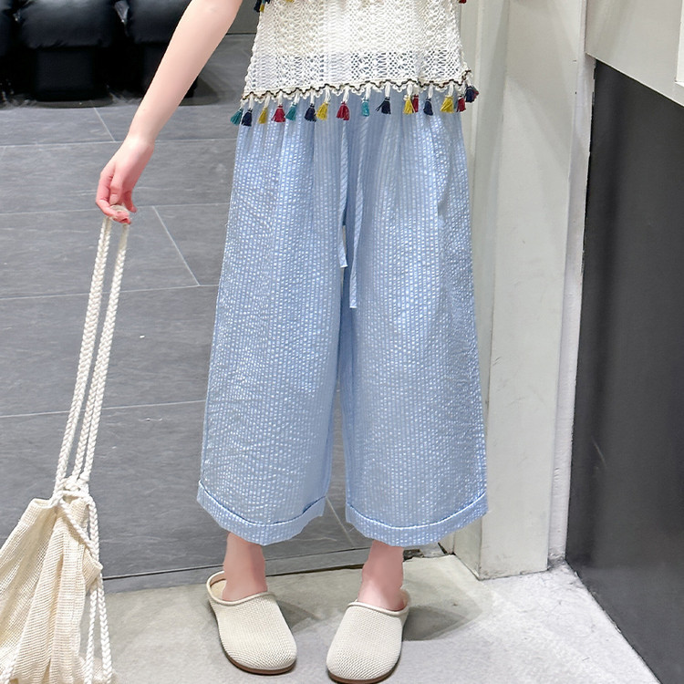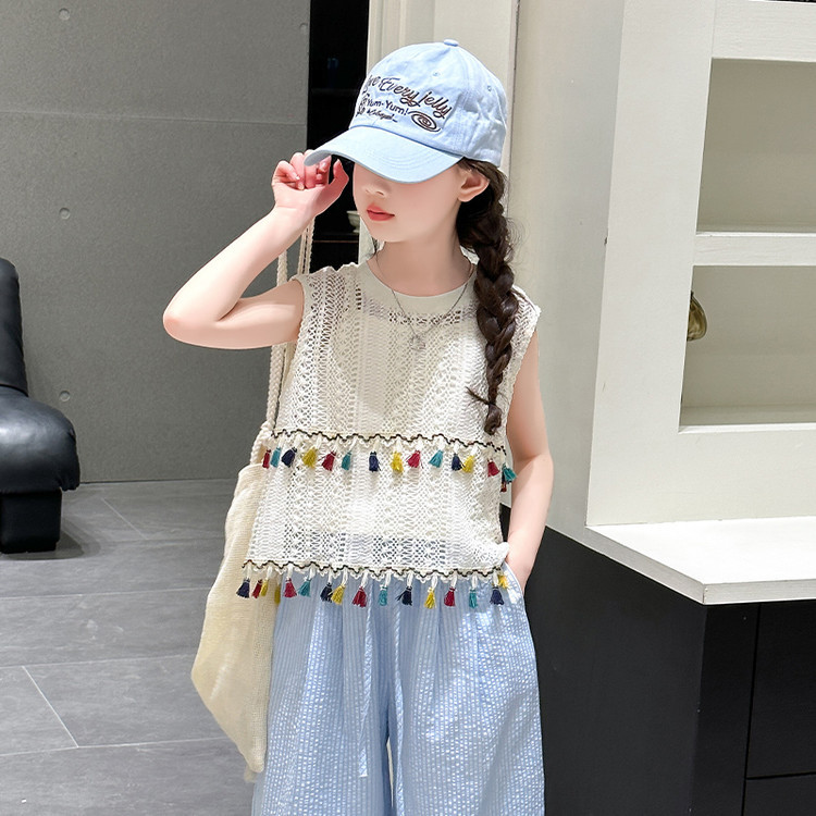 소녀 여름 세트 2025 새로운 소녀 술 블라우스 민소매 조끼 넓은 다리 바지 여름 3 조각 유행 세트